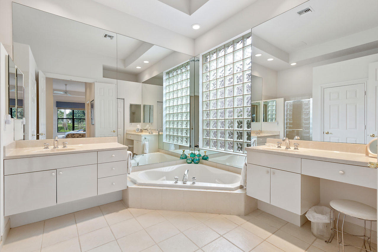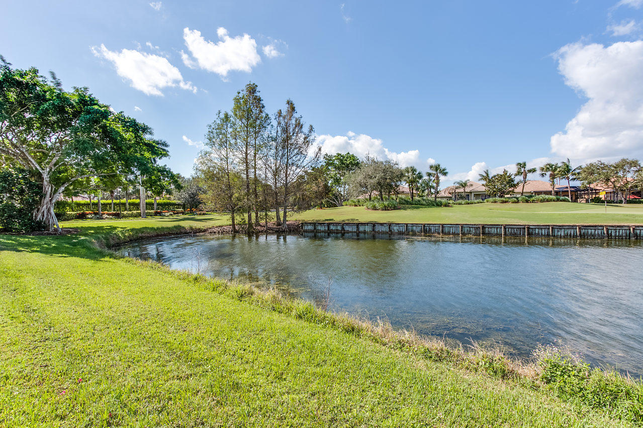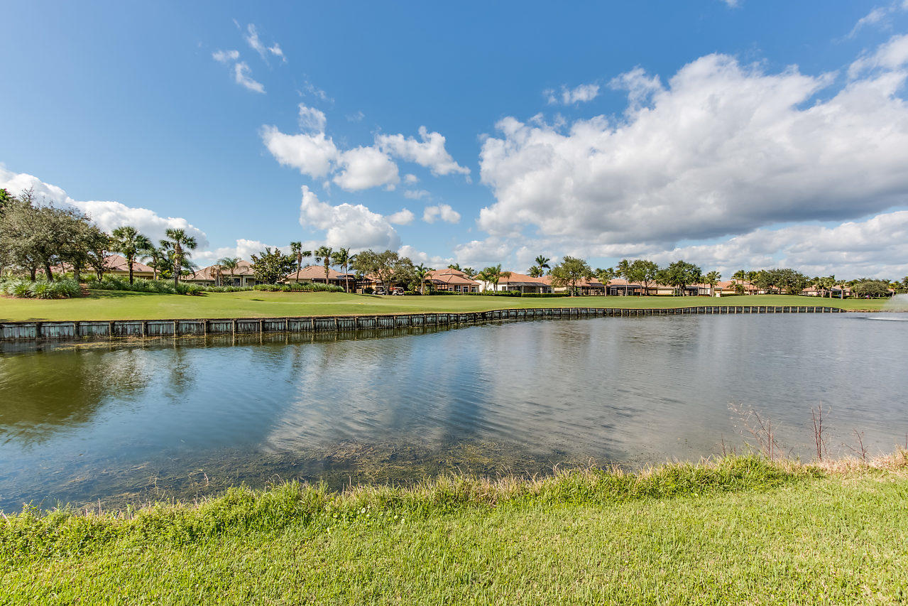Fabulous 3 bedroom + den, 3 bathroom home with lots of upgrades. Open layout and super bright all day long! Huge, deep lot gives you an amazing back yard. Enlarged rectangular pool with new (2017) pool pump and newer pool heater. Spectacular view of water and the 3rd green on Tradition. Gorgeous sunsets! Versatile floorplan allows you to have a great room or living/family rooms. Upgraded ceramic tile throughout living areas. Kitchen with new (2017) stainless steel appliances. New (2017) air handler. Garage has epoxy flooring. Irrigation from lake. Huge patio and yard...gorgeous water and golf views...all at the perfect price. This house is a must see!