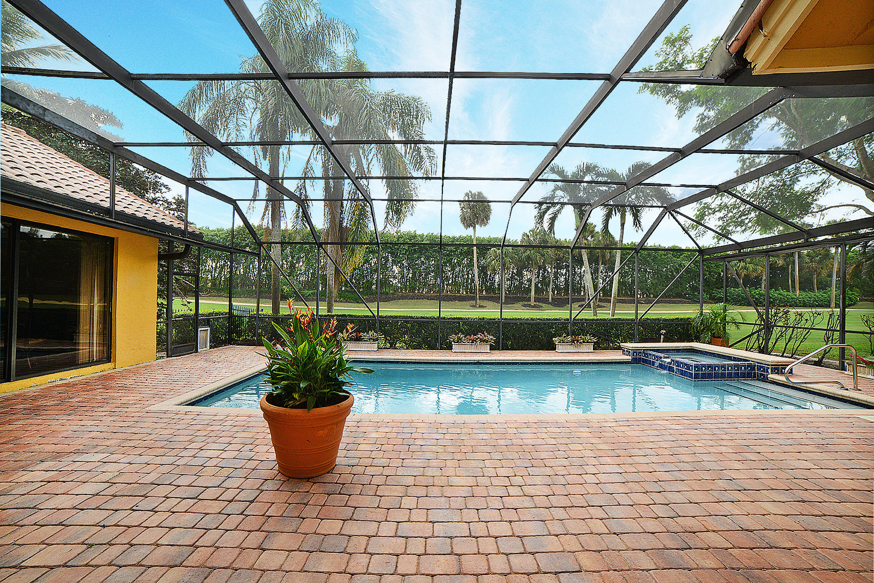 Beginning with an exceptional golf course lot--Southern exposure, this residence has no neighbors front or back PLUS is located in a beautifully landscaped area of the community and is walking distance to both the Clubhouse & Houses of worship. Marble, soaring ceilings (& views!) with a custom newer kitchen, generator, wood paneled office & bedrooms ensuite, this property has it all for the next buyer wishing to put their signature on update & design. A Resort Styled pool with raised spa and generous pavered patio is surrounded by lush foliage and nature providing a peaceful setting. A screened-in pool-patio lends itself to indoor/outdoor living and entertaining in this magnificent home. Boca Grove offers a country club setting with an intimate feel. No tee times.