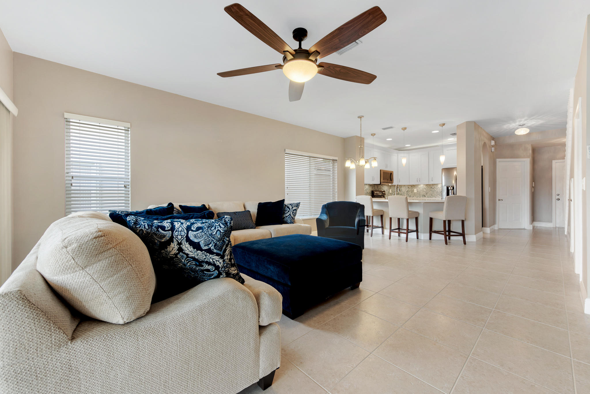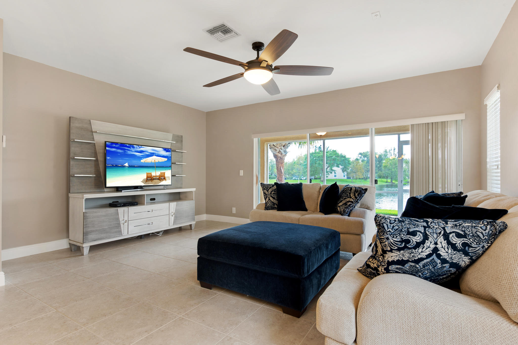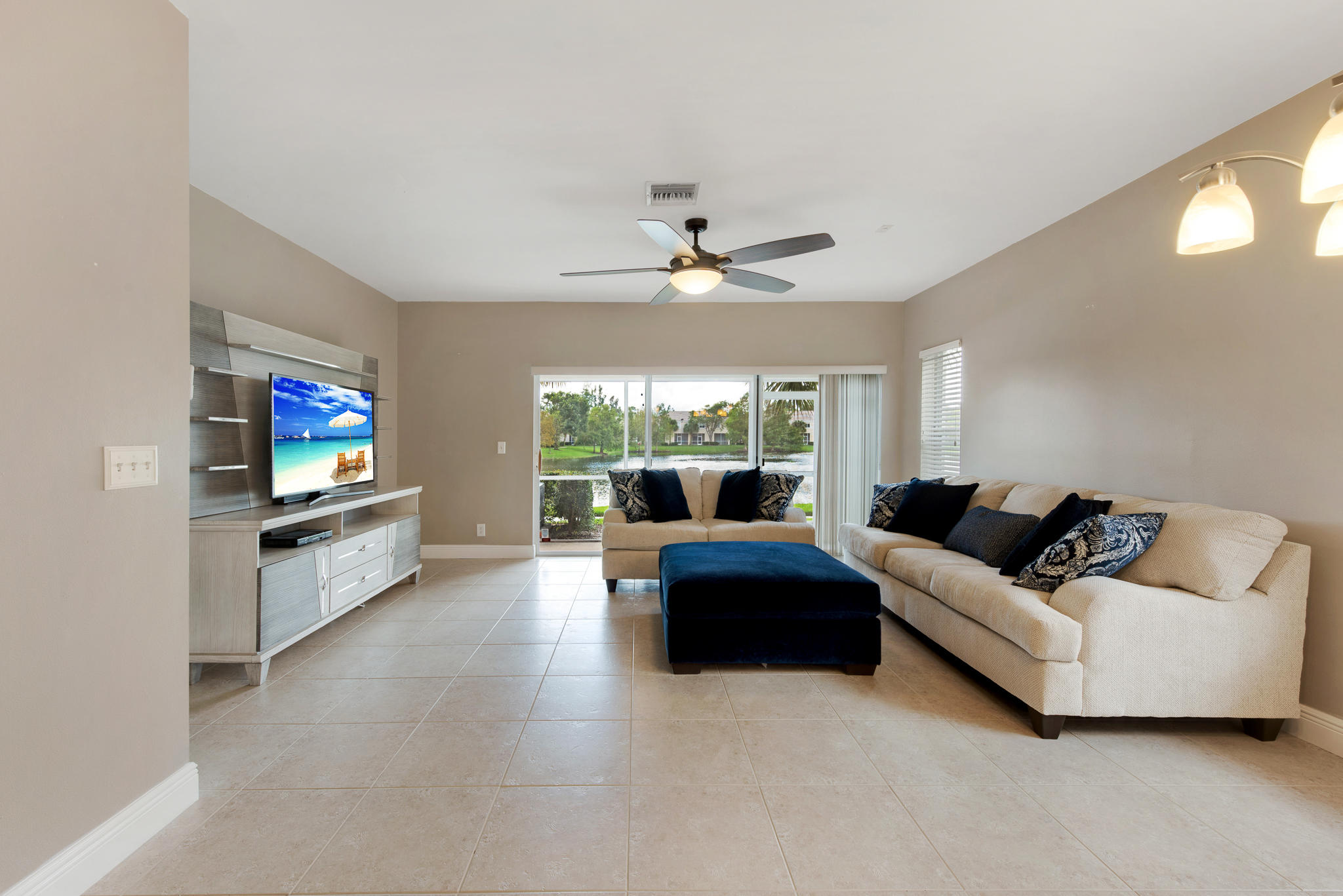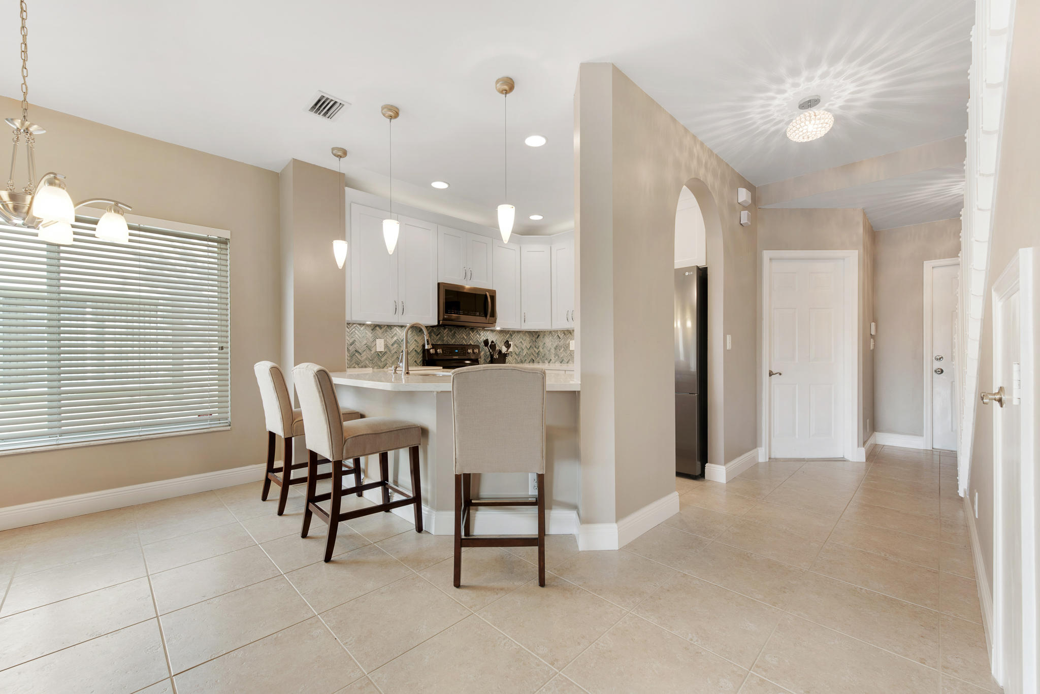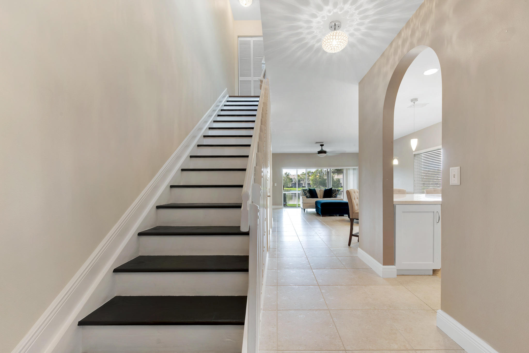 Move right in! Immaculate 2 bedroom 2.5 bath, 1 car garage with gorgeous lake views in gated community. Screened covered patio overlooks expansive lake. Neutral tile flooring throughout first floor, wood look tile on second floor. Custom kitchen features 42 inch white cabinetry, recessed and pendant lighting, breakfast bar, quartz countertops with stainless steel undermount sink, glass tile backsplash, a full compliment of updated appliances including double oven range and updated fixtures. Convenient first floor powder room with pedestal sink and custom shelving. Dining area has chandelier lighting. Family room has ceiling fan with lighting and sliders to screened, covered patio. All bedrooms have ceiling fans with lighting.