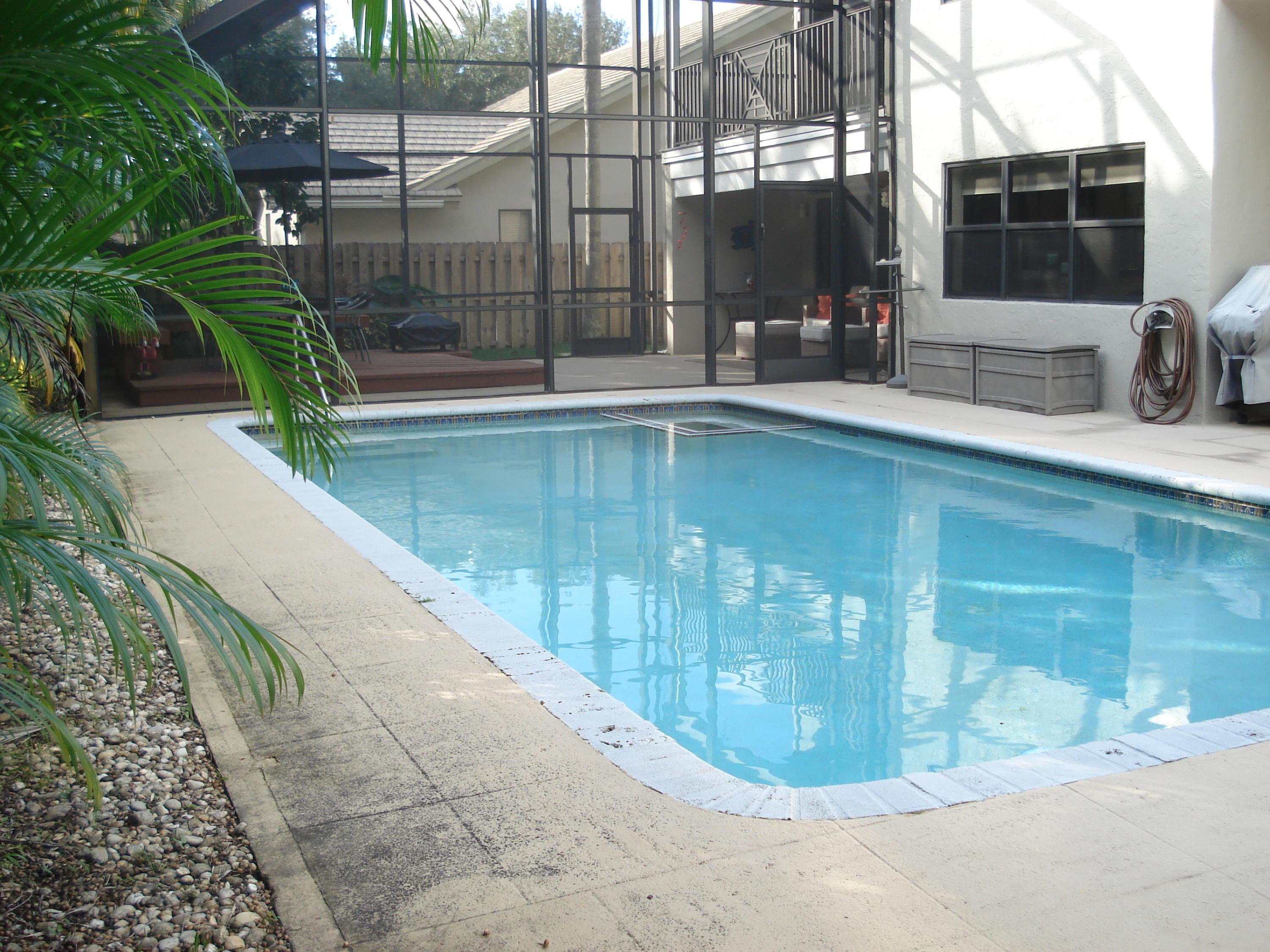 Outstanding pool home in much sought after Colonnade. 4 large bedrooms, 3 full baths & oversized 2 car garage. Enter thru double doors into a large living room with soaring stone fireplacefrom floor to second floor ceiling. The upstairs master bedroom includes a loft and screened balcony with beautiful views of the pool. Completely fenced back yard with open pool & a 2 story screened in patio & deck area. European looking kitchen with large center island and opens to the family room. There is 1 full bedroom & bath on the first floor. 2 new a/c units. Full storm protection with impact windows or shutters. All bathrooms have been updated. New electrical panel. New stunning laminate floors in 2 bedrooms & loft & new carpeting in 2 bedrooms. Community has 2 tennis courts & a tot lot.
