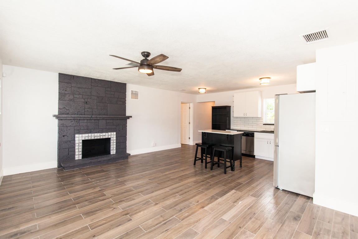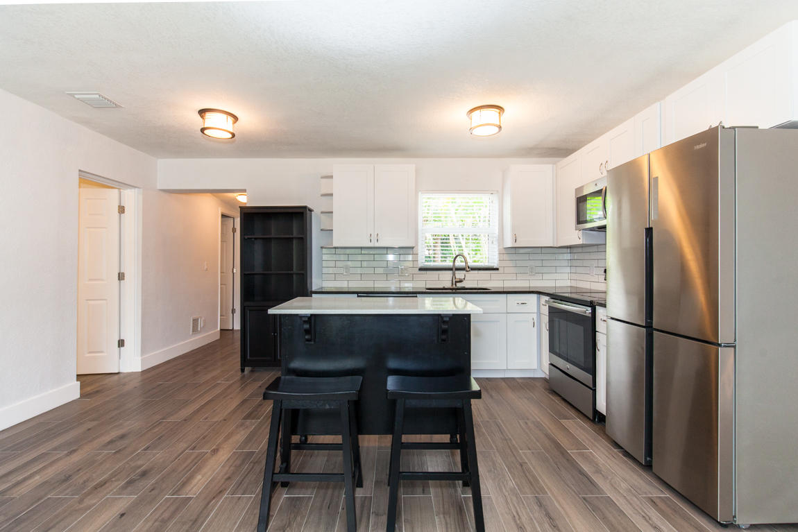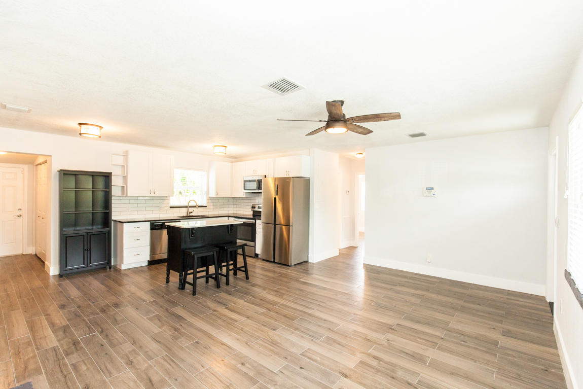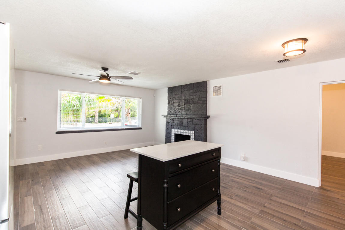 *Beautifully Renovated* with a modern design, this 3 bedroom, 2 bath with den/office home boasts NEW impact glass windows, A/C, Electrical, Plumbing and NEW wood plank tile flooring throughout. Custom kitchen features white shaker cabinets, stainless steel appliances and island for extra storage and counter space. Updated bathrooms with a contemporary feel. Spacious fenced backyard with an abundance of trees creating a canopy feel. Southern exposure and situated across from the Spillway, one of the best areas for snook fishing. Truly a gem! 4th room is small in size but is equipped with a closet. May be better suited as a den/office.