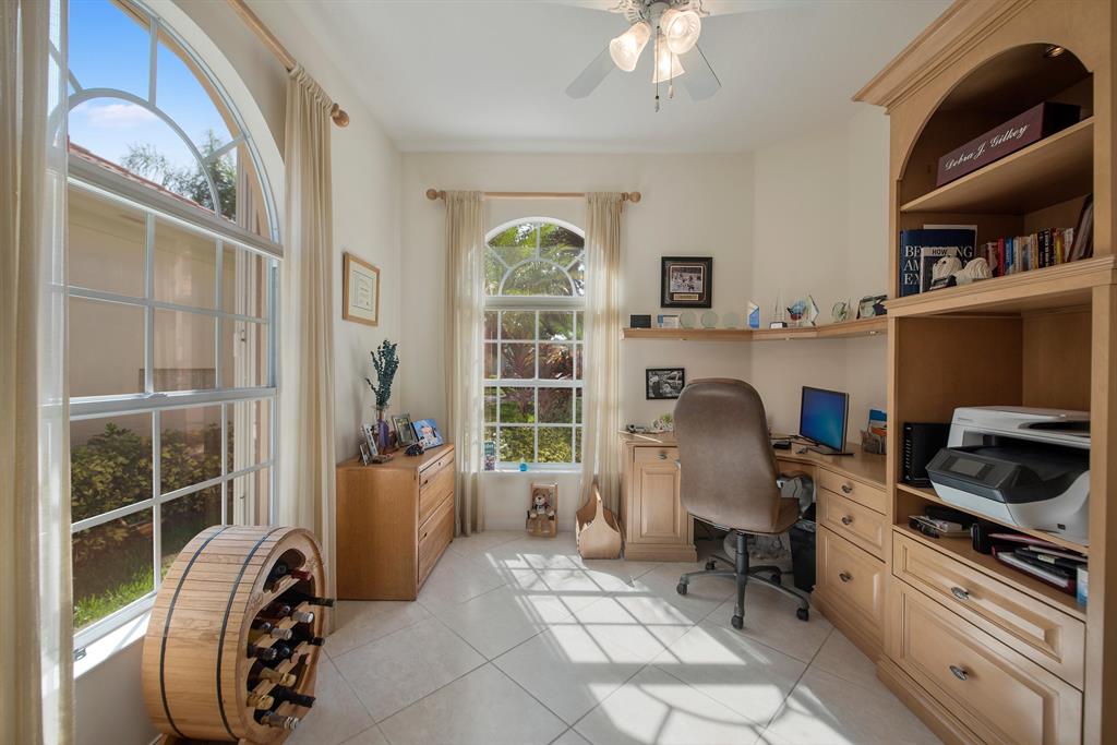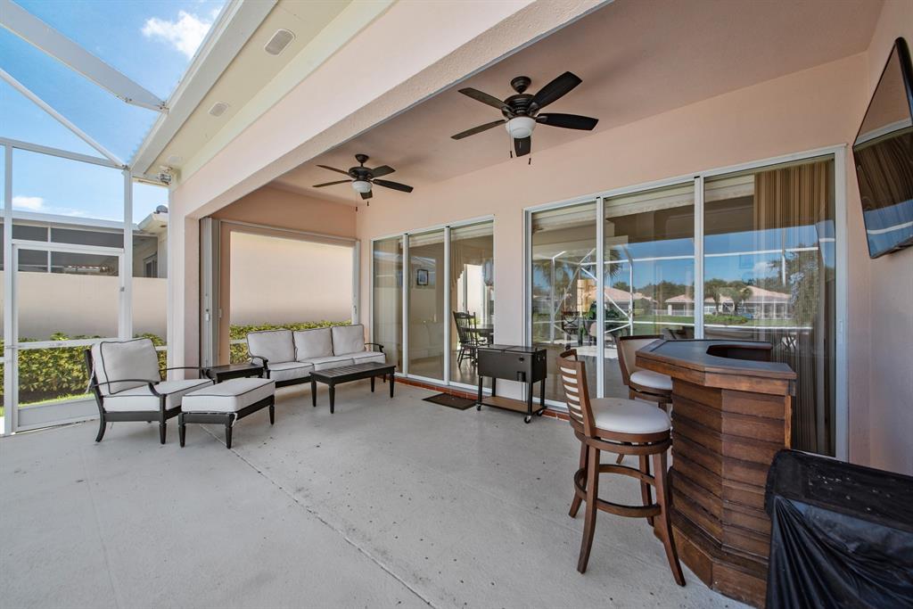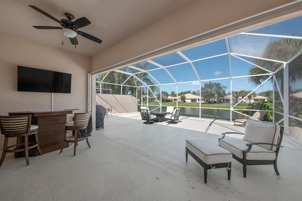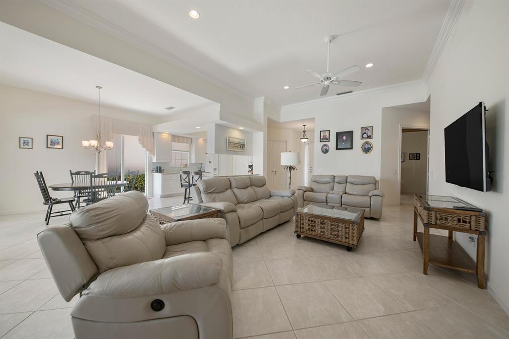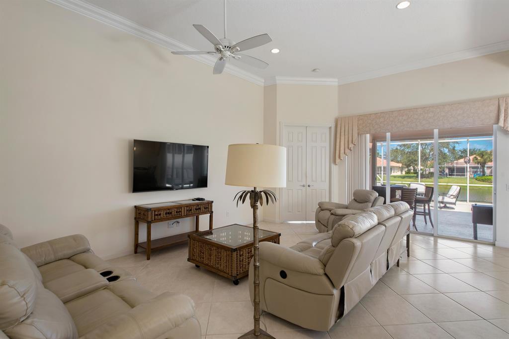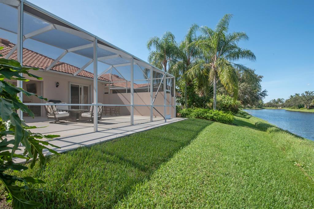 An Extra Wide Front Lawn with Lush Tropical Plantings Gives a Great First Impression of this Pristine Oakmont in Riverwalk, a 24 Hour Manned Gated Community located in the Heart of Palm Beach County that is 15-20 minutes to what makes it a Terrific Place to Live including the Ocean, West Palm Beach & the Airport! The covered screened entry leads to the Foyer and the Great Room with 12 Ft. Ceilings & The Dining Area with Sliders to a Private Patio! 18 Ft. of Sliding Glass Doors lead to a 22 Ft. Lanai and an Oversized 40 Ft. x 37 Ft. Lakeside Screened Terrace with Newer Screens & Awe-inspiring Water Views! All of these Rooms have Stunning Porcelain Tile on the Diagonal including the Kitchen (the Hub for Everyday Living or Casual Entertaining)