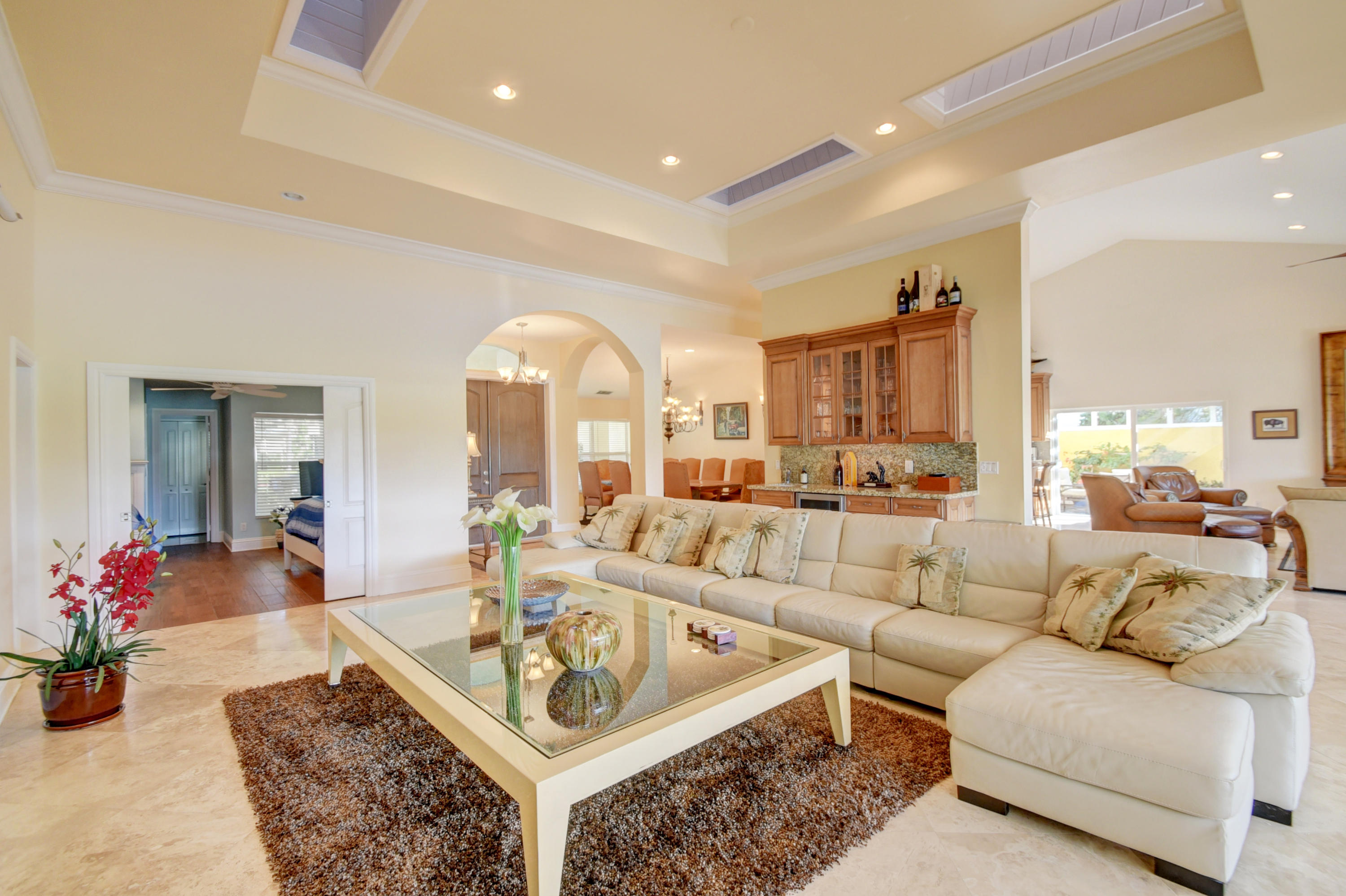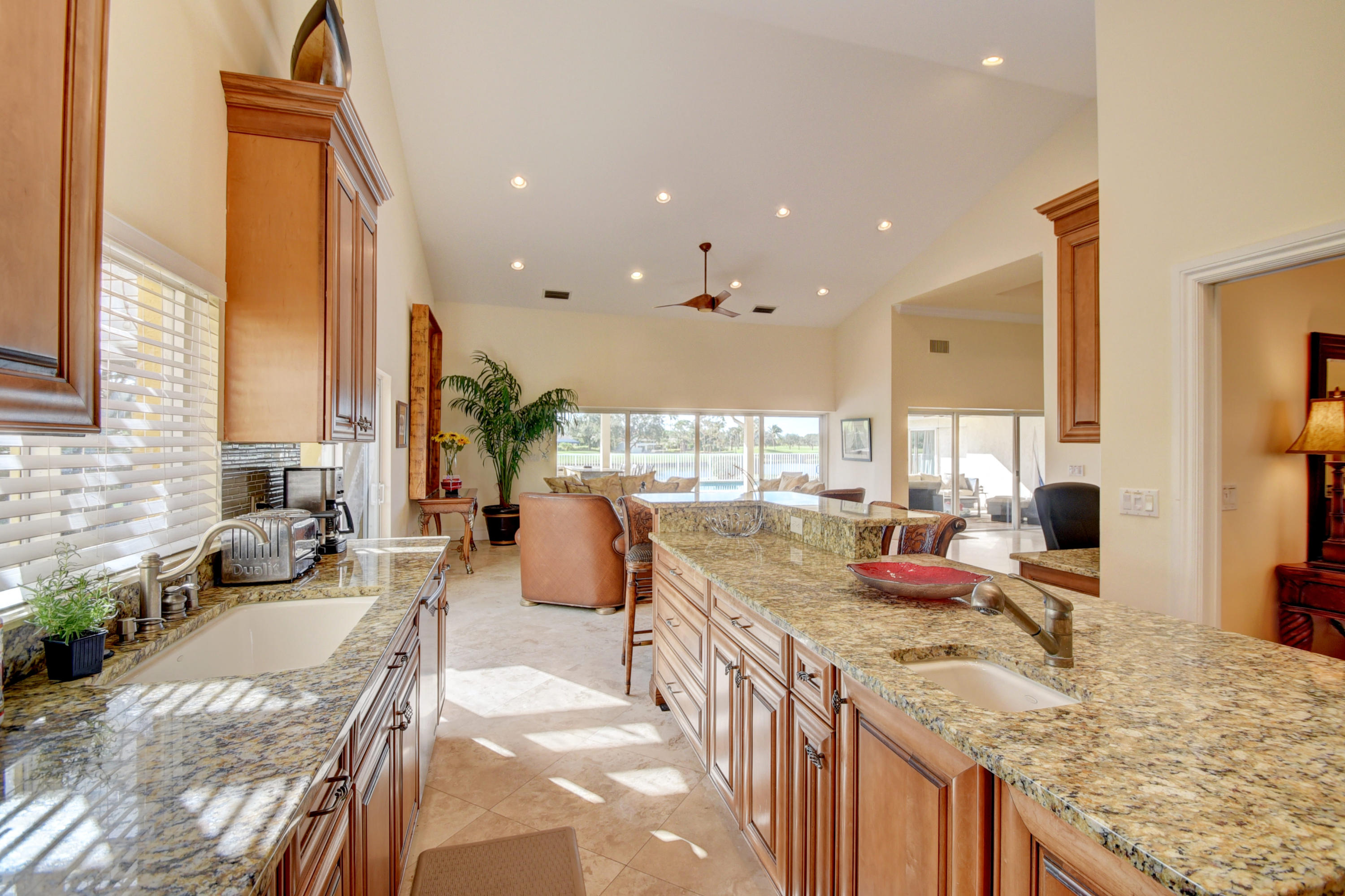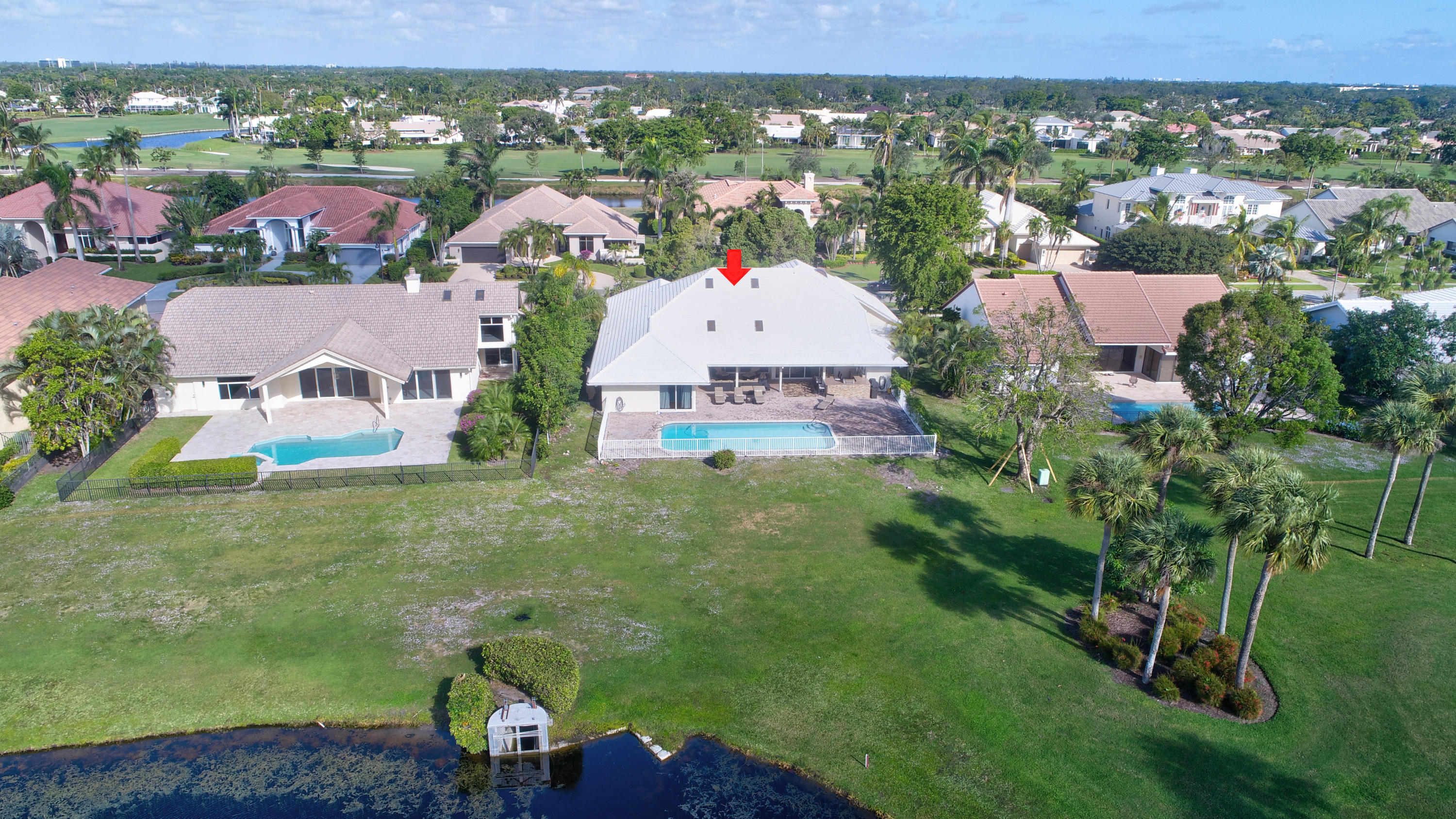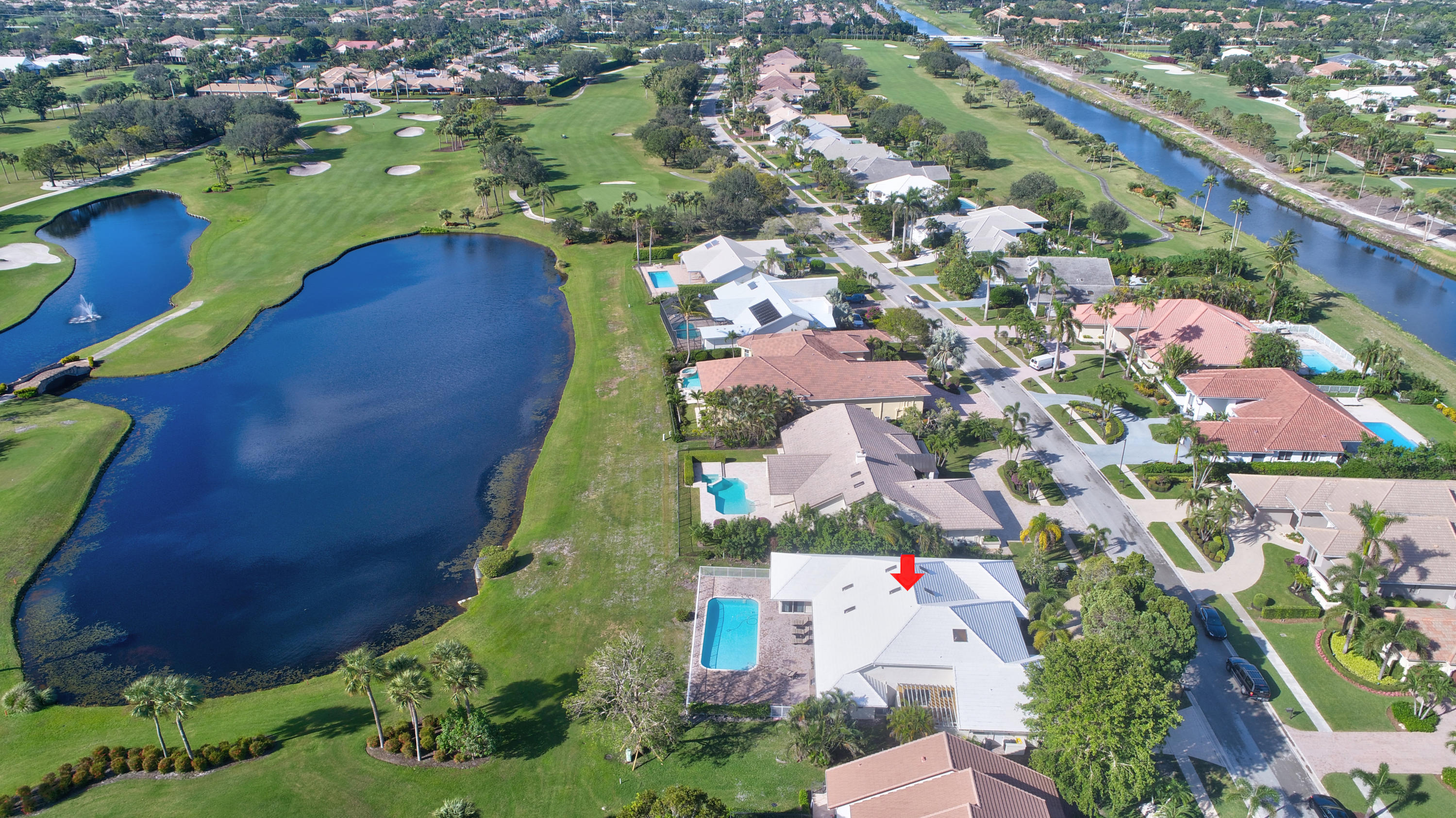 Exceptional, completely remodeled, residence with panoramic golf & lake views. The perfect home for entertaining! Enjoy your one story 4 bedroom, 4.5 bath bright, open floor plan home situated on the 18th Fairway. Look forward to magnificent sunsets from your huge patio with Summer Kitchen, oversized pool, & covered seating area. Saturnia Marble & Wood loors throughout this stunning home. Soaring vaulted, volume ceilings with sky lights in huge great room. Large gourmet inspired kitchen with custom wood cabinetry, convenient pull-out shelves,granite counters, & high-end appliances. Master suite boasts his & her remodeled baths, custom walk-in closets, & picturesque golf & lake view. Wood floors & custom closets in remaining three spacious bedrooms . Hurricane impact windows & doors.