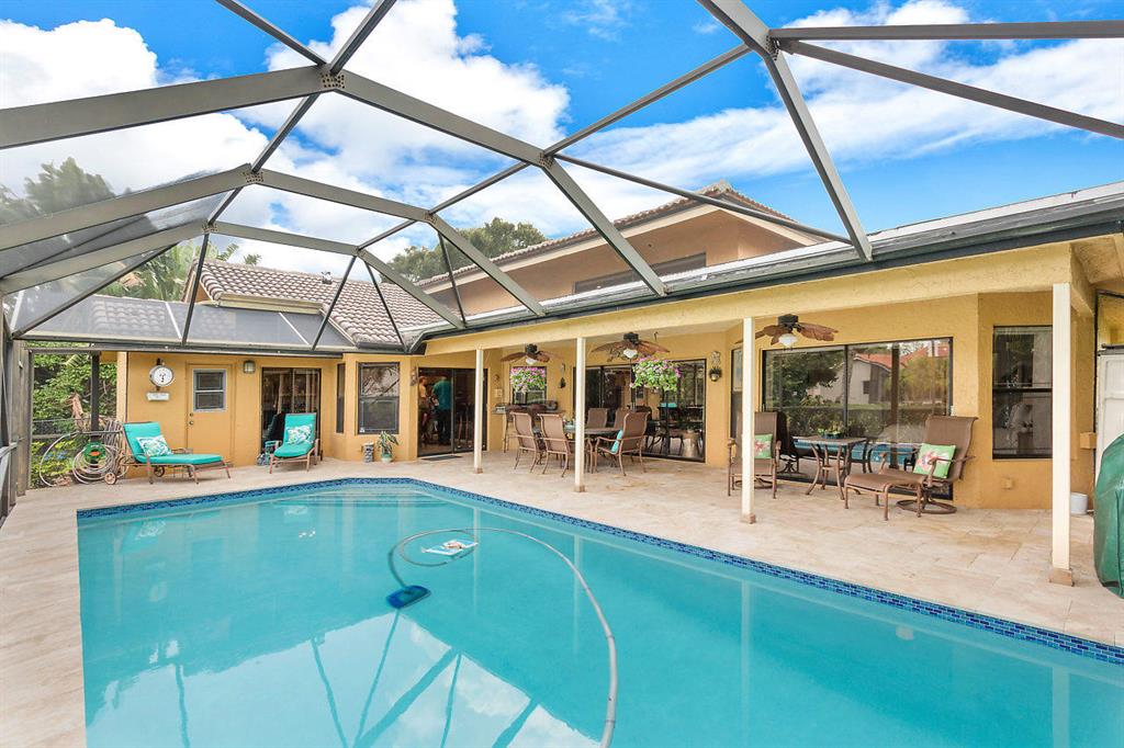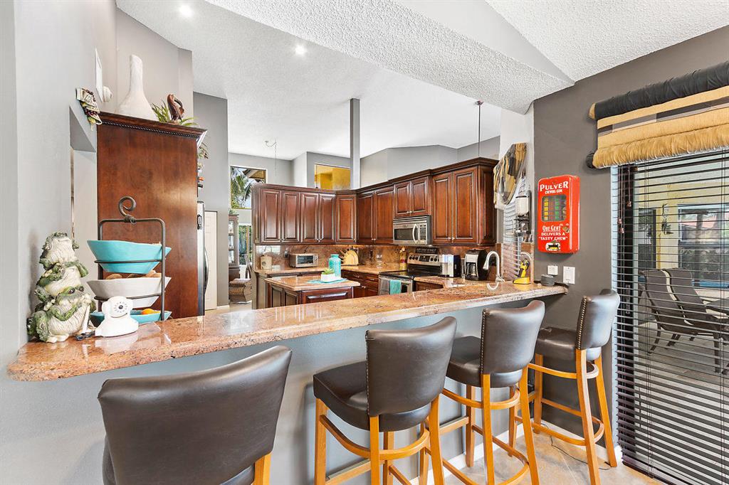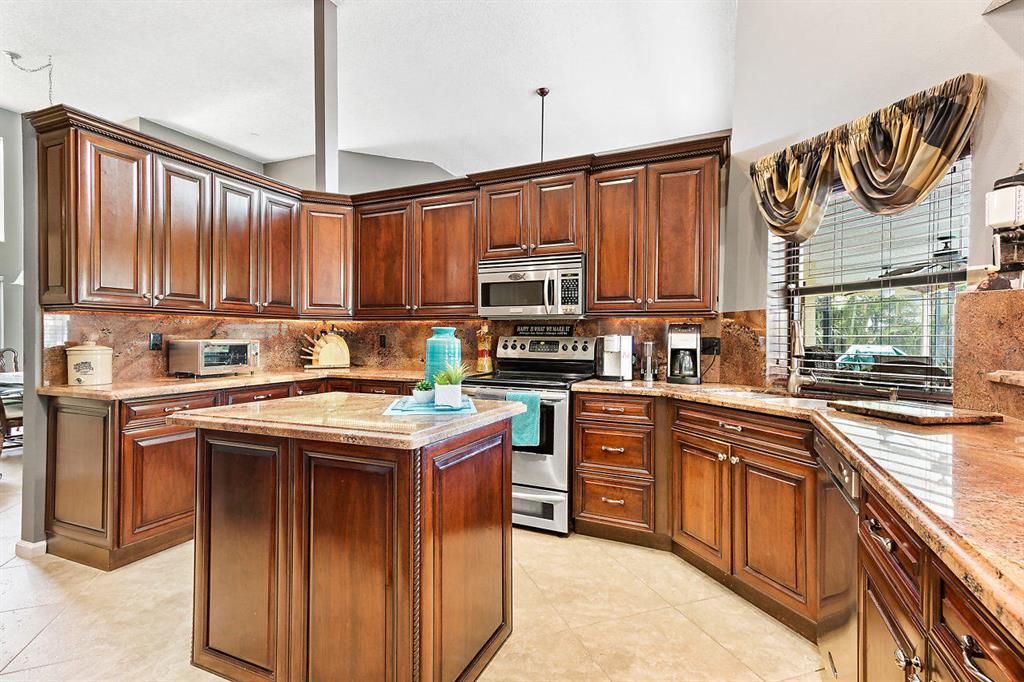 Must See! Custom Built 5 Bedroom, 3 Full Bath Pool home. Recently Remodeled Throughout. New 900 S.F. of Travertine surrounding the enclosed Newly tiled and Diamond Brite Pool overlooking a beautiful canal. Real Cherry Wood Kitchen Cabinets with Granite Counters and Back Splash including Soft Close drawers, doors and pullouts. Huge Pantry with slide out shelves. Interior newly painted, New A/C, Alarm, oversized 2 car garage, Intercom, Stainless appliances - KitchenAid and Frigidaire. New Custom Master Bathroom just completed with granite counters, designer sinks, soft close drawers, new glass shower surround with full shower panel. Home is Generator ready, 12 Mil. Hurricane film on all windows, Auto Pilot Salt Water System and Pool Heater. Front load washer and dryer are staying too!!