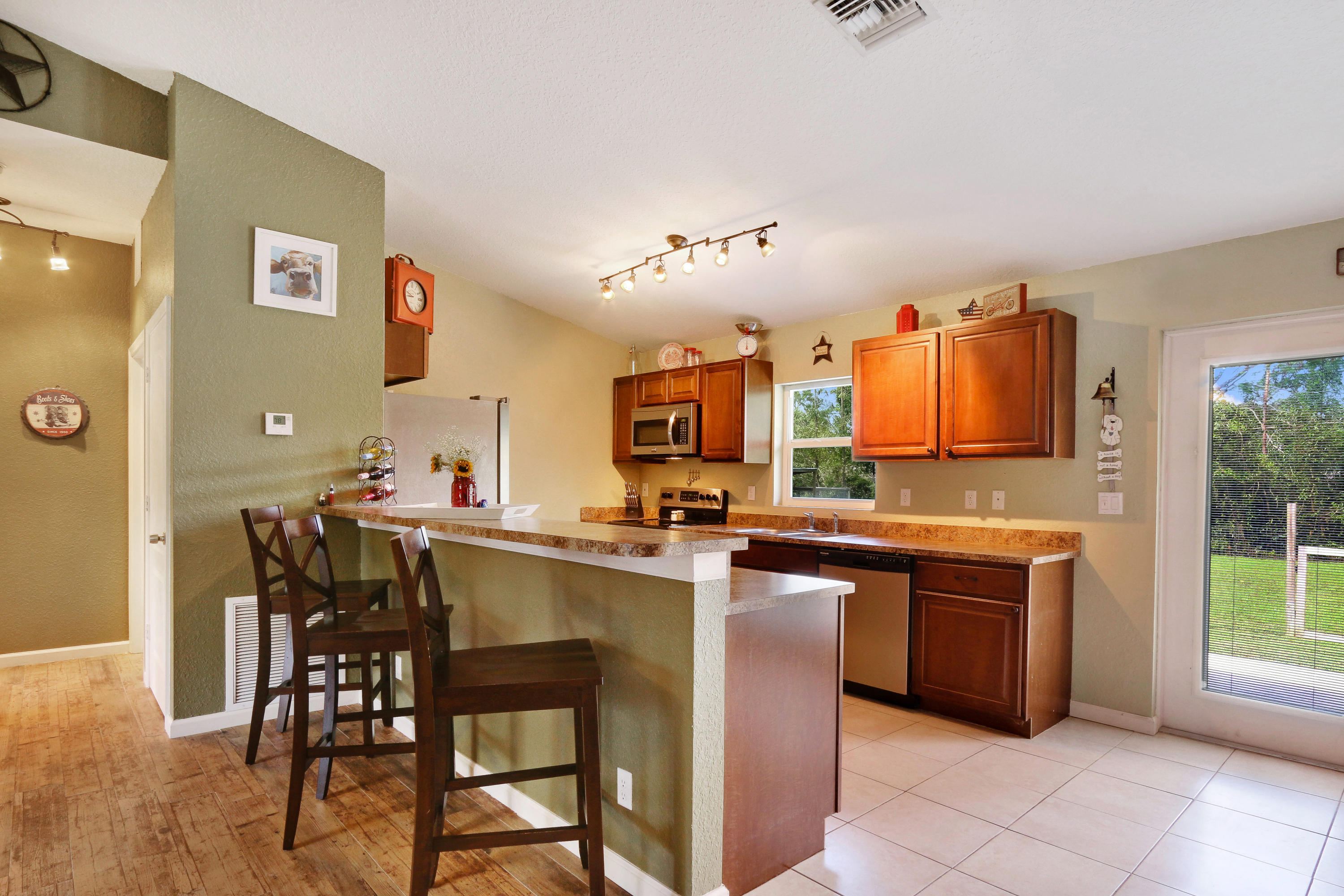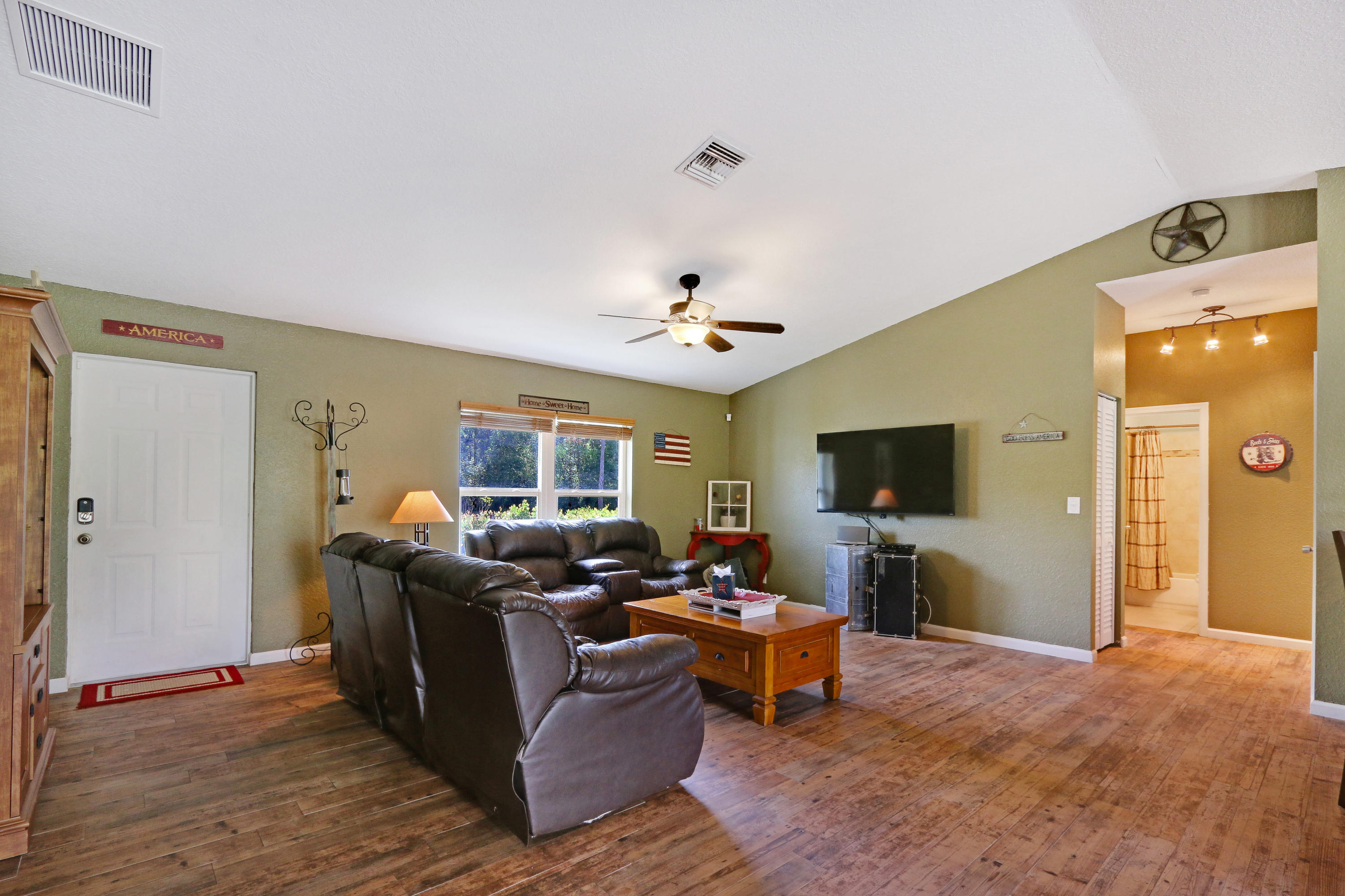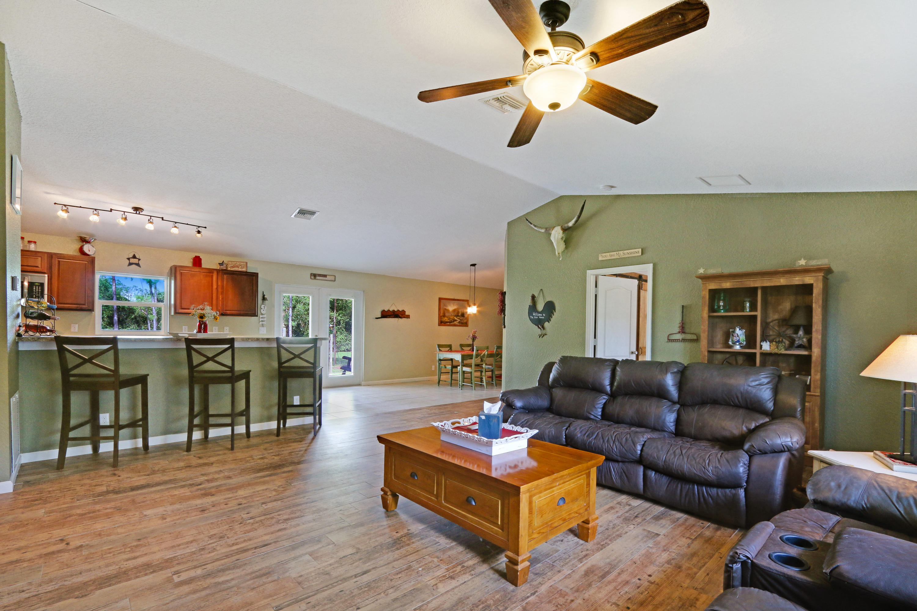 When it comes to finding the perfect home to plant your roots, you will hit a bullseye with this one! Situated on over an acre and on a private paved road, space and tranquility will be a part of your everyday life. Beautifully landscaped, with a small a pole barn and chicken coop in the backyard will allow you to add a little bit of country to your days! You will find a great amount of pride in ownership when you see all the upgrades and how well this home has been maintained. There are 3 bedrooms in this split floor plan home, a large living area and a kitchen that opens up into the living and dining spaces. Stainless steel appliances and hurricane impact windows throughout the entire house are not the only upgrades. Stunning wood tile throughout the living spaces and master bedroom...