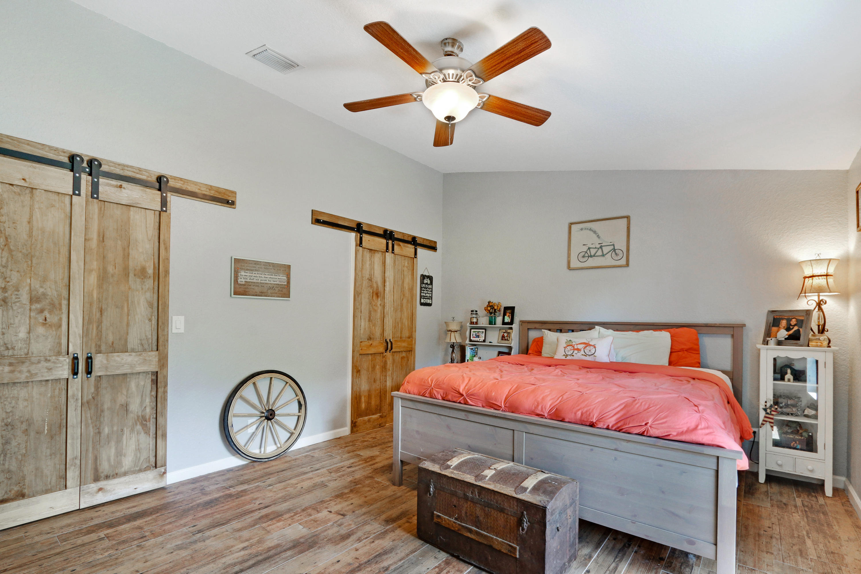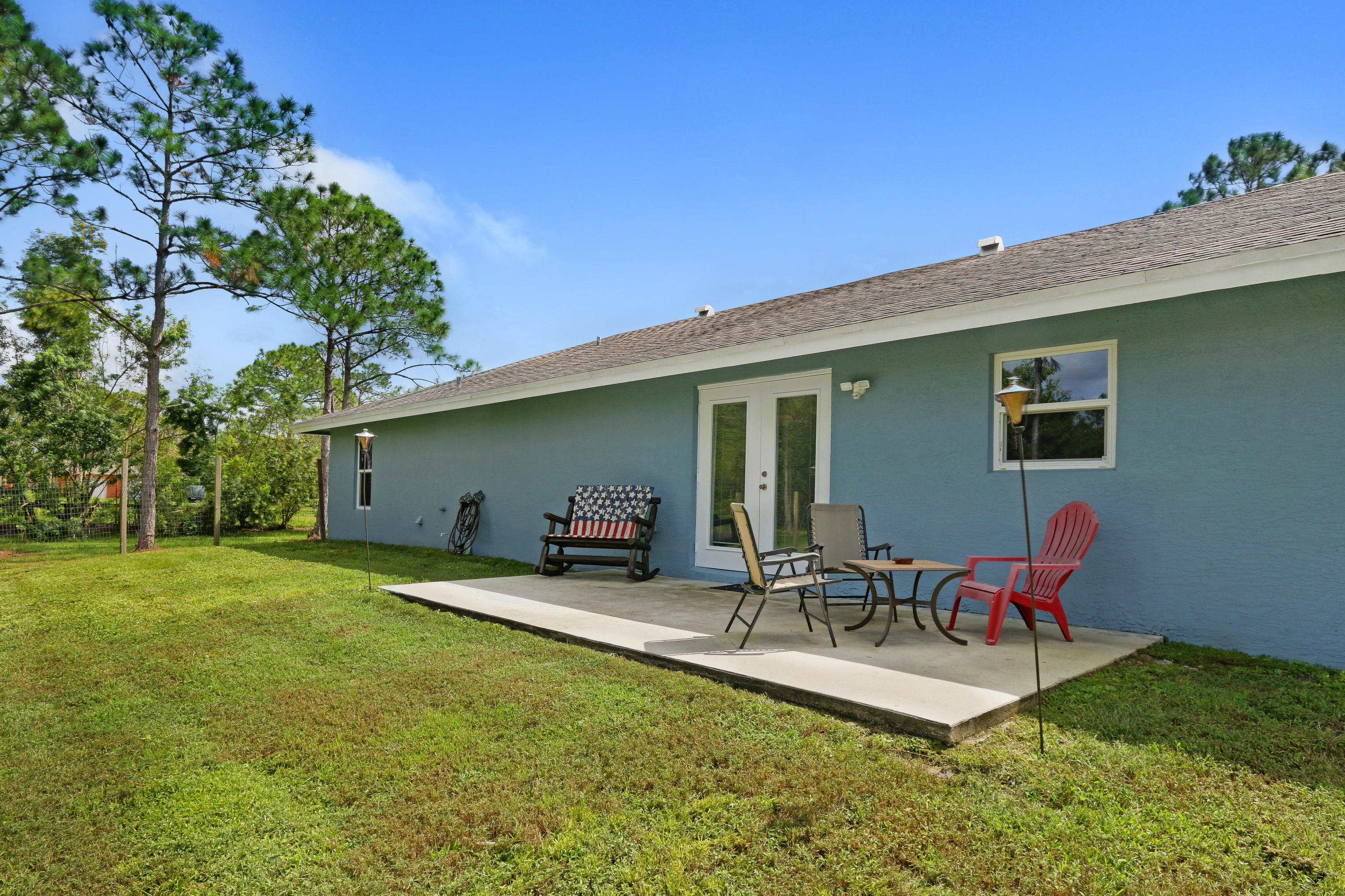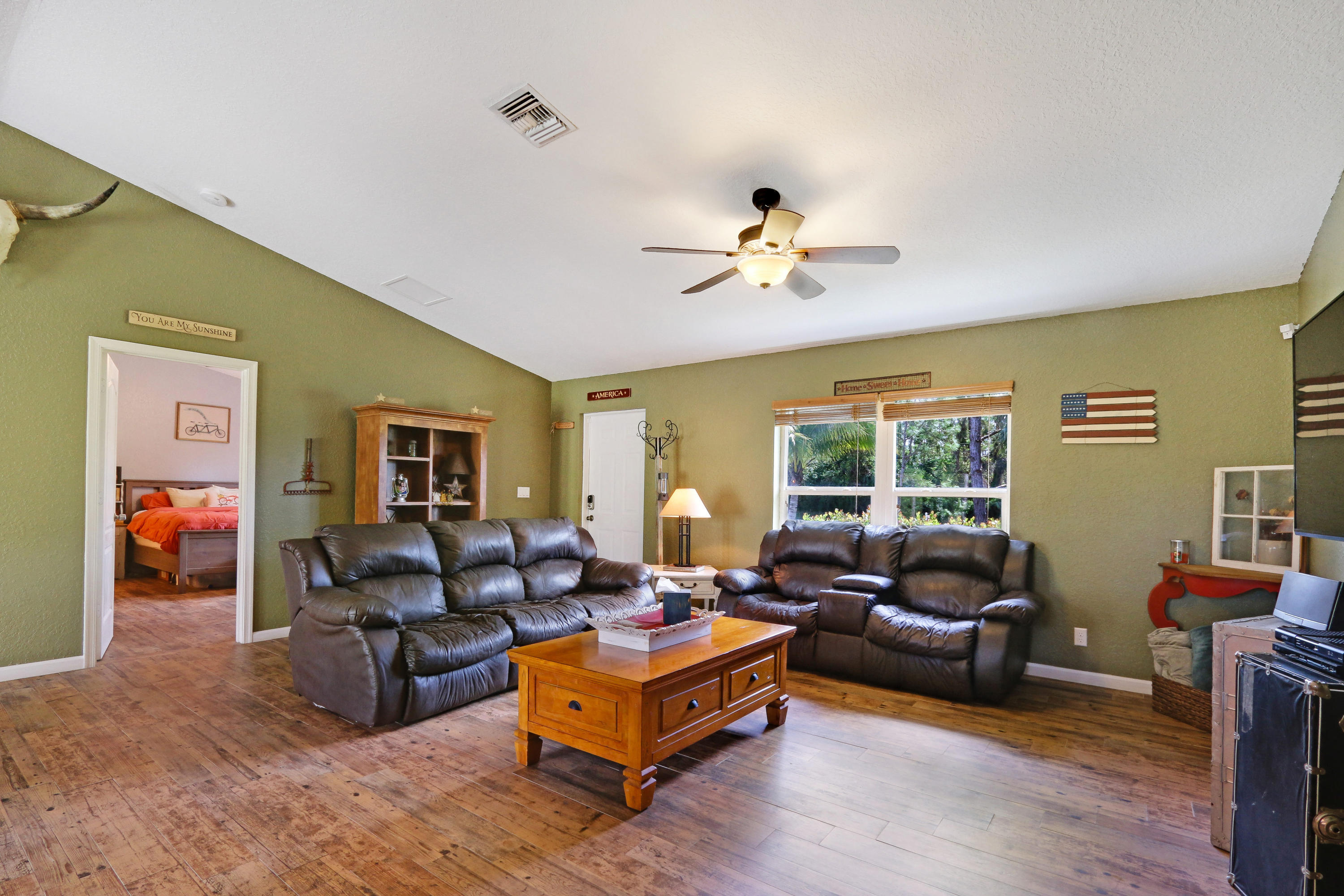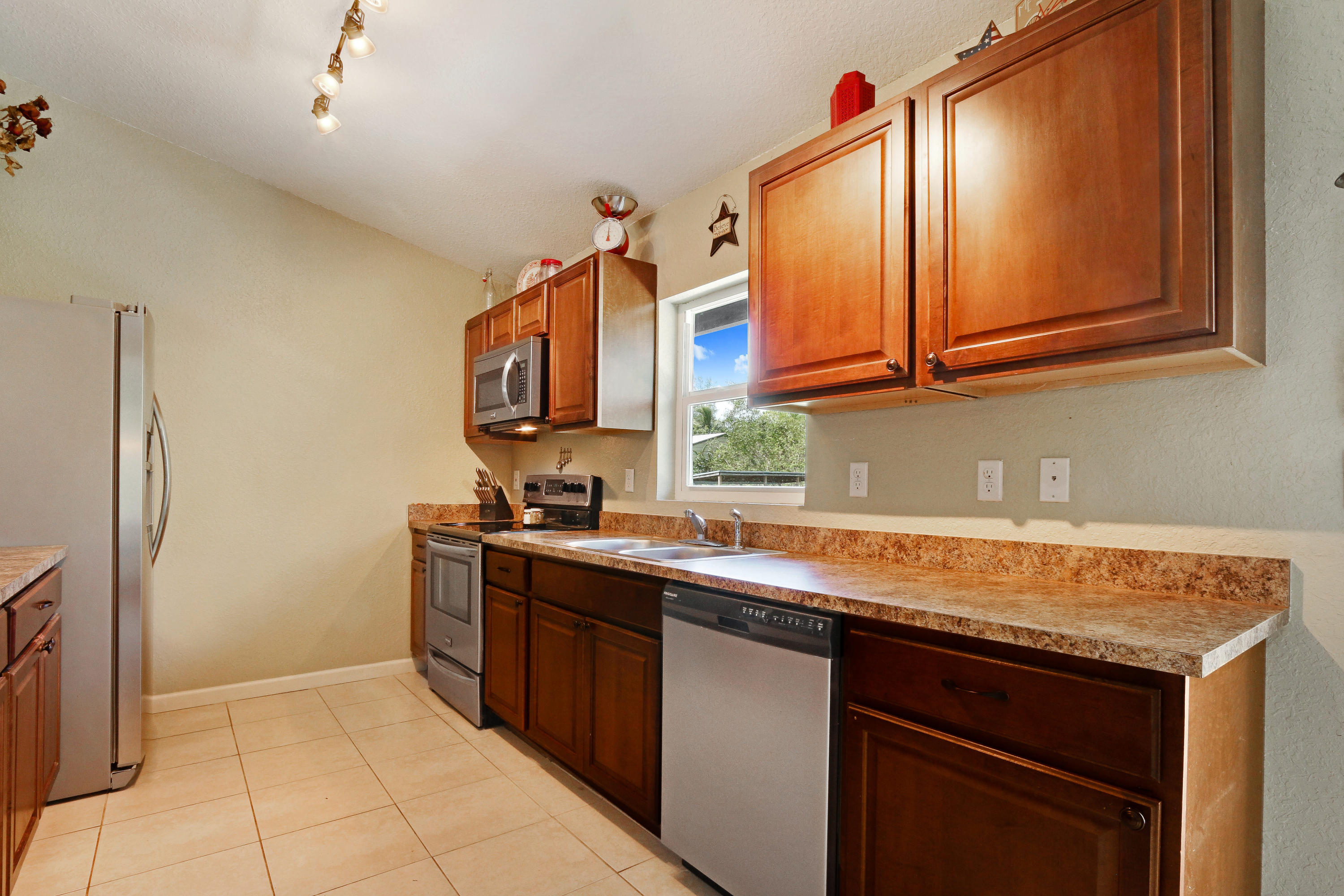 When it comes to finding the perfect home to plant your roots, you will hit a bullseye with this one! Situated on over an acre and on a private paved road, space and tranquility will be a part of your everyday life. Beautifully landscaped, with a small a pole barn and chicken coop in the backyard will allow you to add a little bit of country to your days! You will find a great amount of pride in ownership when you see all the upgrades and how well this home has been maintained. There are 3 bedrooms in this split floor plan home, a large living area and a kitchen that opens up into the living and dining spaces. Stainless steel appliances and hurricane impact windows throughout the entire house are not the only upgrades. Stunning wood tile throughout the living spaces and master bedroom...