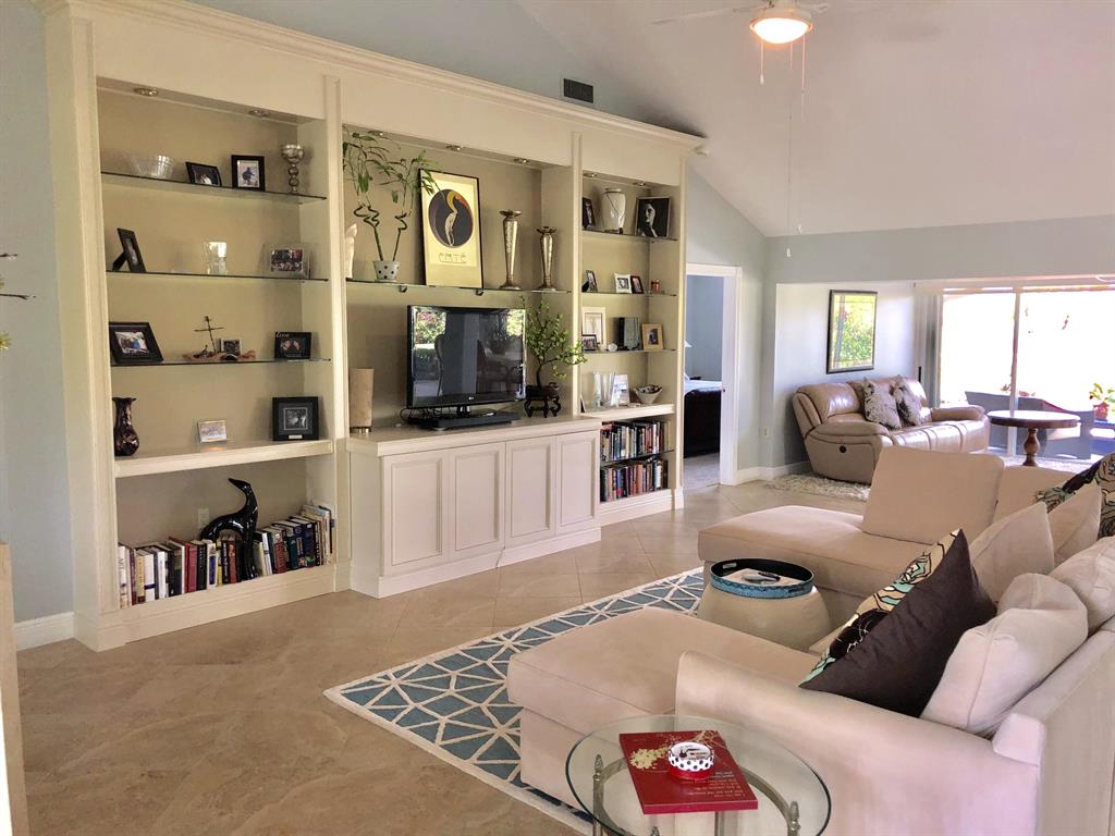 Come home to this renovated single-family home on a rarely available oversized lot in the prestigious Burg & DiVosta community of Bear Island. This corner unit, which features a view of the beautiful pond & golf course, also includes 2 newly remodeled bathrooms, new carpet, 20'' Italian porcelain tile set on the diagonal, a new hot water heater & air conditioning unit, as well as ceiling fans & lights in the great room. The kitchen, with a rare addition of a reverse osmosis water filtration system also features walnut wood cabinets, granite counters and newly updated faucet, dishwasher and garbage disposal. In addition this home comes well equipped with storm protection; including accordion shutters,