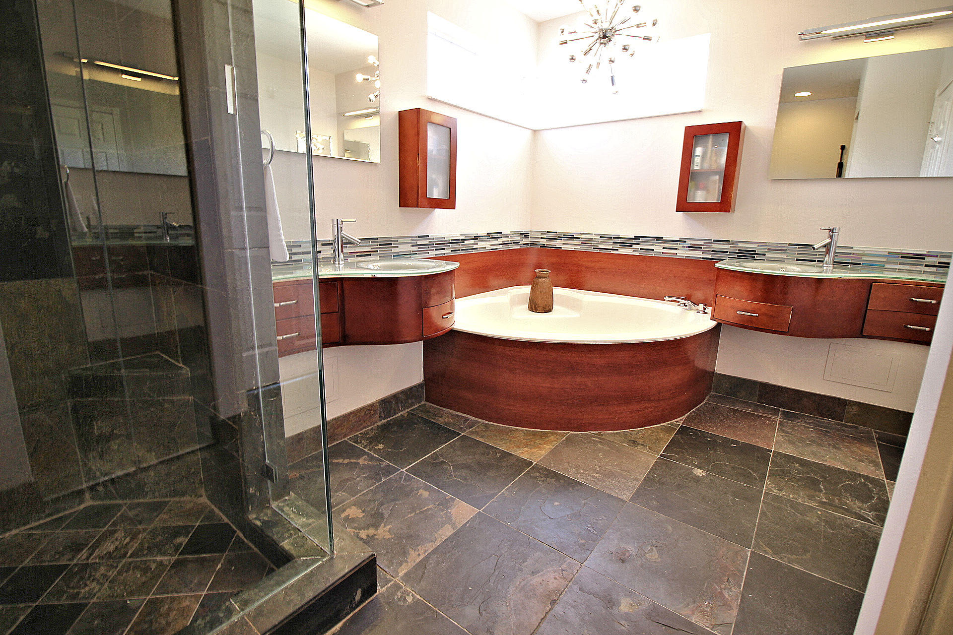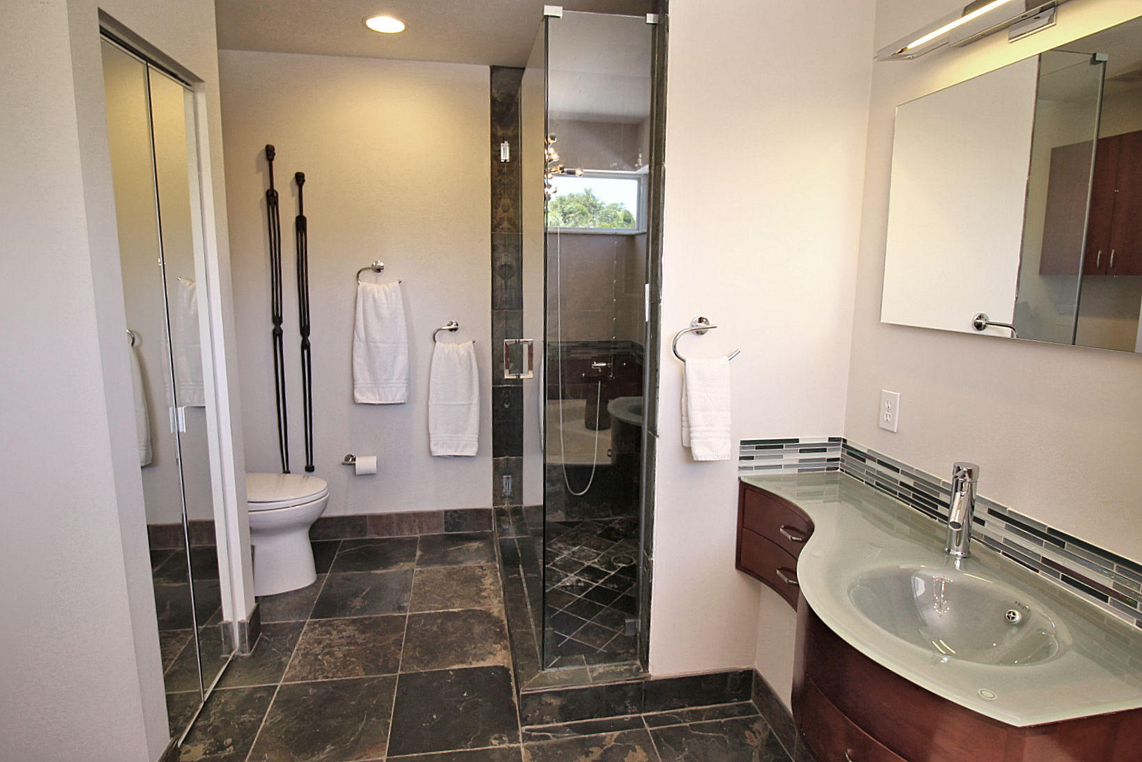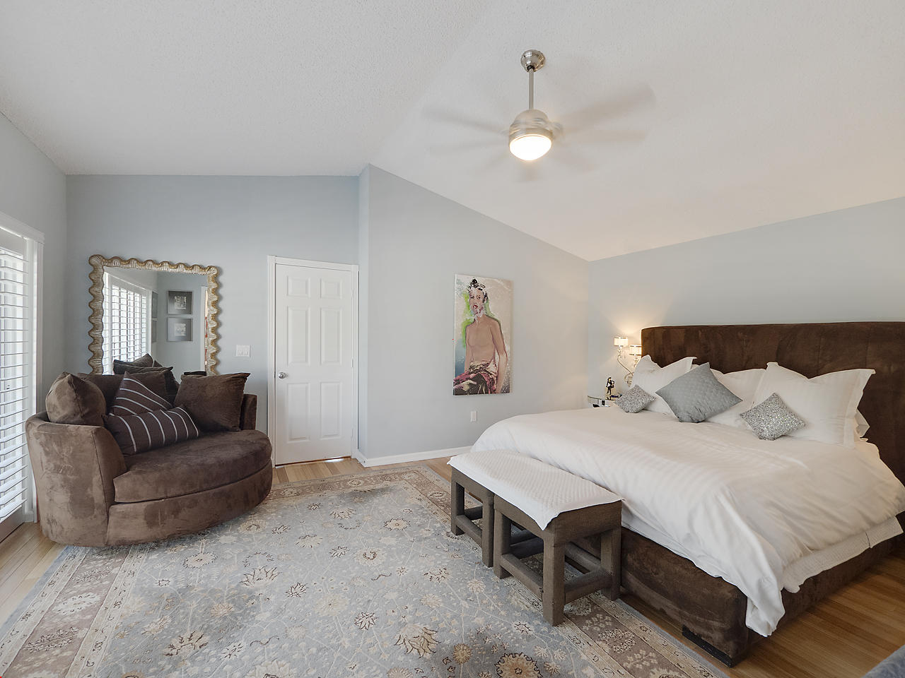 Pride in homeownership is throughout this immaculate and move-in ready home. The welcoming courtyard entry is lushly landscaped with tropical foliage. The 2-story CBS home has 3 BRs and 2-1/2 BAs in the main house and a detached 1 BR, 1 BA guest house, which could make an ideal home office. The first floor features a formal living room/great room, half bath, dedicated laundry room, kitchen and formal dining area. There are volume ceilings and bamboo floors throughout the living areas of the home. Abundant windows provide lots of natural light. The home has been completed updated. The kitchen has a large open concept, a bar top for informal dining, glass mosaic tile back splash and stainless appliances. The formal dining area has sliding doors that open on the courtyard. Upstairs