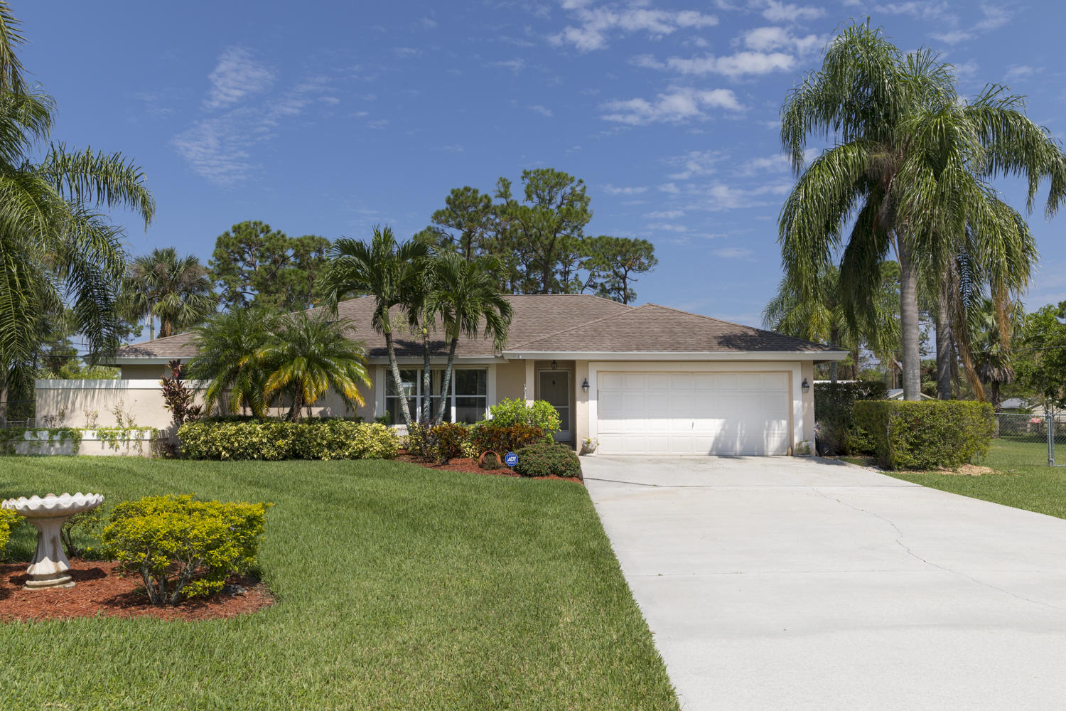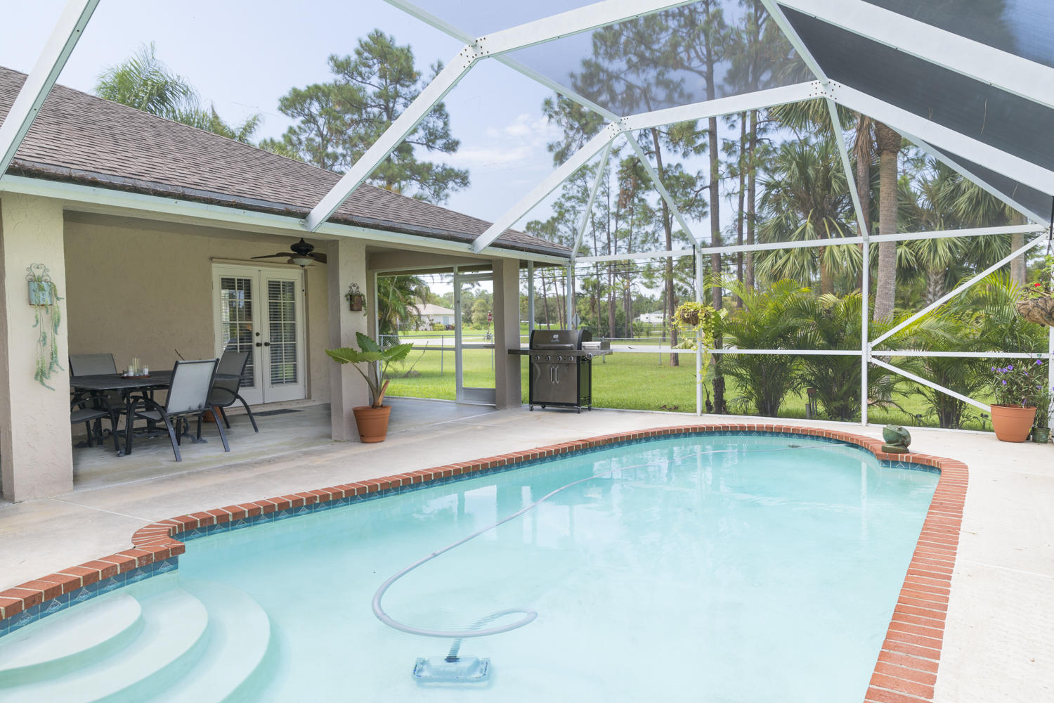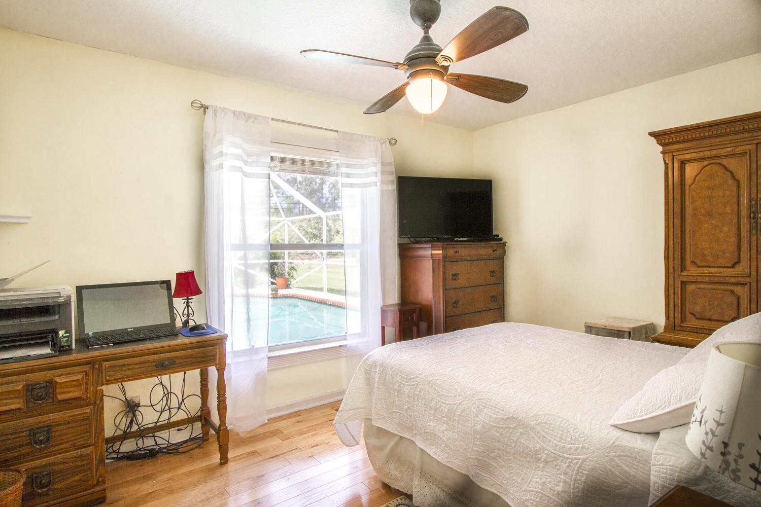 This Stunning Home boasts an Oversized, Fenced, Corner lot on TWO paved roads! The Generously Sized Master Bedroom Includes a Large Ensuite Bathroom. The Living & Family Room Areas Are Perfect To Entertain Family & Guests. Paved sidewalks and fully paved Driveway! Screened in Pool. New AC & Water Heater. Roof 2005. Updated lighting and fans. Exterior painted 3 years ago. Very well maintained home inside and out. Most of the common areas and all the bedrooms have a beautiful Oak wood flooring. This home is move in ready and awaiting your personal touches. Pool table and riding mower are negotiable. Complete hurricane panel shutters. No pond.