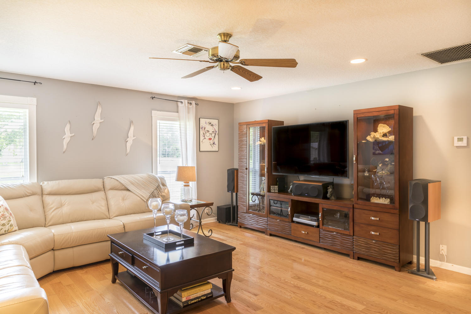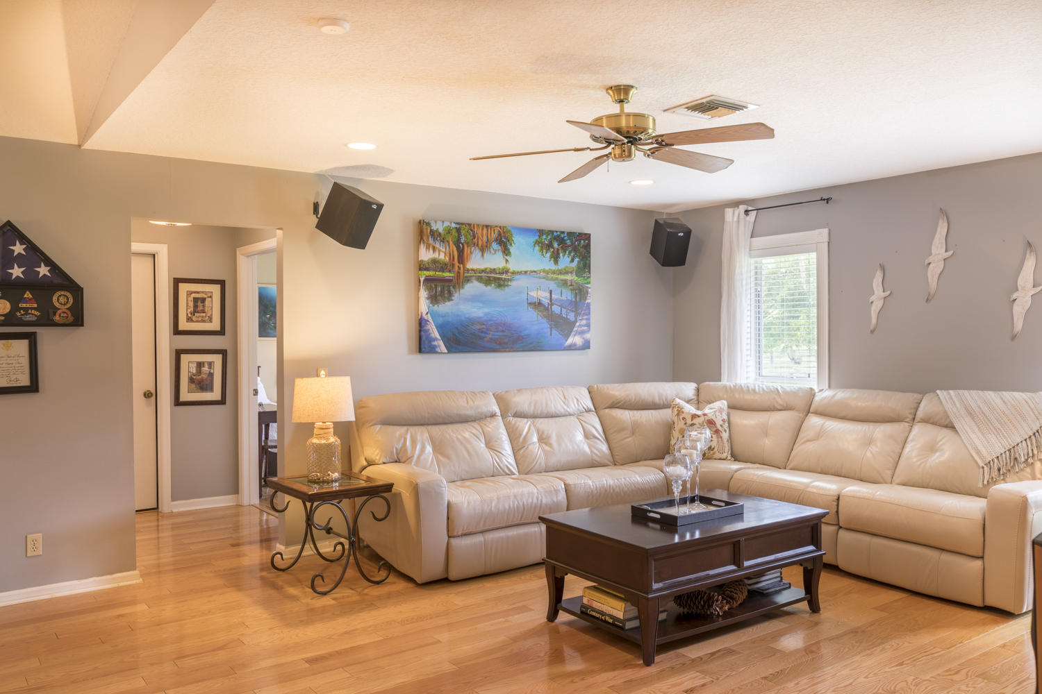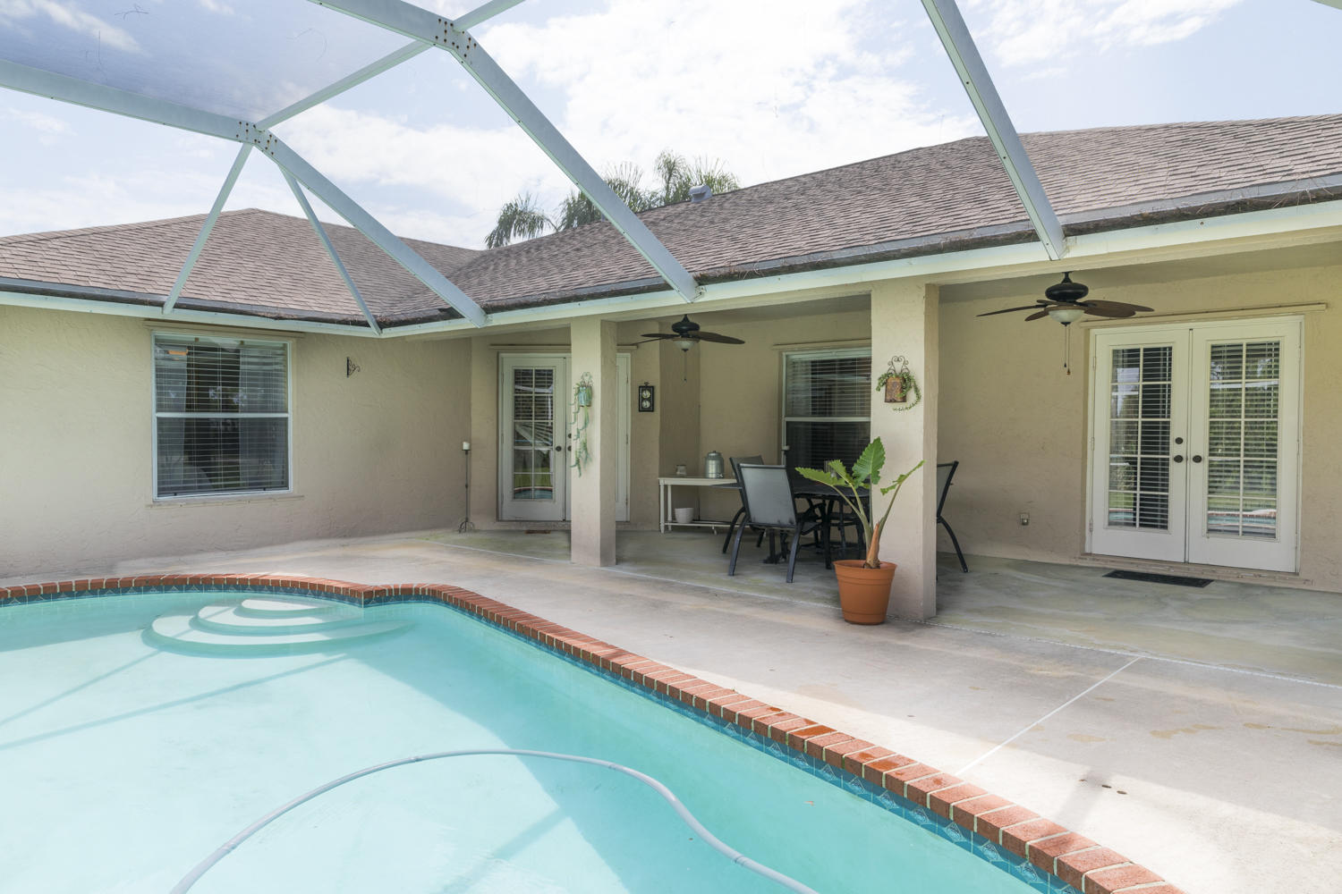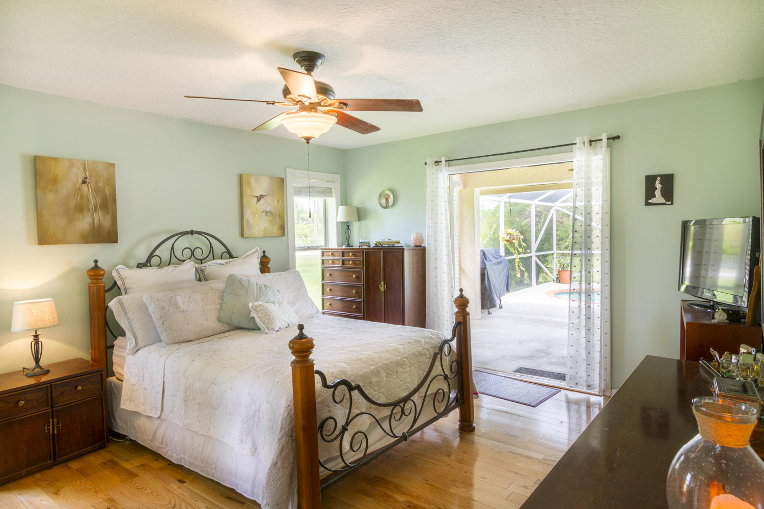 This Stunning Home boasts an Oversized, Fenced, Corner lot on TWO paved roads! The Generously Sized Master Bedroom Includes a Large Ensuite Bathroom. The Living & Family Room Areas Are Perfect To Entertain Family & Guests. Paved sidewalks and fully paved Driveway! Screened in Pool. New AC & Water Heater. Roof 2005. Updated lighting and fans. Exterior painted 3 years ago. Very well maintained home inside and out. Most of the common areas and all the bedrooms have a beautiful Oak wood flooring. This home is move in ready and awaiting your personal touches. Pool table and riding mower are negotiable. Complete hurricane panel shutters. No pond.