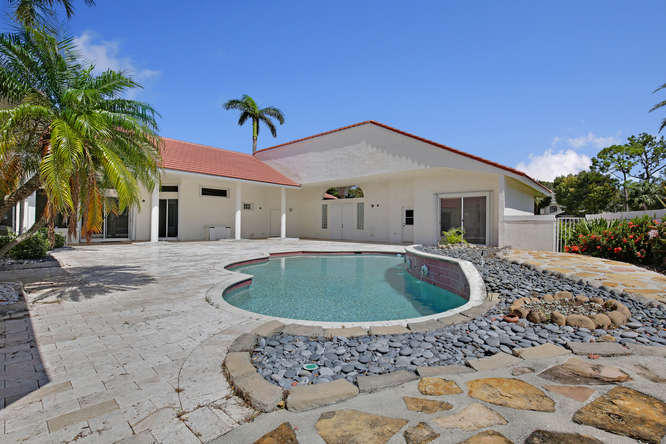 Beautiful designed contemporary 5 bedroom, 4 bath courtyard home with volume ceilings & lots of glass is situated on an interior canal lot in a secluded cul-de-sac street. Parkside is just minutes from Town Center Mall, downtown Boca Raton & the Atlantic Ocean. Master suite features two walk-in closets, separate vanities, roman tub & large shower with dual entrance. Open kitchen with snack bar flows to the family room, and breakfast area overlooks pool & courtyard. Great outdoor living space, with a covered patio & custom oversized pool wrapped in marble pavers, is ideal for entertaining. Highly desirable community offers 24-hr manned gated entrance, clubhouse, tennis courts, handball, basketball, and playground. Roof & 3 zone A/C replaced 2015. Hurricane accordion shutters installed 2017.