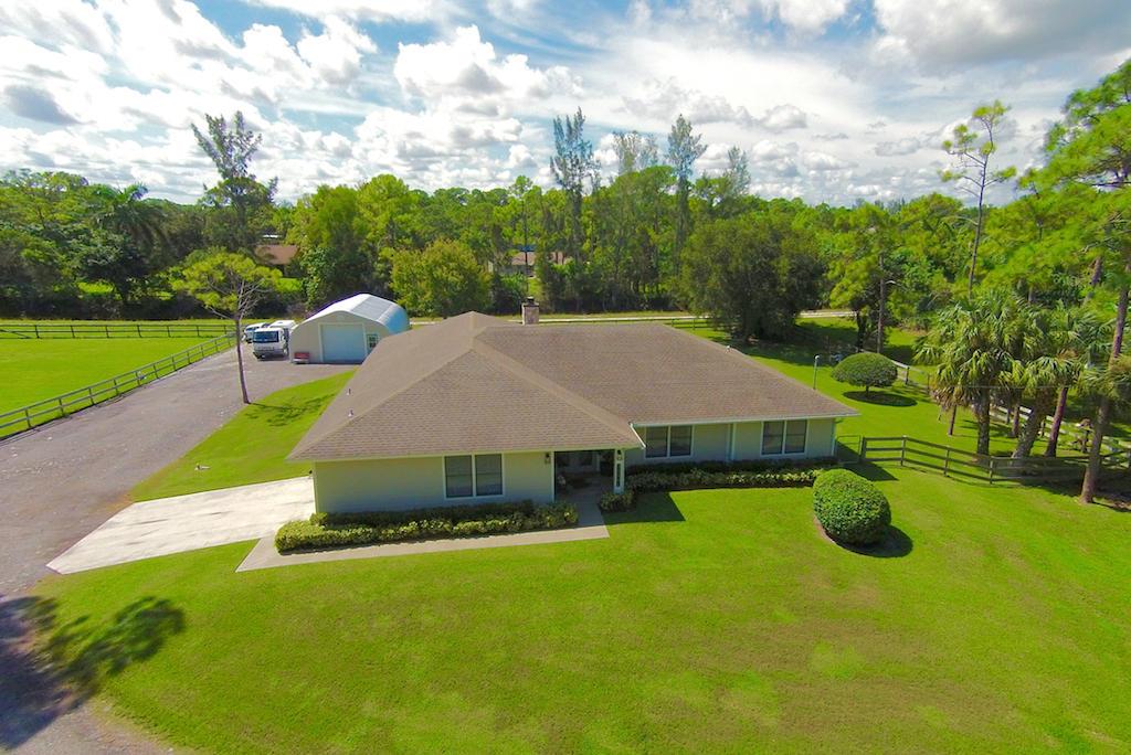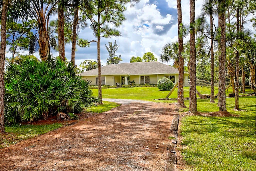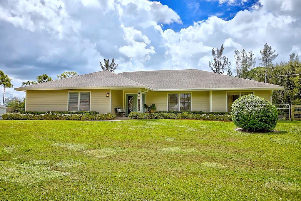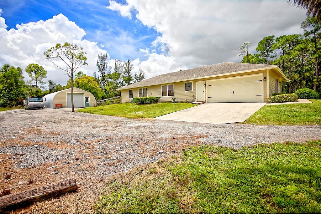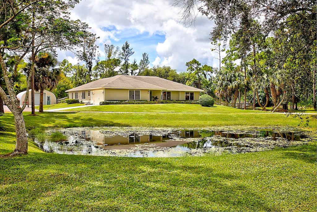 This stunning Estate Home is situated on a private, paved road on 1.25 acres in the Eastern part of The Acreage. With 4 bedrooms and 2 1/2 bathrooms, this home is flooded with natural light, has scenic views of a private pond and features beautiful interior finishes. Its split floor plan make it the perfect home for a family who loves to entertain! The home has a soft and neutral transitional vibe with several upgrades including all NEW exterior hardy board siding, french doors, renovated second bathroom, water system & septic tank. Additionally, you will find a 900 sf detached garage/work space. What are you waiting for?! Welcome home!