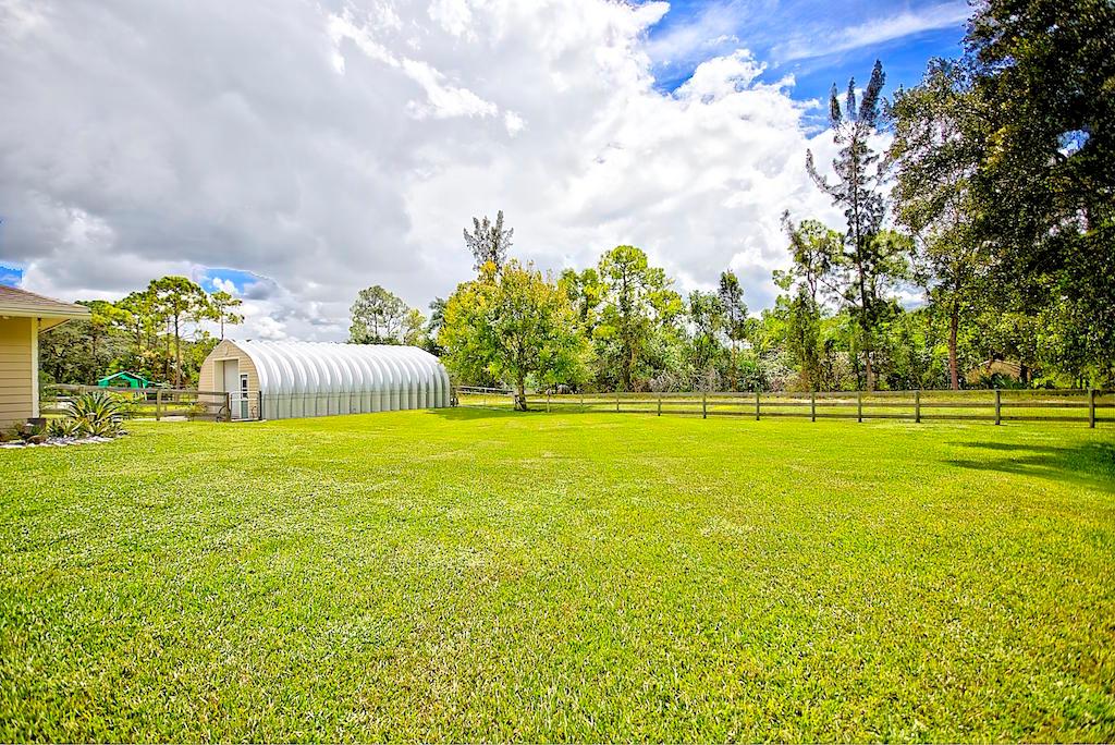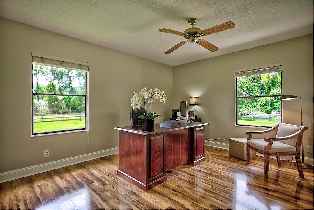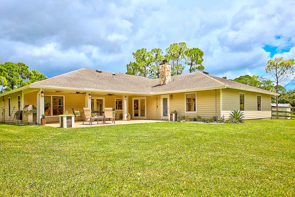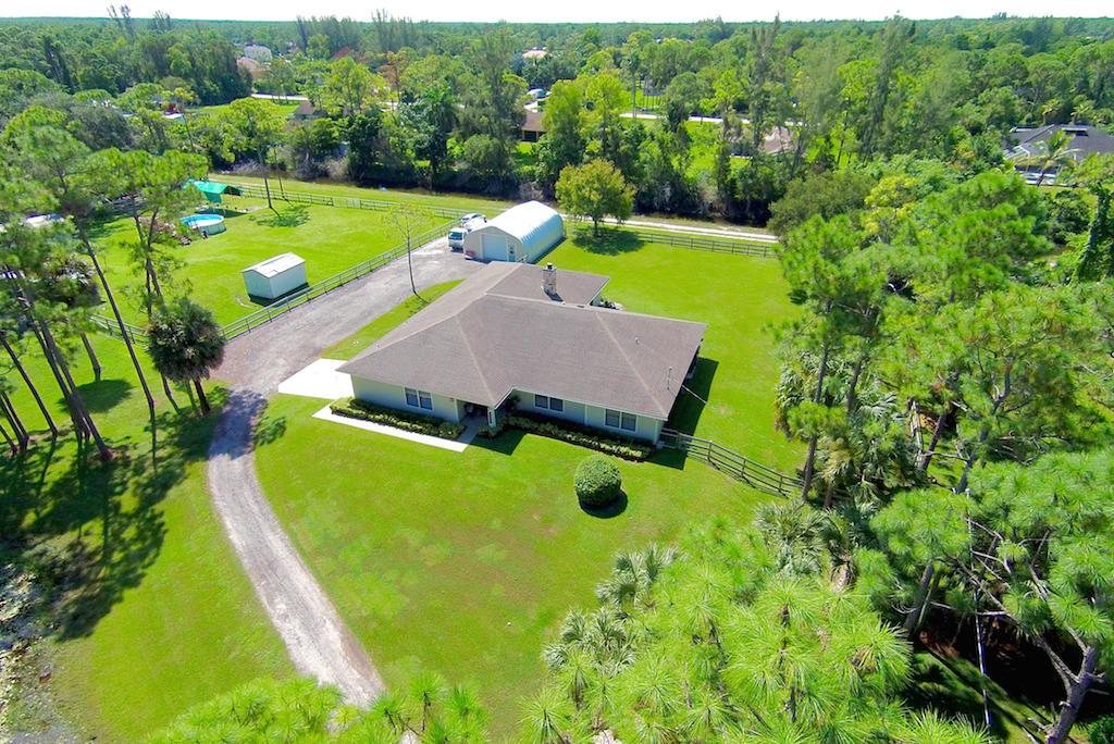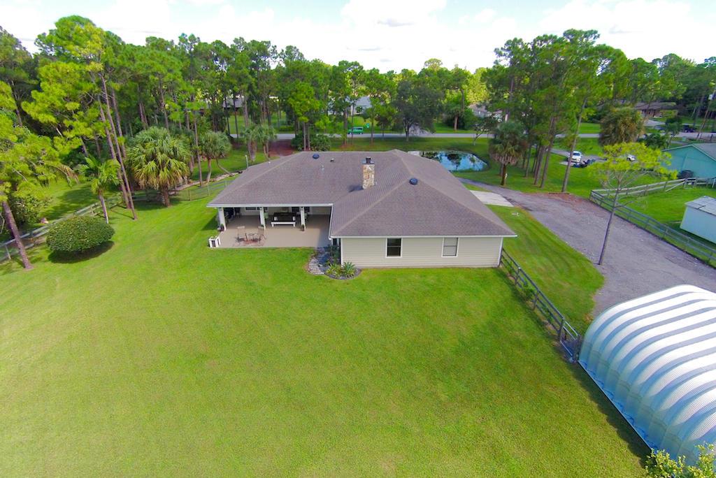 This stunning Estate Home is situated on a private, paved road on 1.25 acres in the Eastern part of The Acreage. With 4 bedrooms and 2 1/2 bathrooms, this home is flooded with natural light, has scenic views of a private pond and features beautiful interior finishes. Its split floor plan make it the perfect home for a family who loves to entertain! The home has a soft and neutral transitional vibe with several upgrades including all NEW exterior hardy board siding, french doors, renovated second bathroom, water system & septic tank. Additionally, you will find a 900 sf detached garage/work space. What are you waiting for?! Welcome home!