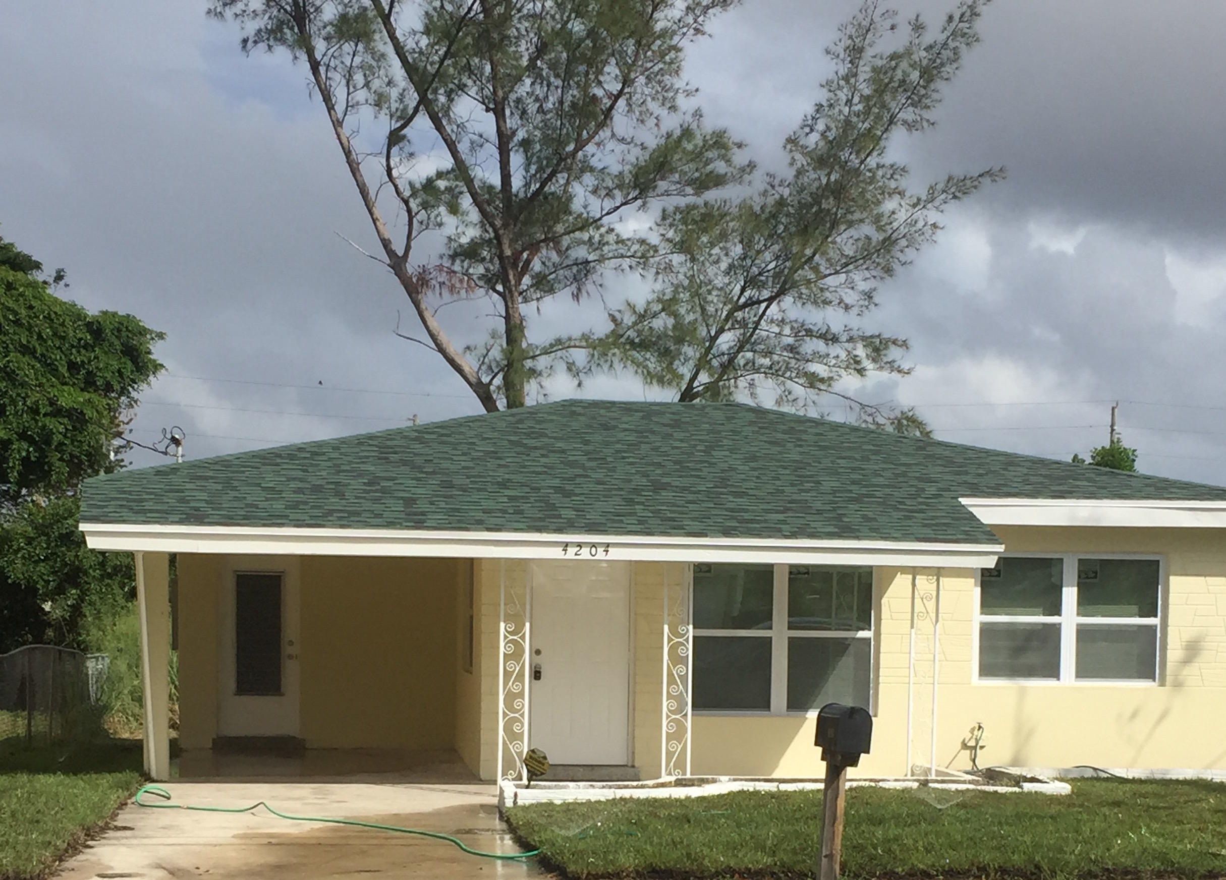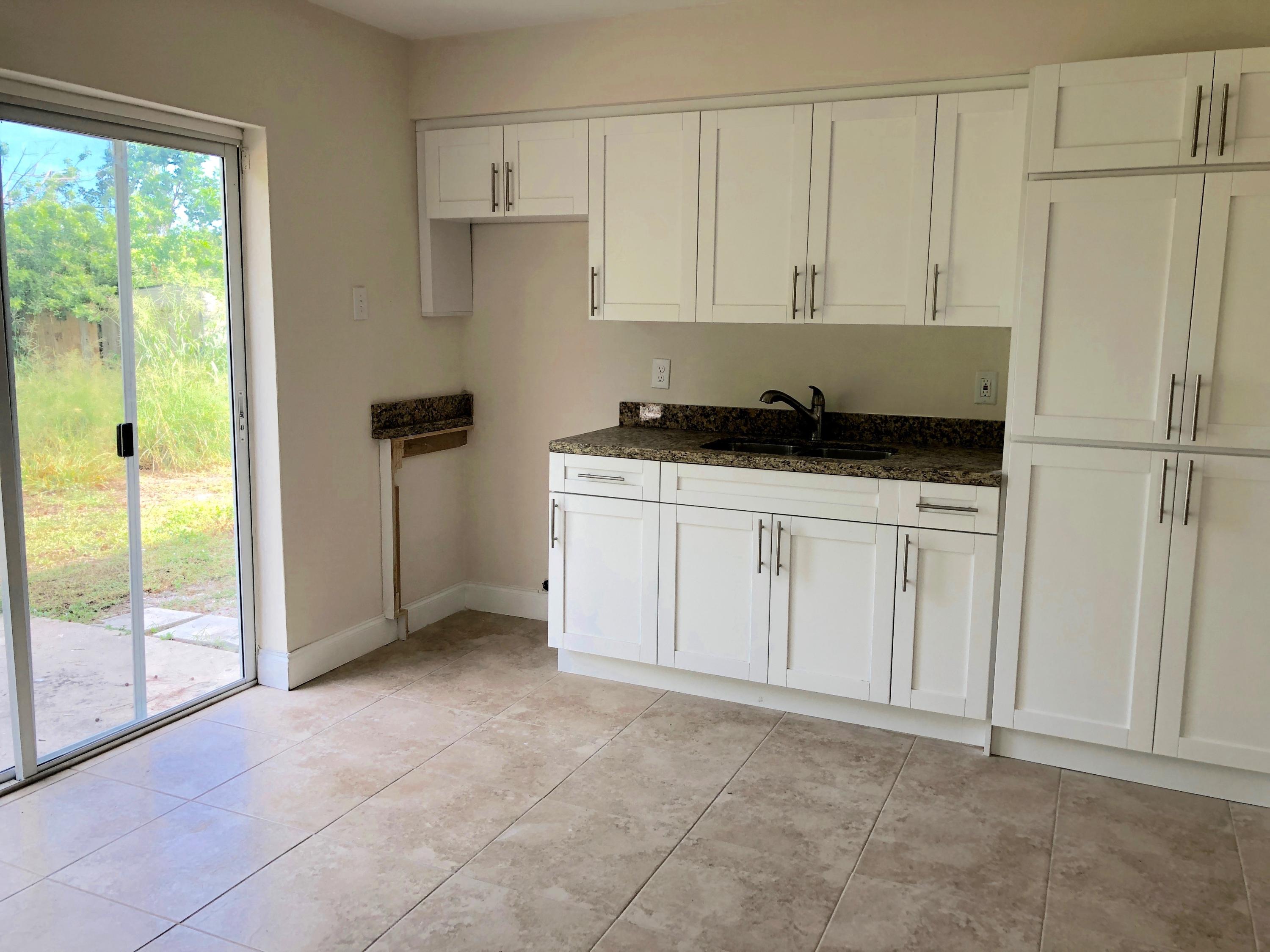 Upgraded 2 bedroom, 1 bath home in West Palm Beach. New hurricane impact windows, A/C and roof. Kitchen features new white shaker cabinets and granite countertop. New tile flooring throughout. Spacious fenced front and back yard.