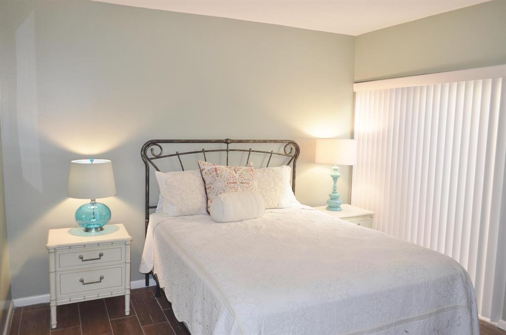 Largest Hickory model in Timberwalk - rarely available! Park-like surroundings - so much green space. Corner unit at the end of a quiet cul-de-sac street has been beautifully updated w/''wood'' flooring, white kitchen w/pretty granite & new stainless steel appliances,both bathrooms remodeled w/wood vanities, seamless shower enclosure in Master and more! New AC & water heater 2012. Oversized screened & tiled covered patio. Skylights & recessed lighting. 1 car garage, double driveway & plenty of guest parking. Split bedroom plan. All living areas & bedrooms on first floor. Loft upstairs w/closet could be another bedroom. 3rd bedroom open & currently used as dining room. Easily converted back! Lawn/landscape, community pool, parks, tennis, ball fields, jogging/bike trails included in HOA fee.