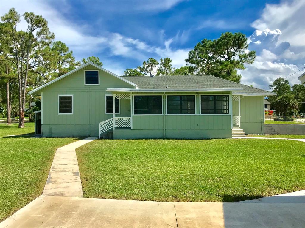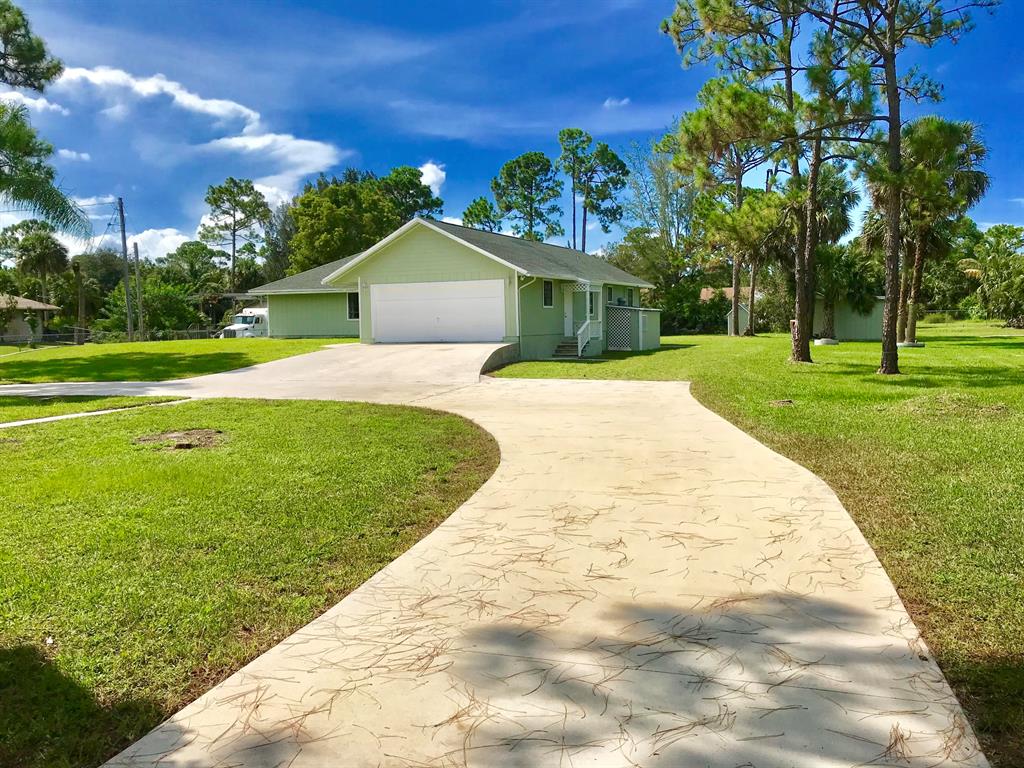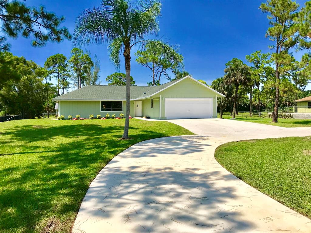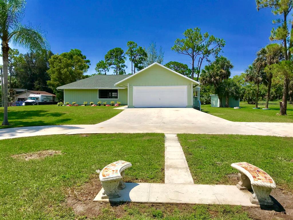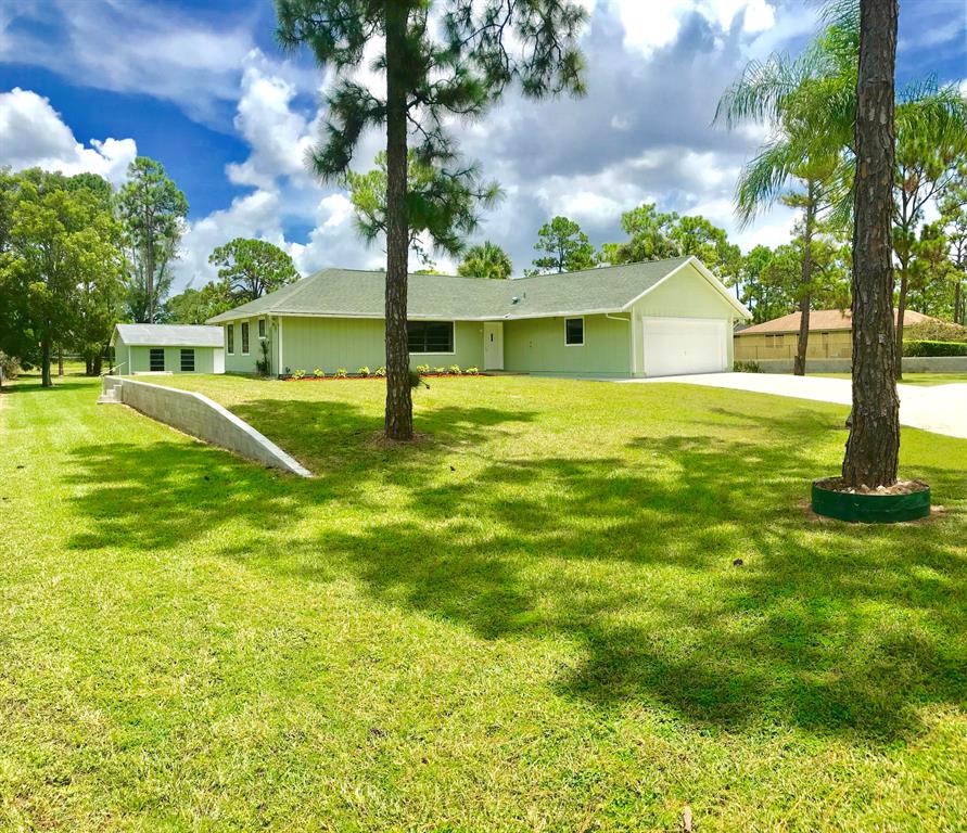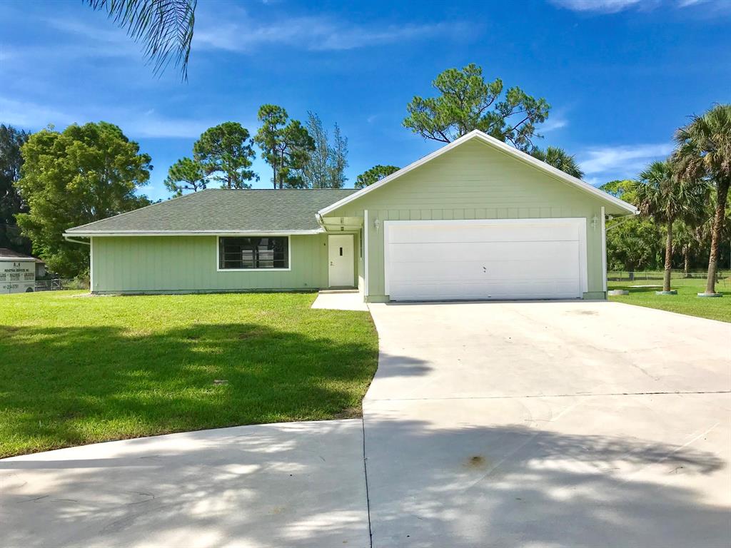 Beautifully renovated house in the Acreage! 3 Bedroom / 2 Bathroom / 4 car garage with 1,690 sqft under air! Large kitchen complete with white cabinetry, quartz countertops, backsplash, and BRAND NEW HIGH END stainless steel appliances (Samsung cook top $1,199 SRP, GE wall oven $1,150, $1,100 Refrigerator + Dishwasher). Modern masterbath done to perfection with porcelain tiled shower, new vanity with quartz countertops. Gorgeous sunroom great for entertaining. New lighting throughout home. Additionally, home has a detached 576 sqft garage, detached tool shed, and Pump House with newer water pump. Massive concrete circular driveway with convenient sidewalks. Fully fenced property with green grass, canal in back. High and Dry. Buyer to do all due dilligence and verify all information.
