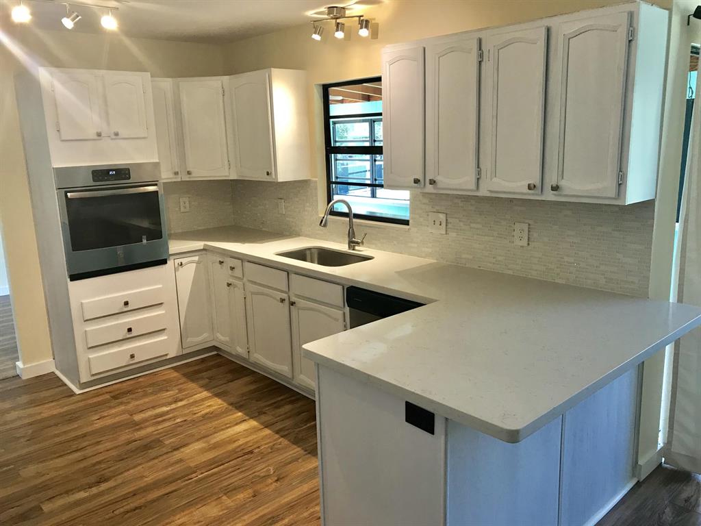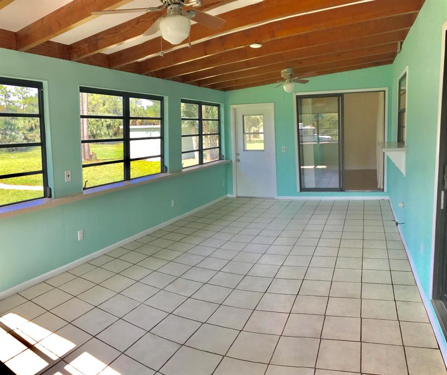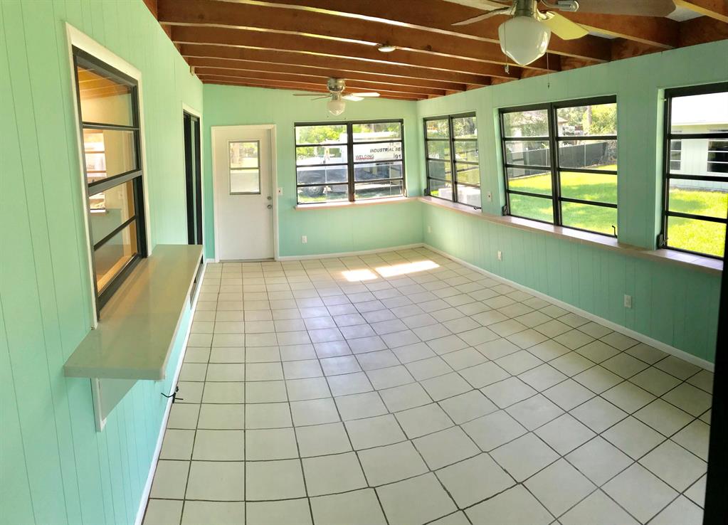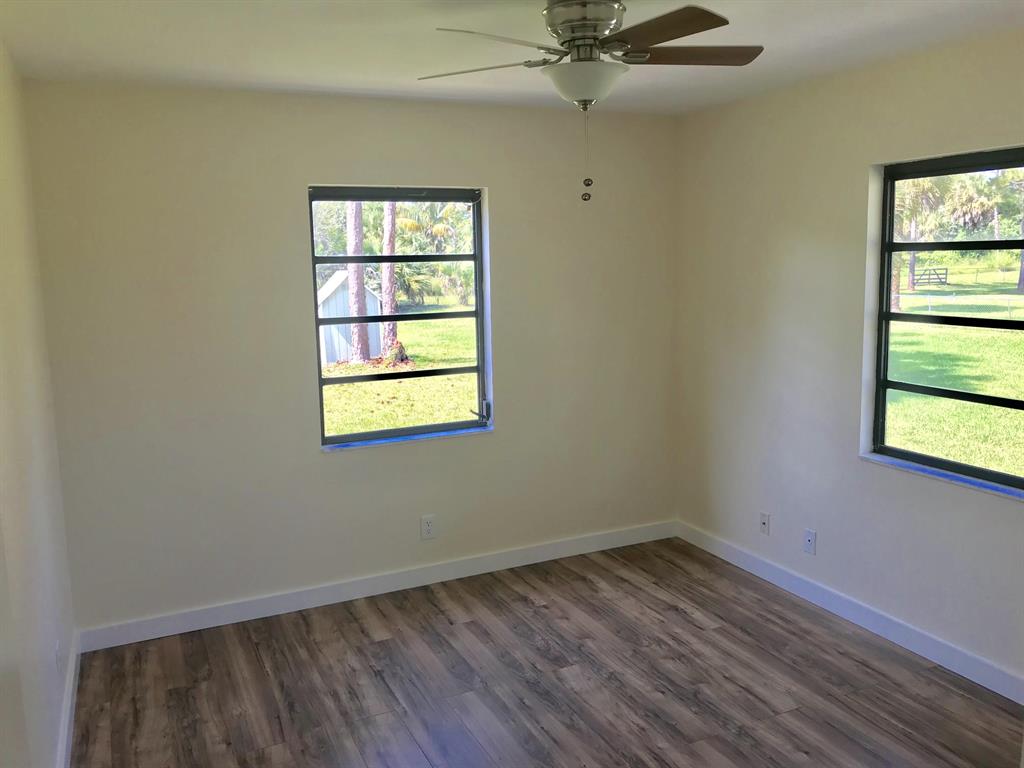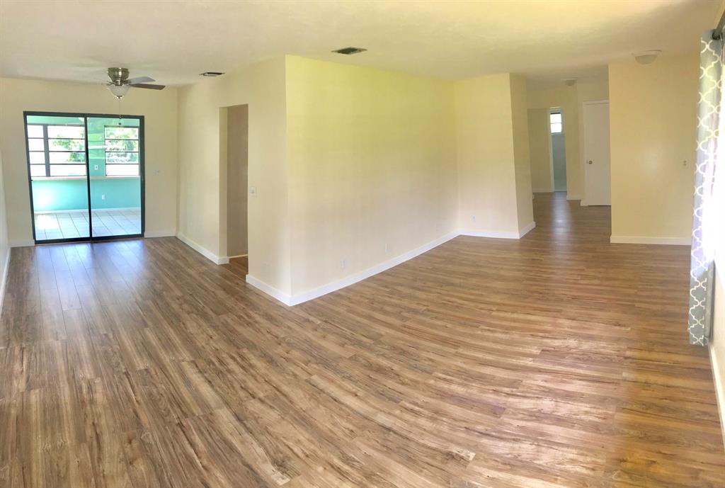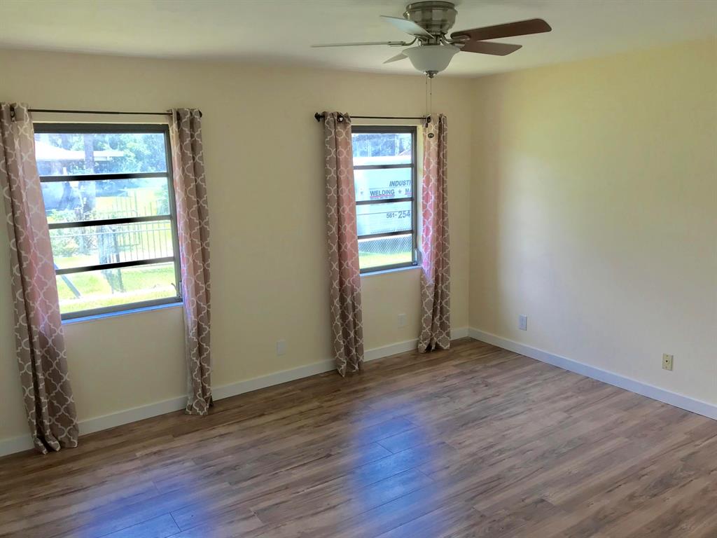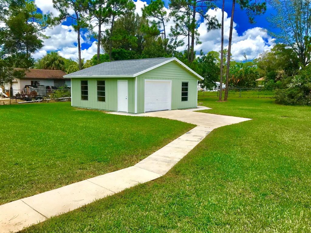 Beautifully renovated house in the Acreage! 3 Bedroom / 2 Bathroom / 4 car garage with 1,690 sqft under air! Large kitchen complete with white cabinetry, quartz countertops, backsplash, and BRAND NEW HIGH END stainless steel appliances (Samsung cook top $1,199 SRP, GE wall oven $1,150, $1,100 Refrigerator + Dishwasher). Modern masterbath done to perfection with porcelain tiled shower, new vanity with quartz countertops. Gorgeous sunroom great for entertaining. New lighting throughout home. Additionally, home has a detached 576 sqft garage, detached tool shed, and Pump House with newer water pump. Massive concrete circular driveway with convenient sidewalks. Fully fenced property with green grass, canal in back. High and Dry. Buyer to do all due dilligence and verify all information.