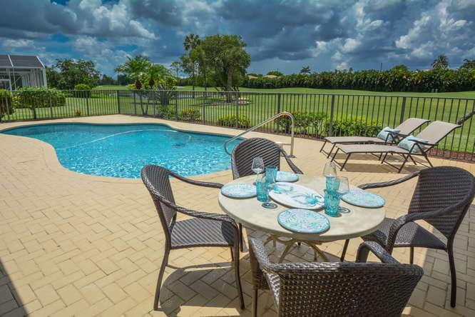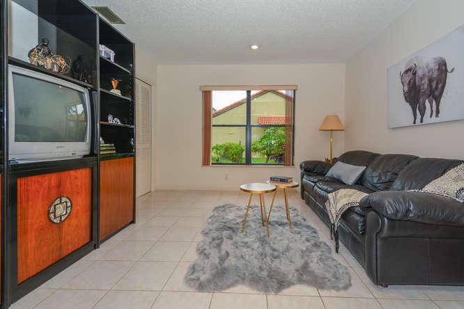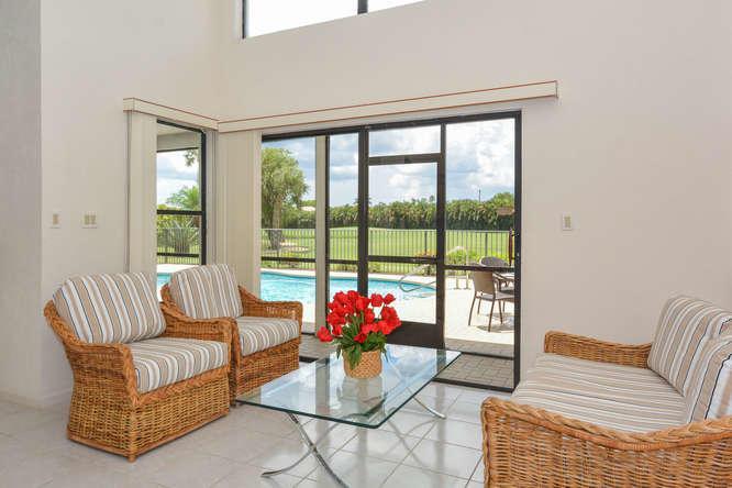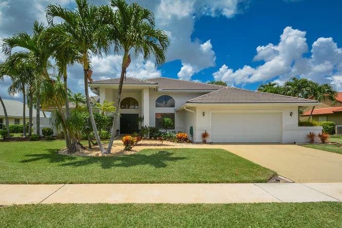 Custom-built home in the all-age championship golf course community of Boca Woods - PRICED TO SELL! Light and bright, high ceilings, open kitchen and split bedroom floorplan. This one-story home has 3 bedrooms/2.5 baths and multiple living spaces that allow for great flexibility and opportunities to enjoy the views throughout the house. Partially screened patio connects to kidney shaped pool and deck so you can entertain year-round. Full country club membership is required; $30,000 equity which is refundable when the home is sold and $30,000 non-refundable initiation fee. Dues are currently $14,460 per year and allow you to enjoy the 2 championship golf courses, Har-Tru tennis courts, Cabana Grill, fitness center and fine dining in the clubhouse. Clubhouse renovation has been approved
