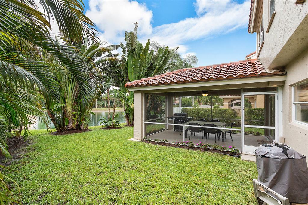 Mediterranean style home in pristine move-in condition with extensive upgrades in the heart of West Boca Raton. Beautifully updated 3 bed 2.5 bath home with a two-car garage in a quaint family-oriented and dog-friendly community consisting of only 35 houses with low HOA fees. This two-story home is nestled on a secluded lakefront corner lot with beautiful water views and abuts a private park with a gazebo and a playground. Large screened patio overlooks lake through lush palm trees in a private backyard setting.Kitchen completely remodeled with granite countertops, a built-in kitchenette and premium stainless steel appliances. Brazilian cherrywood hardwood flooring throughout downstairs living area. Large master suite overlooks private lake and has vaulted ceilings and an oversized wal