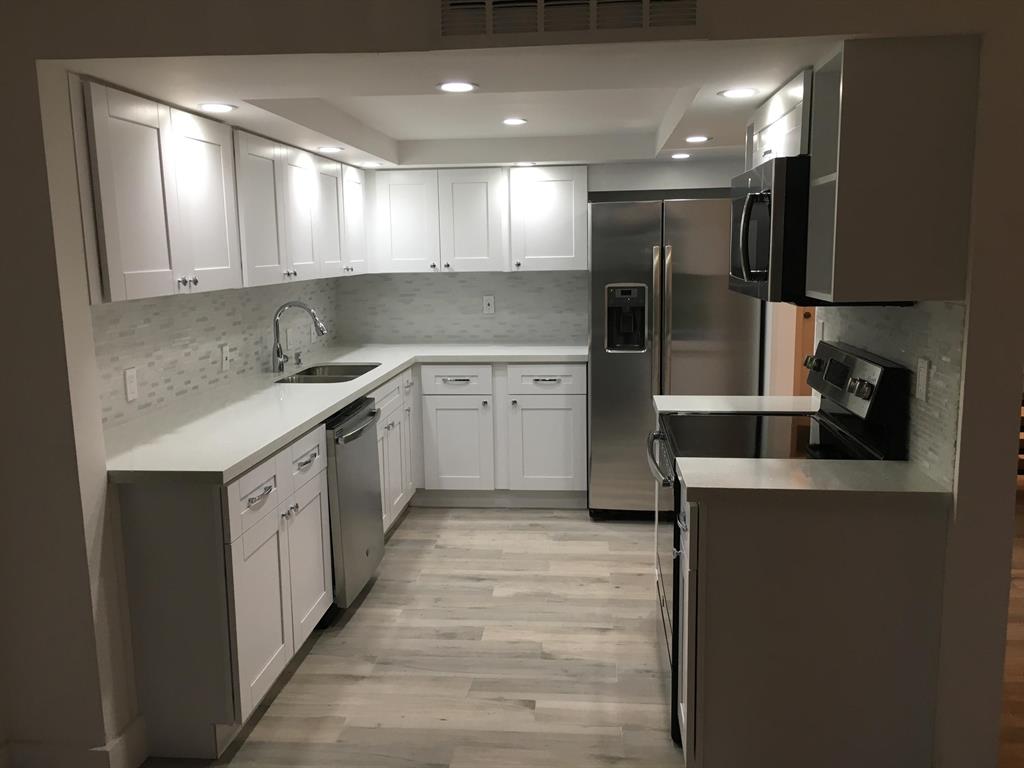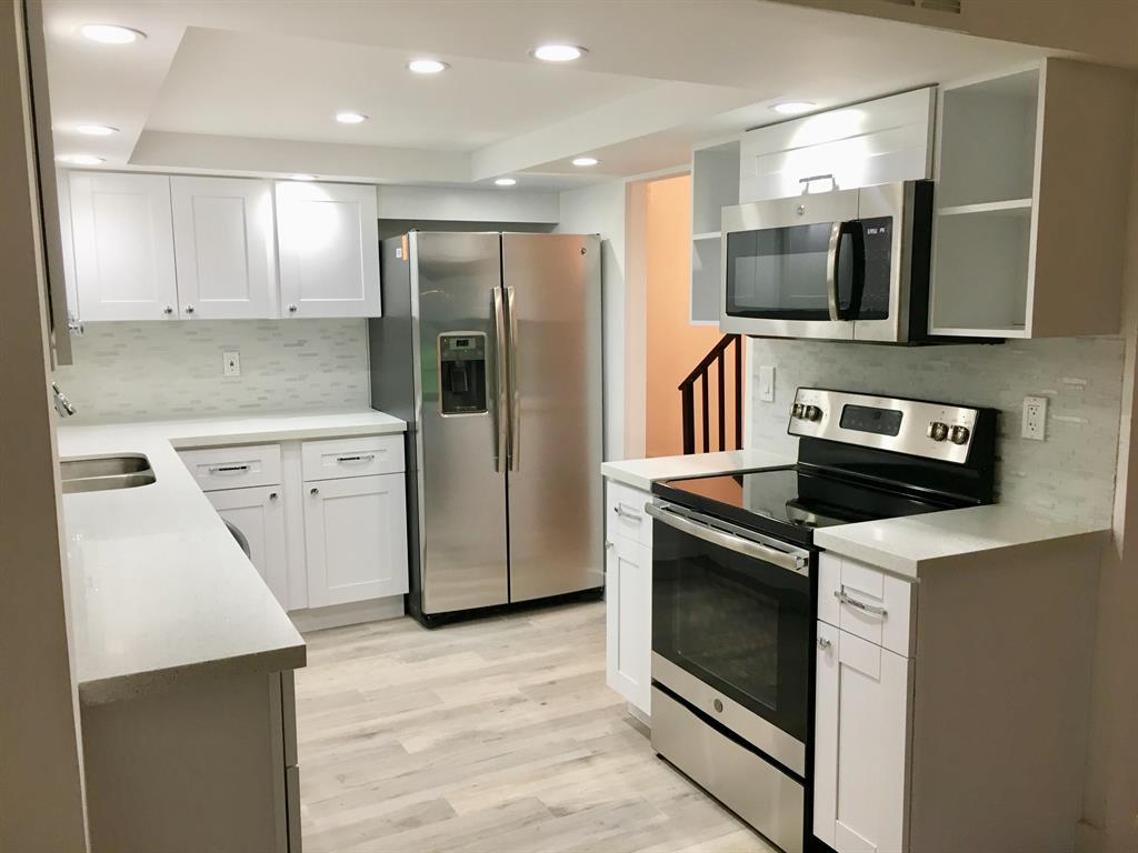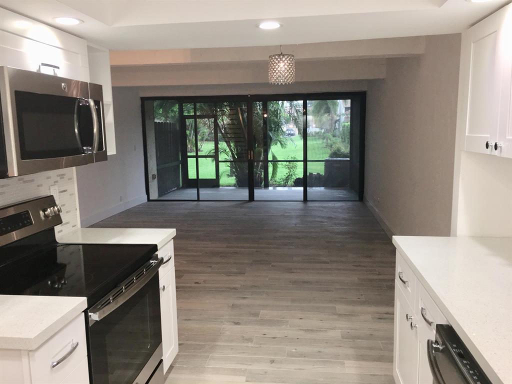East Boca Townhouse...2 Bedroom w/ loft, 2.5 Bath + Loft, 1 Car Garage, Screen Enclosed Porch Overlooking Pool Area.screen enclosed porch overlooking common area and pool. Large bright townhouse with large vaulted and wood beamed ceilings. Updates include wood look porcelain tile on first floor,laminate on 2nd floor & loft. New kitchen, white shaker cabinets, quartz counters, tile backsplash, SS appliances. Updated bathrooms - new tile, white shaker vanities, quartz counters. New interior paint throughout and new lighting & fans throughout.
