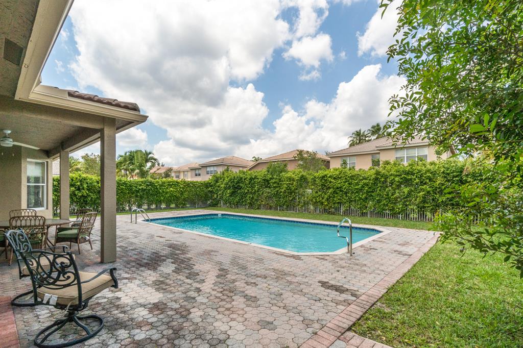 Beautiful 4 bedroom 2.5 bath pool home which shows like a model. Open, bright and spacious living and dining room with volume ceilings, gorgeous 18'' marble floors, crown moulding and elegant staircase open to second story living area.UPGRADED KITCHEN with granite counter tops and new stainless steel APPLIANCES , french doors and bay window BREAKFAST AREA all open to an EXTRA LARGE FAMILY ROOM.THIS FLOOR PLAN HAS THE MASTER BEDROOM ON THE FIRST FLOOR WITH TWO WALK IN CLOSETS, HIS AND HERS SINKS with SEPARATE TUB AND A SHOWER. All BEDROOMS HAVE NEW WOOD flooring.On the 2nd FLOOR THREE LARGE BEDROOMS,PLUS OPEN AND SPACIOUS LIVING AREA/LOFT.THIS HOME IS SITUATED ON A QUIET INTERIOR LOCATION,A FENCED BACKYARD AND OVERSIZED 36 X 18 SWIMMING POOL IN THE BEAUTIFUL GATED COMMUNITY OF SATURNIA.