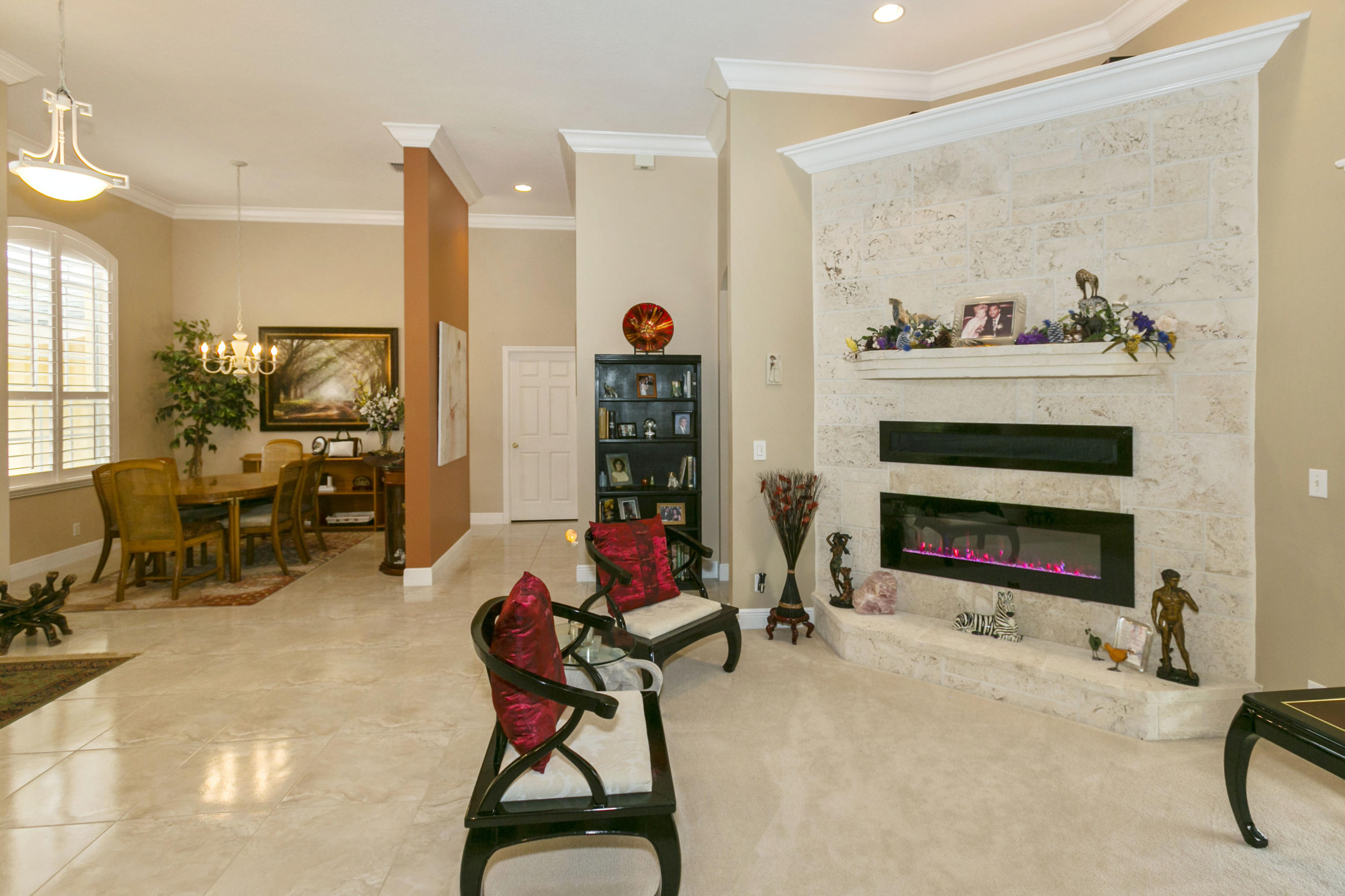 Escape reality as you open the gates and live life like you're in paradise in the 3/2 gorgeous freshly painted inside and outside home. This property has so much to offer: crown molding throughout, stainless steel appliances, wine cooler, bay window at eat in kitchen area, customized walk-in closet and frameless shower in master bedroom. The formal living area has a coral reef wall which has a color changing LED fireplace and a 12' ledge for sound system. As you step outside the sliding doors to the extended screened in patio, enjoy nature as you see the landscaping and the fruit trees. As evening approaches the lights that reflect onto the property make this home one of a kind and a MUST have.