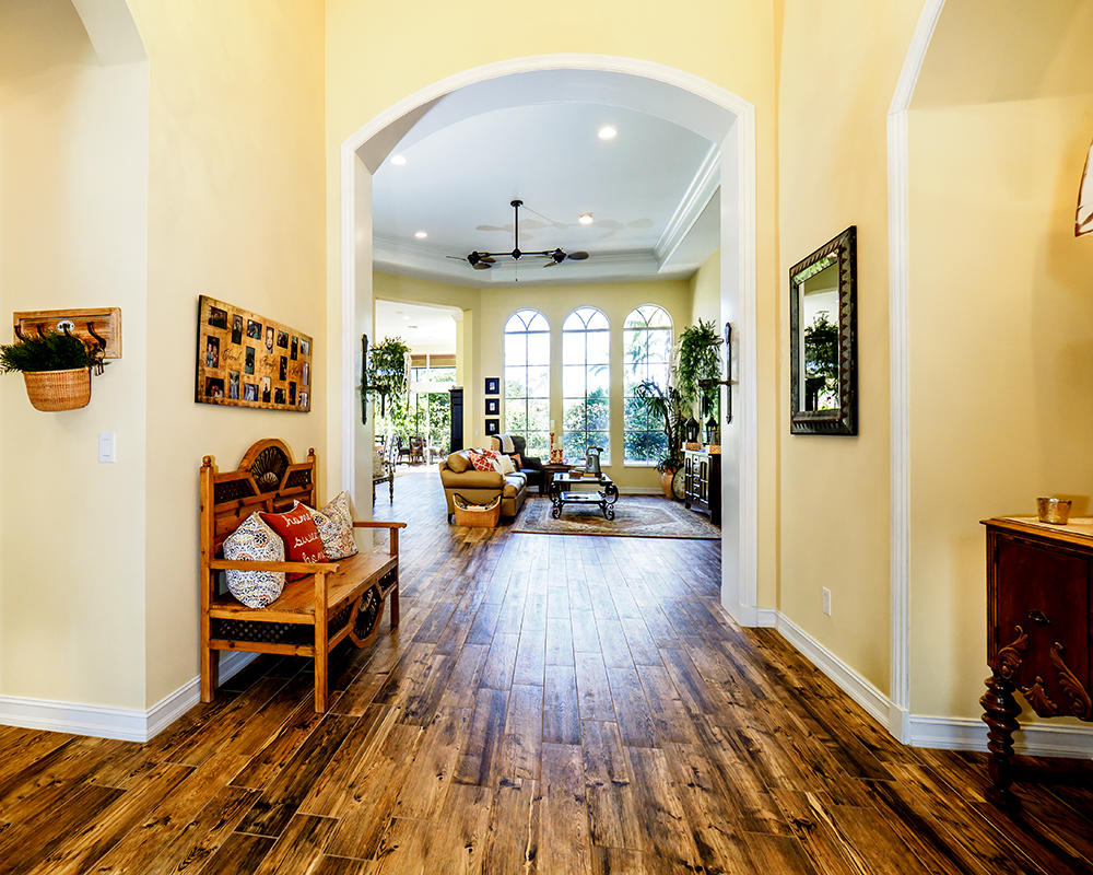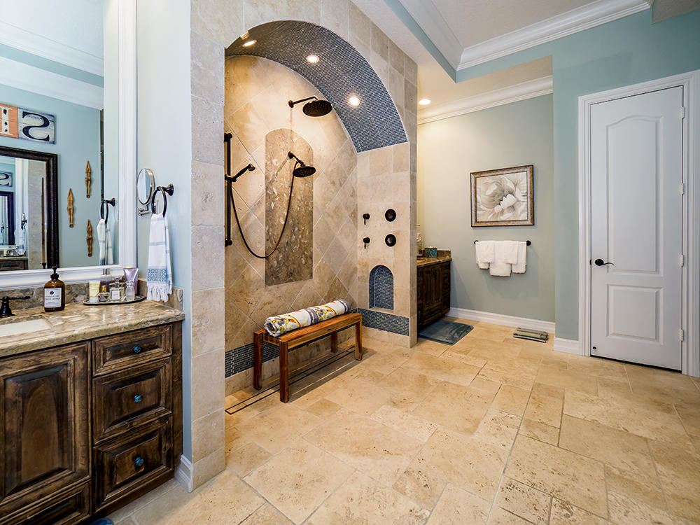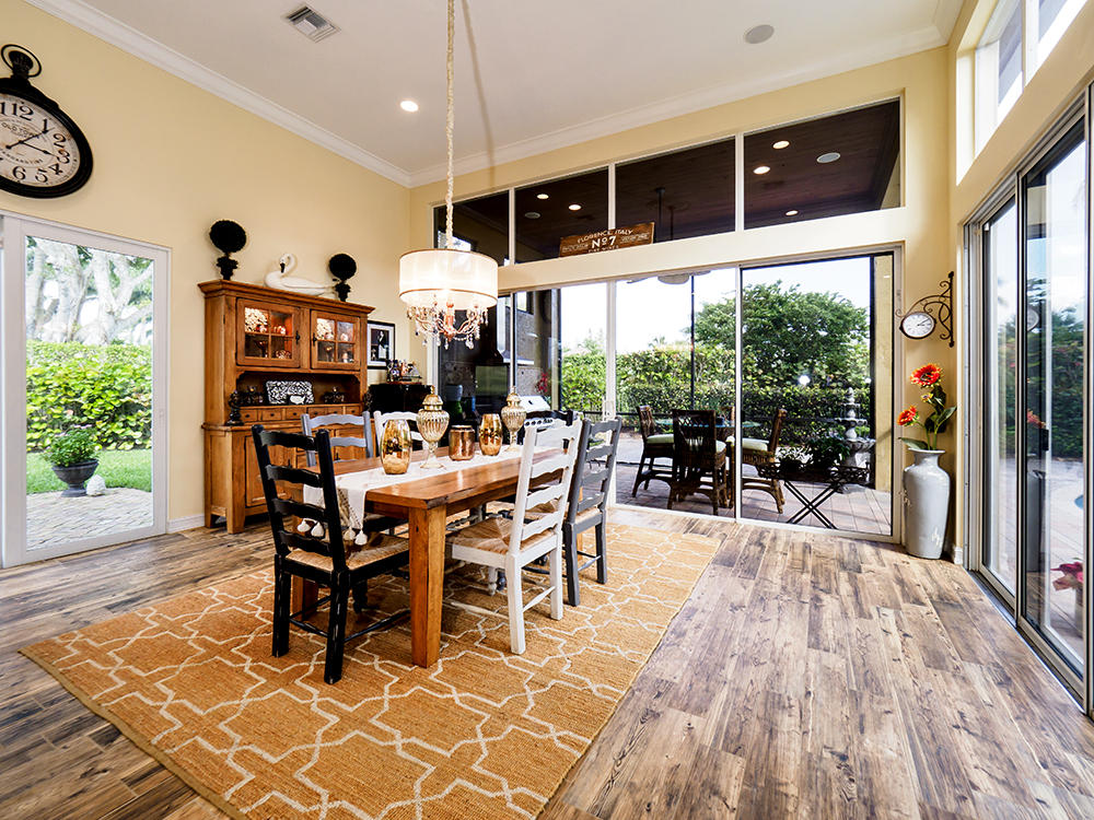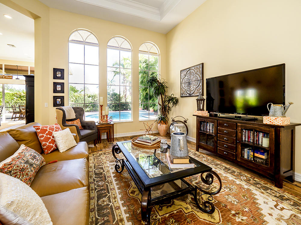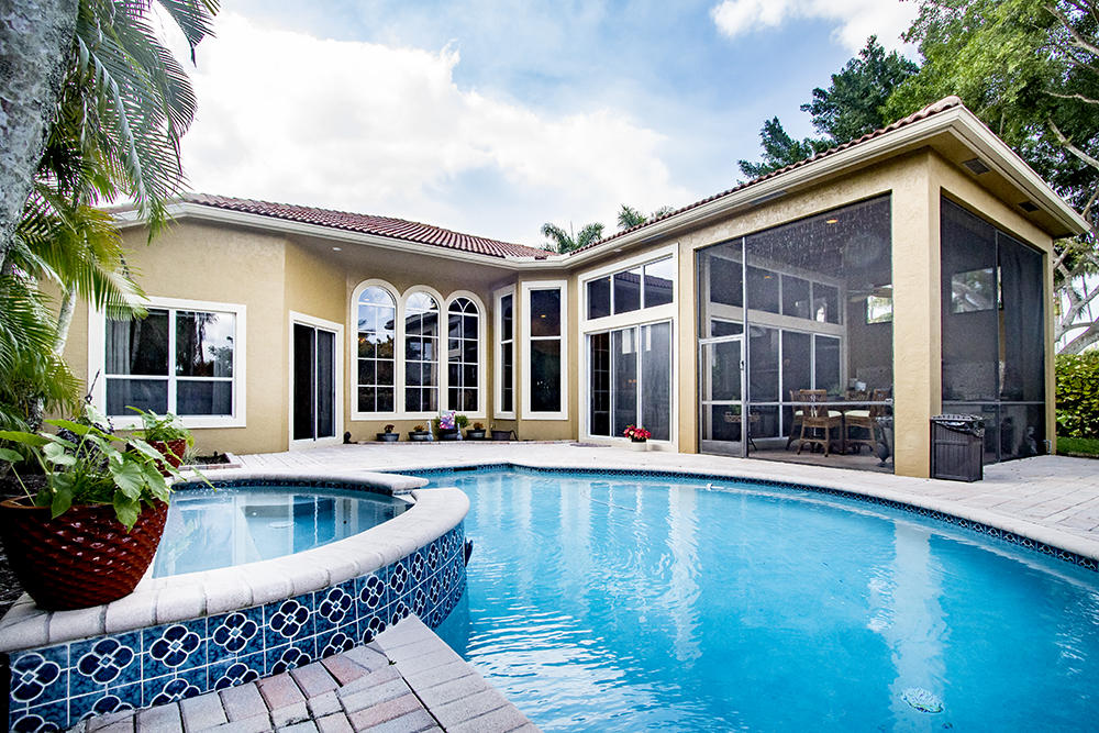 You've never seen a home in Tradition Cove like this! Located on a premium, .34-acre lot, this completely customized and re-upgraded home is move-in perfect. Renovated in 2014 with $150,000 in quality upgrades, this modified ''Balfour'' boasts an enormous corner lot with large side yard & stone water fountain. Because of the oversized lot, the home feels more private, more grand, and more estate-like. Swimming pool with spa. Brick patio with built-in fire pit. Soaring ceilings and open floor plan. Upgraded custom chef's kitchen and appliances. Wood (tile) flooring. Upgraded bathroom with spa like shower. Outdoor screened patio summer kitchen. Spacious two car garage, plus separate golf cart garage. Generator. Water Fountain frontal view. Tradition Cove golf course backyard view (7th tee).