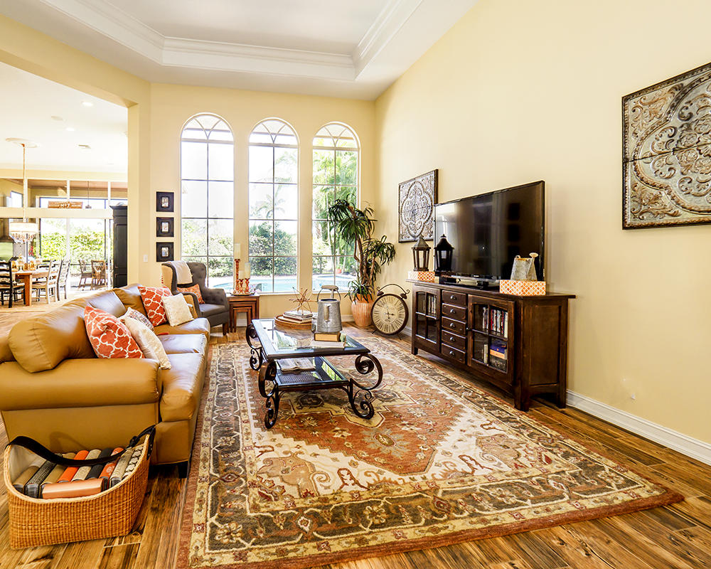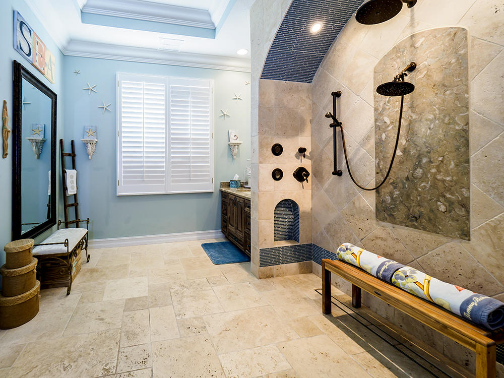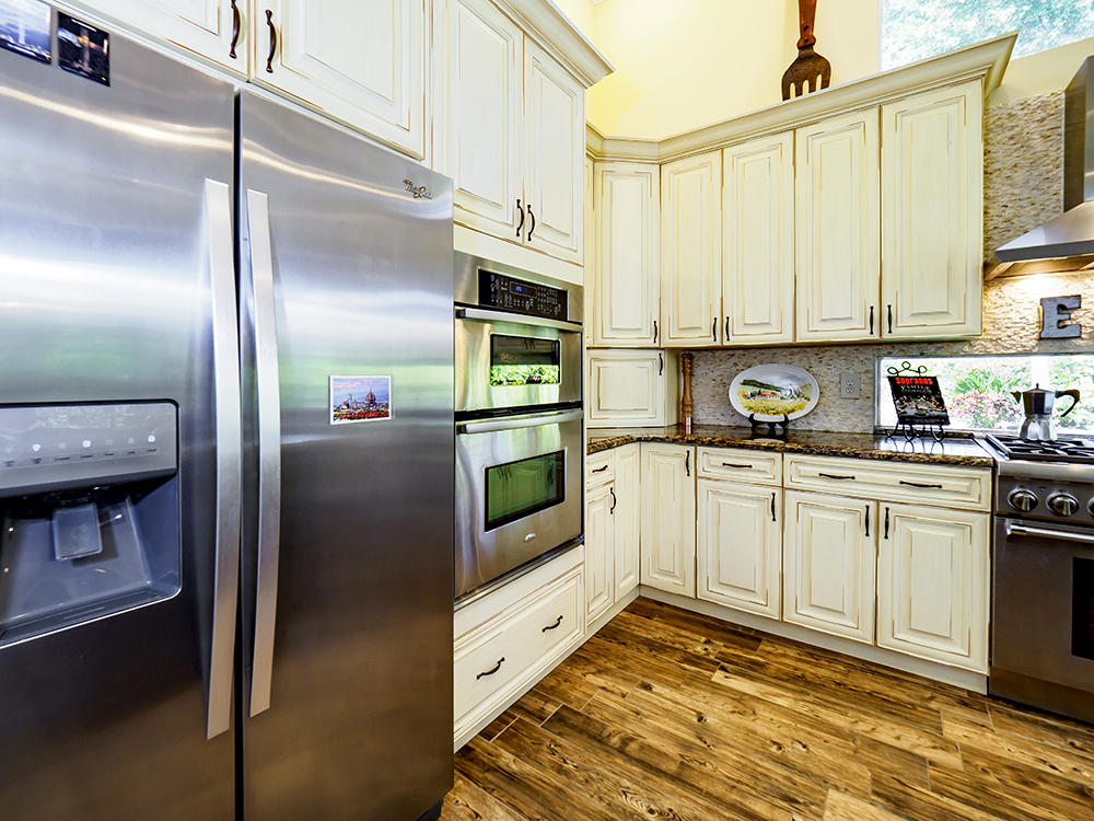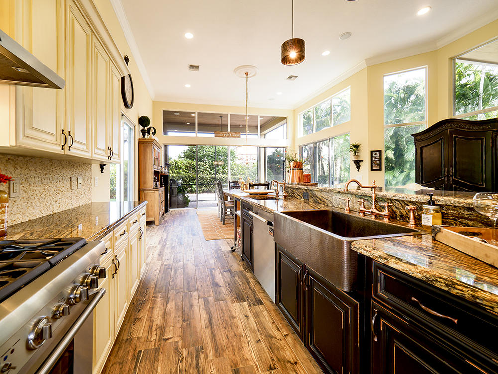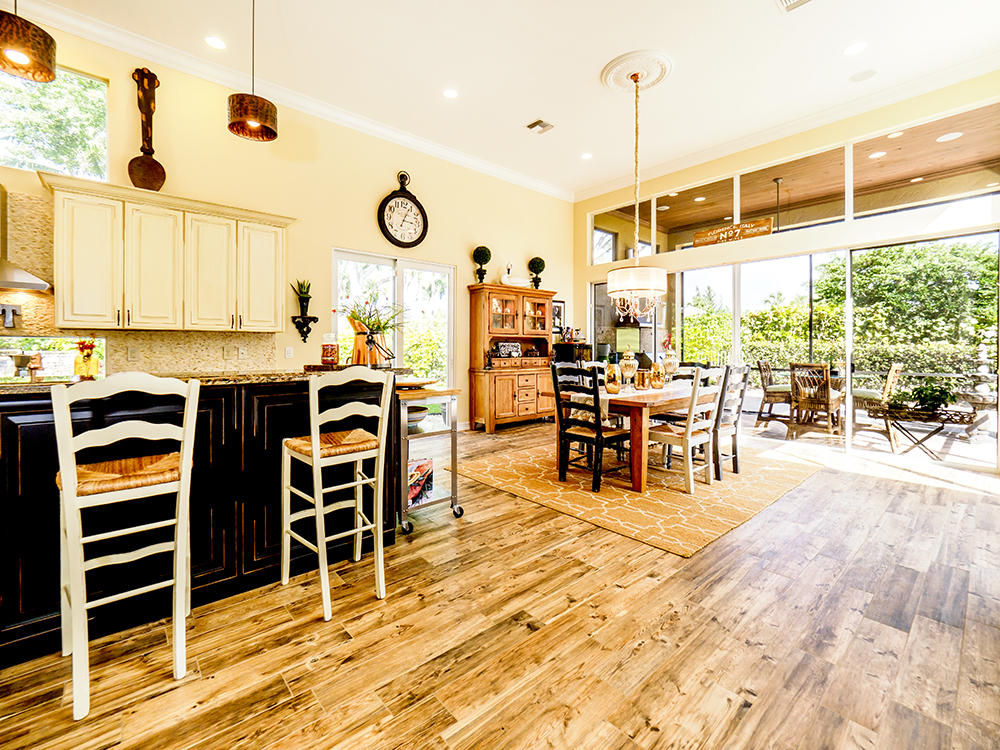 You've never seen a home in Tradition Cove like this! Located on a premium, .34-acre lot, this completely customized and re-upgraded home is move-in perfect. Renovated in 2014 with $150,000 in quality upgrades, this modified ''Balfour'' boasts an enormous corner lot with large side yard & stone water fountain. Because of the oversized lot, the home feels more private, more grand, and more estate-like. Swimming pool with spa. Brick patio with built-in fire pit. Soaring ceilings and open floor plan. Upgraded custom chef's kitchen and appliances. Wood (tile) flooring. Upgraded bathroom with spa like shower. Outdoor screened patio summer kitchen. Spacious two car garage, plus separate golf cart garage. Generator. Water Fountain frontal view. Tradition Cove golf course backyard view (7th tee).
