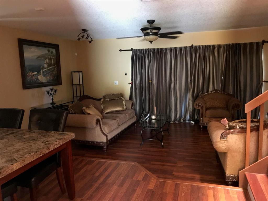 Very beautiful, well mainteneted 2 story corner unit with community pool and lake view. Laminate floors all over the house, hurricane shutters, alarm system, nice renovated bathrooms and custom made master closet. Covered patio and balcony with tiled floor. Laundry tub in a garage, lots of storage and closets. Newer AC-unit, roof and water heater.Clean and ready to move in Home surrounded by a nice, relaxing ambiance. You MUST SEE :)