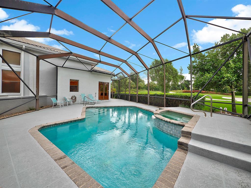 GOLF FRONT COUNTRY CLUB HOME WITH PRIVATE POOL.3 B/R'S, 3.5 BATHS, LIV/RM, DEN, FORMAL DINING & EAT-IN KITCHEN. BEAUTIFUL GOLF COURSE VIEWS. LARGE BKFAST AREA W/BAY WINDOWS. MASTER HAS TWO EN-SUITE COMPLETELY SEP. HIS/HERS BATHS & LARGE W/I CLOSET. 2C GAR. 15' CEIL. IN MAIN ROOMS & UP TO 14' IN MASTER. AS PER PBC PERMIT DEPT ROOF 2002, SCREEN ENC. 2006, AC'S 2005 & 2016. WTR HTR. 2004. METAL GARAGE DOOR WITH HURRICANE BRACING. ON-SITE RESTAURANT, FITNESS, TENNIS, GOLF, PICKLE BALL. CLUB MEMBERSHIP MANDATORY. UPFRONT FEES REQUIRED: INITIATION, EQUITY BOND PURCHASE & CAPITAL CONTRIBUTIONS OF AROUND $60,000 (cannot be financed) & APPROX $21,000 PER YR. $283 MO. HOA INC. CABLE/INTERNET/ALARM/24 HR GUARD GATE. SIZES/MEASUREMENTS/AGES APPROX. & SUBJ 2 VERIF. EXCELLENT BUY!