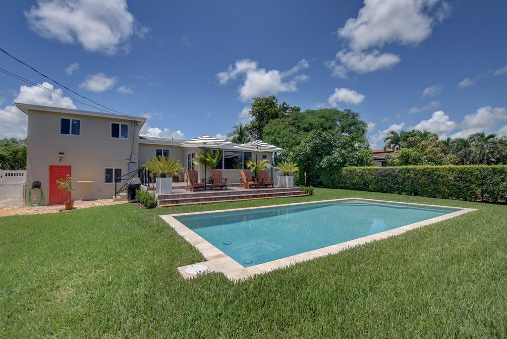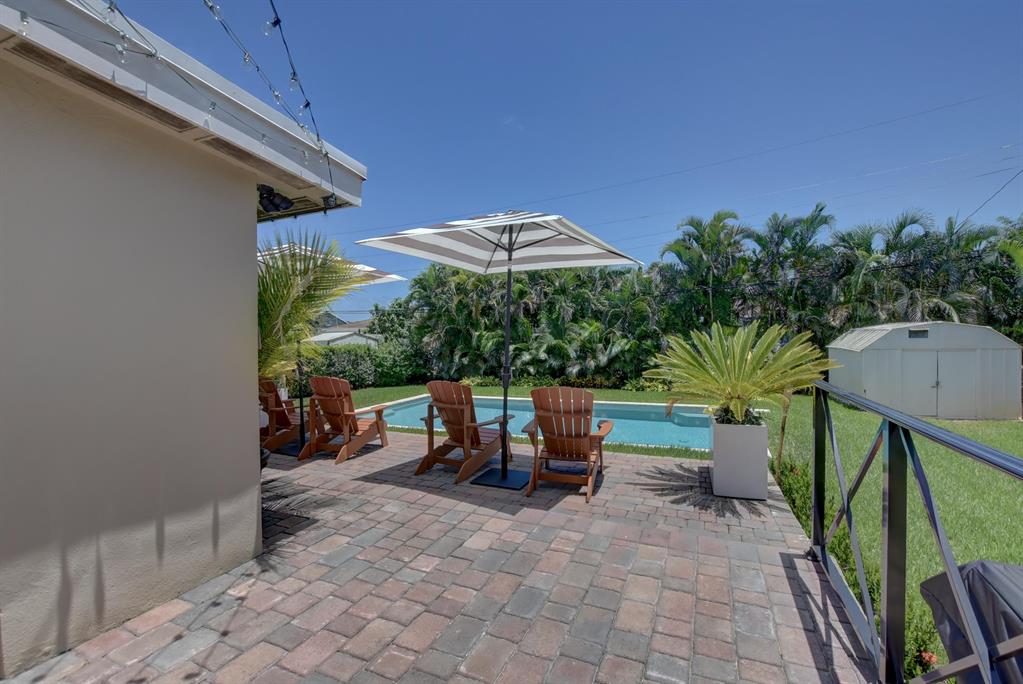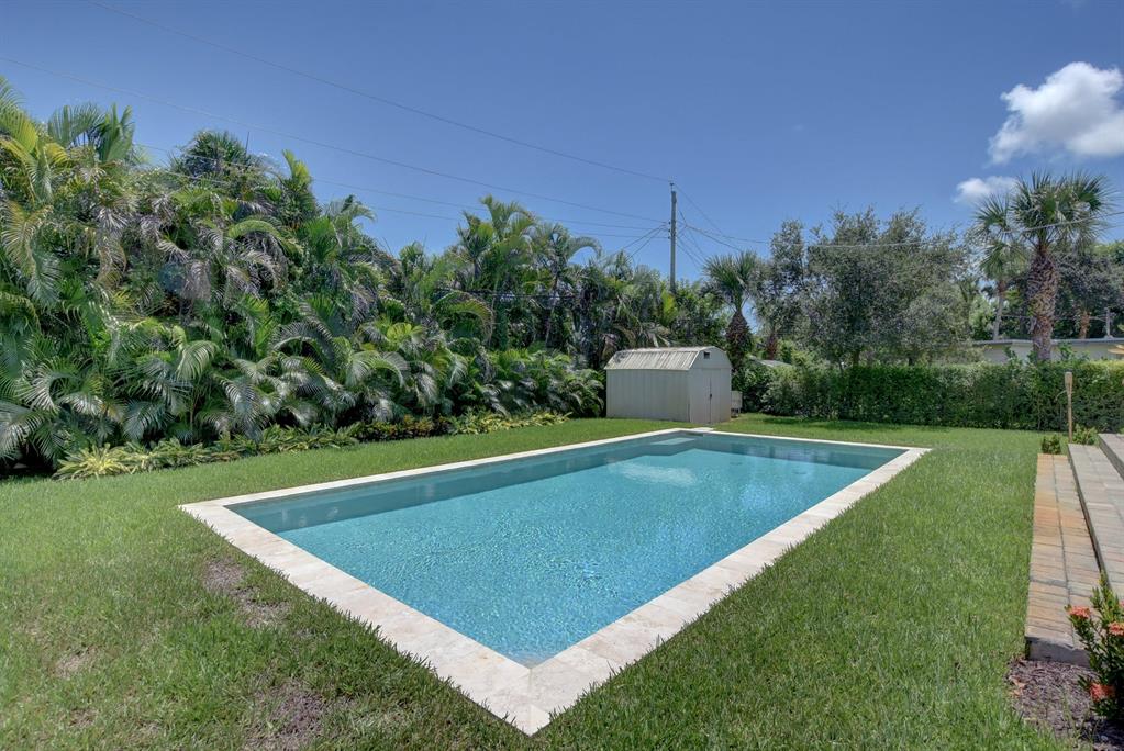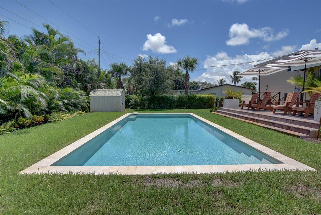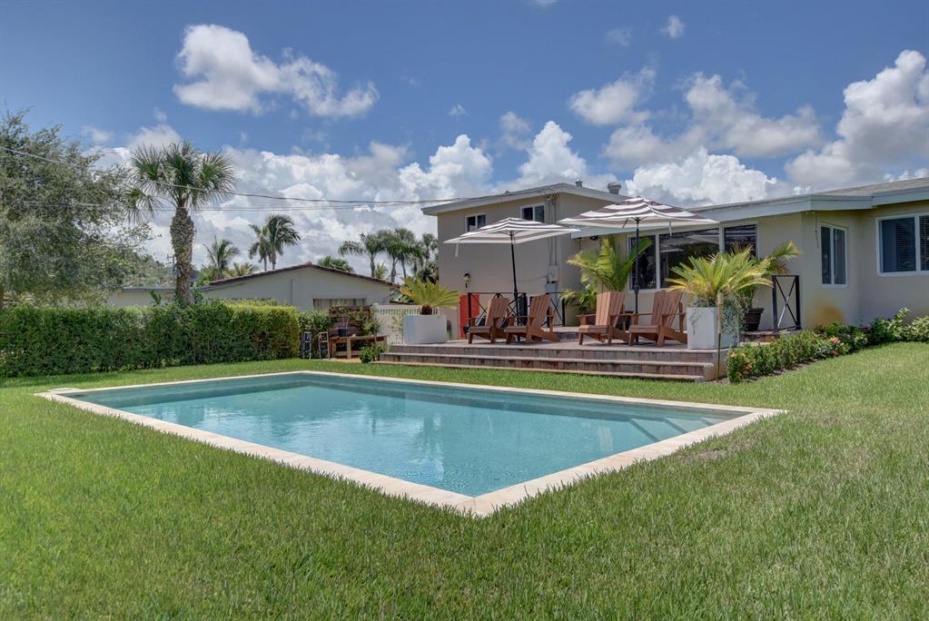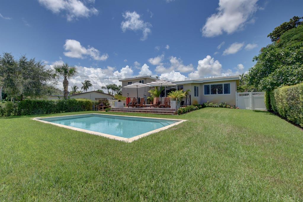 Updated Blast From The Past. Kick back & enjoy your private pool & beautiful backyard oasis. Eclectic home with great bones. This home is perfect for entertaining. Open plan living space encompasses 3 bedrooms, 2 baths, and sleek/modern kitchen with farm sink, quartz countertops & stainless appliances. All flowing seamlessly: family room to dining room to enclosed patio-which you can admire the views of the pool and lushly landscaped backyard. And, a few steps away is the perfect room for an additional bedroom, she-shed, man-cave, exercise/yoga, library, etc., also separate laundry room.With its warm sense of community, this home is ideally positioned as only minutes to beach, restaurants, shops and premier Boca Raton Schools.