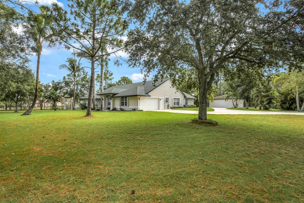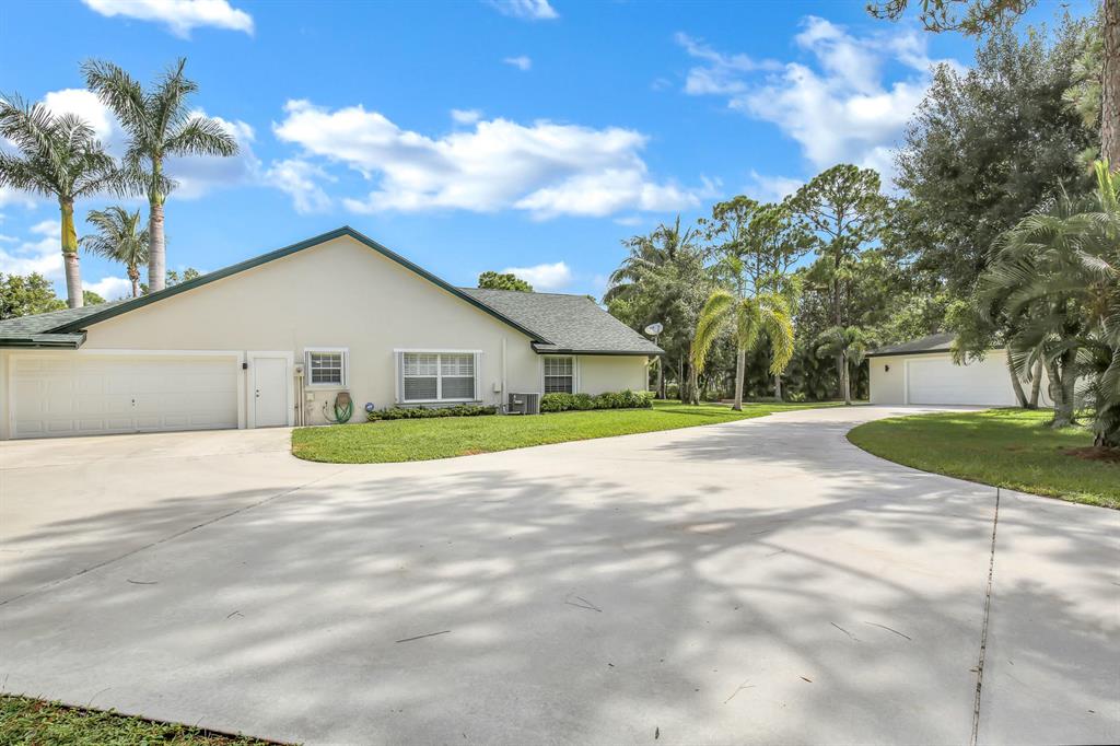 Completely remodeled 3BR / 2BA CBS home, sitting on just under 2.5 acres in The Acreage! Beautiful open kitchen equipped with GE Monogram appliances & Wet Bar. Stunning Master Suite with large walk-in closet and newly renovated Master Bath. Both AC units replaced in 2015 & 2017. New pool equipment, pump & heater- converted to a Salt Water System in 2016. Main House and Boat Garage roof both replaced in 2017. Property boasts a 30 x 30 Detached Garage & Boat Garage, fully fenced in and surrounded by lush landscaping. Entire property is completed fenced in & equipped with an irrigation system. Perfect for entertaining!