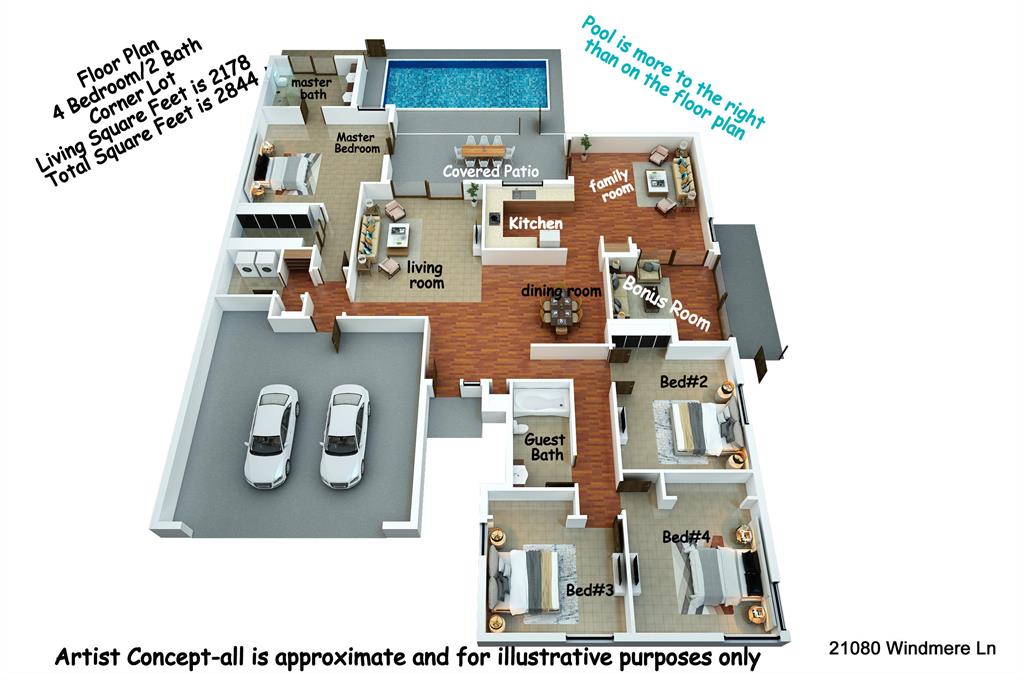Wow!! This huge corner lot home with 8538 square feet really has it all! 4 bedrooms, 2 baths, Plus a bonus room (see sketch from property appraiser web site)which makes great office or 5th bedroom, huge fenced in backyard with large pool, & covered patio!! Great place to enjoy the outdoors, BBQ and throw the ball. Bright open floor plan w/Vaulted ceilings. Master bedroom on 1 side, with a huge walk in closet & private lanai off the bathroom. The other 3 bedrooms on the other side. Family room/living room/dining room!! Inside laundry room. Great floor plan......Plus this home has been modified with an additional room with bay windows....2178 square feet under air & 2844 total square feet. Newer roof from 2006/accordion shutters. 2 car garage w/bonus storage area.