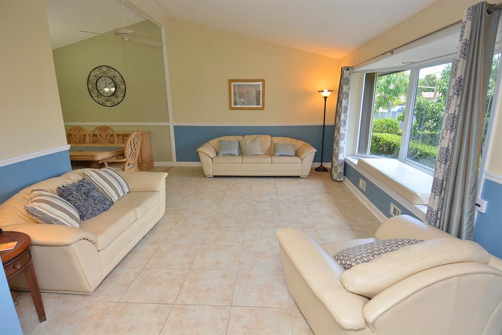 EXCEPTIONAL value in Great, quiet, well maintained neighborhood with mature trees. Superb curb appeal. Move in condition.Fenced in yard overlooking canal out the back with resident ducks.Mature fruit trees.Very large BONUS room with built-in shelving which easily can be another bedroom, game room, office. Beautiful floors throughout.Crown Moulding.Garage has finished flooring easy to maintain. Excellent unique cabinetry .The large open living room adjoins the dining area.Gorgeous view from front and rear windows.Just minutes to shopping,restaurants.close to downtown West Palm and airport. No HOA.Cul de Sac.
