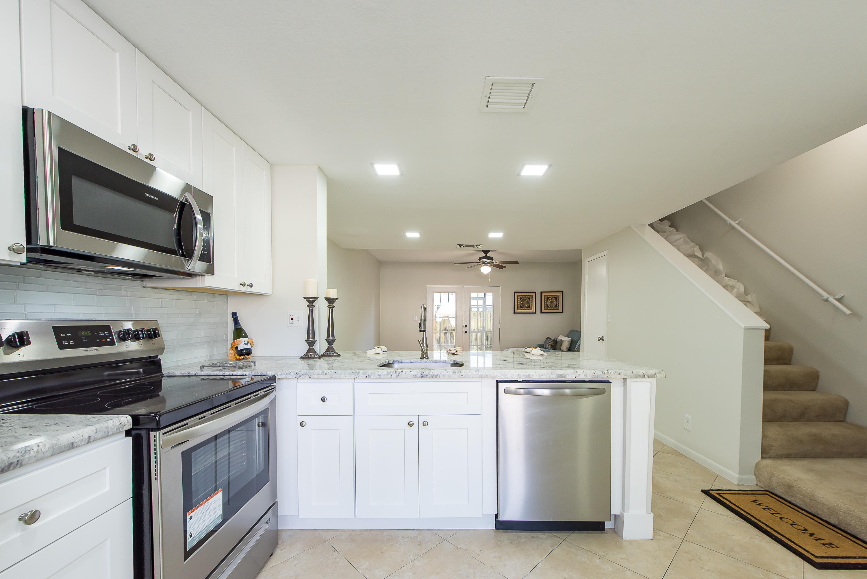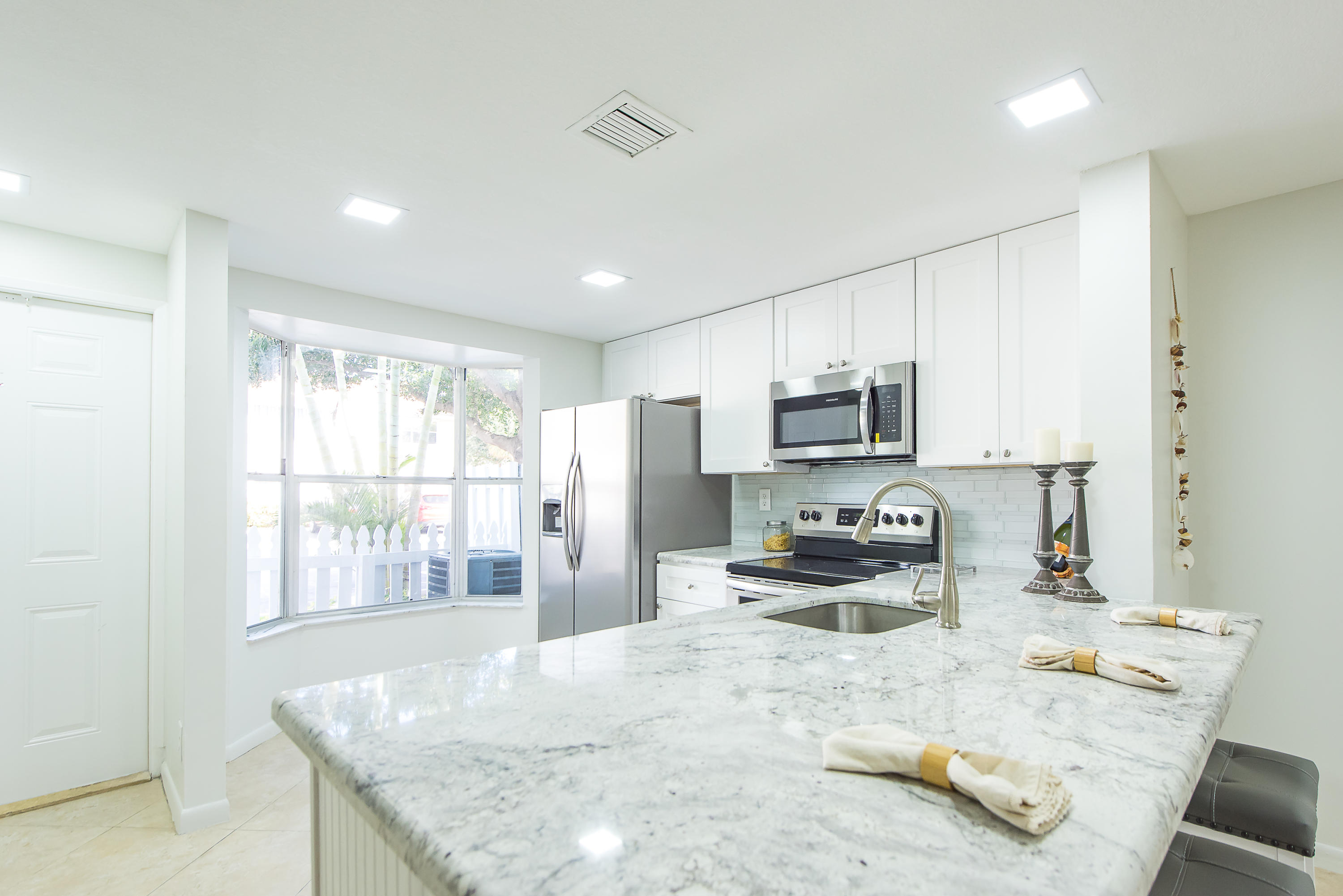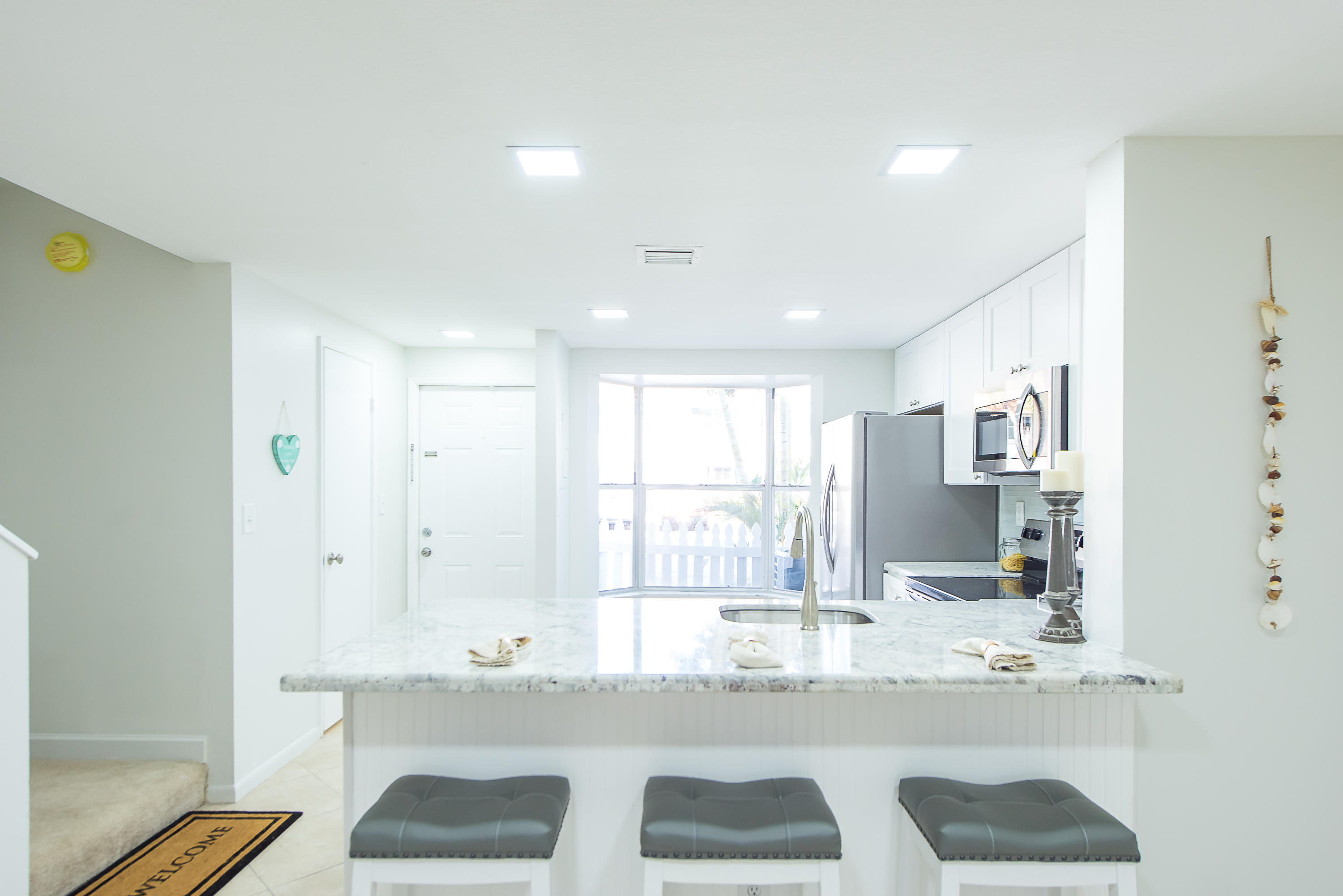 Steps to the sand, golfing and entertainment for under 250k!!! Location, location! 2/2.5 bath. I love this place!! East of US1 and a 5 minute walk to the ocean's edge. There is a Watersport station, The Mariott and 2 other oceanfront restaurants too! This town home features new stainless steel appliances, white shaker wood cabinets, rich styled granite with a large open breakfast bar, kitchenette area and dining room. There is nice porcelain floors downstairs and it offers a very attractive 1/2 bath. Very open floor plan! New AC, the roof is good with years remaining, washer and dryer upstairs. 2 master bedroom suites, beautiful bathrooms and the entire upstairs offers vinyl flooring which is very durable and attractive. There is a private patio and dockage to rent or buy inside the commun