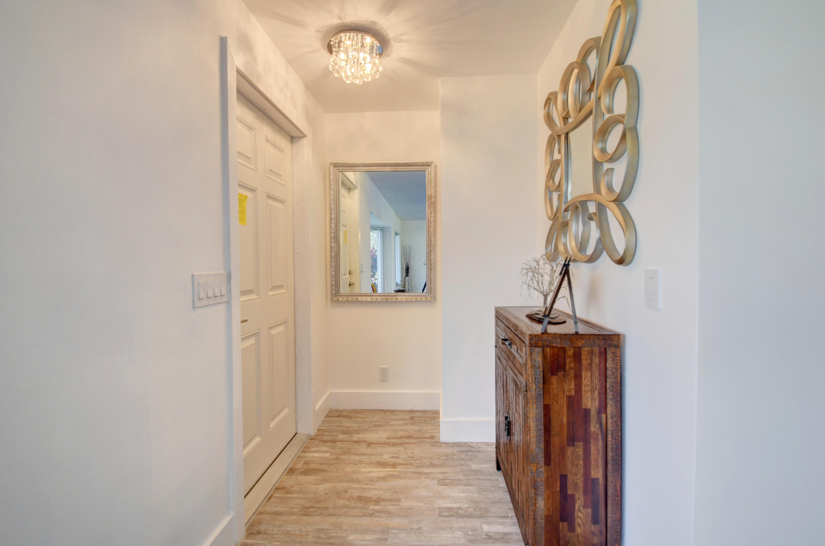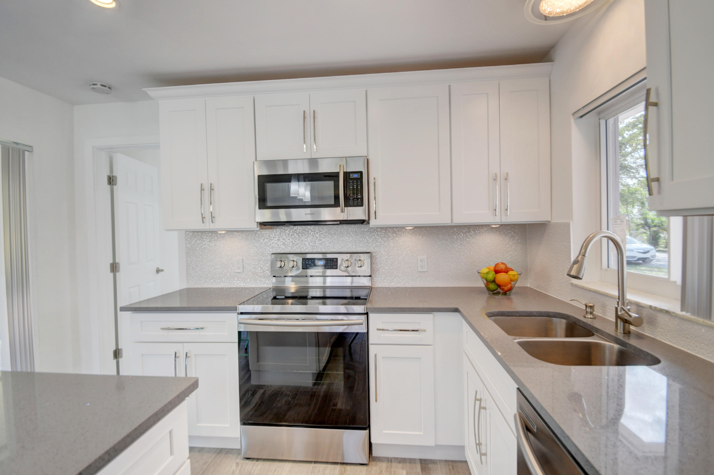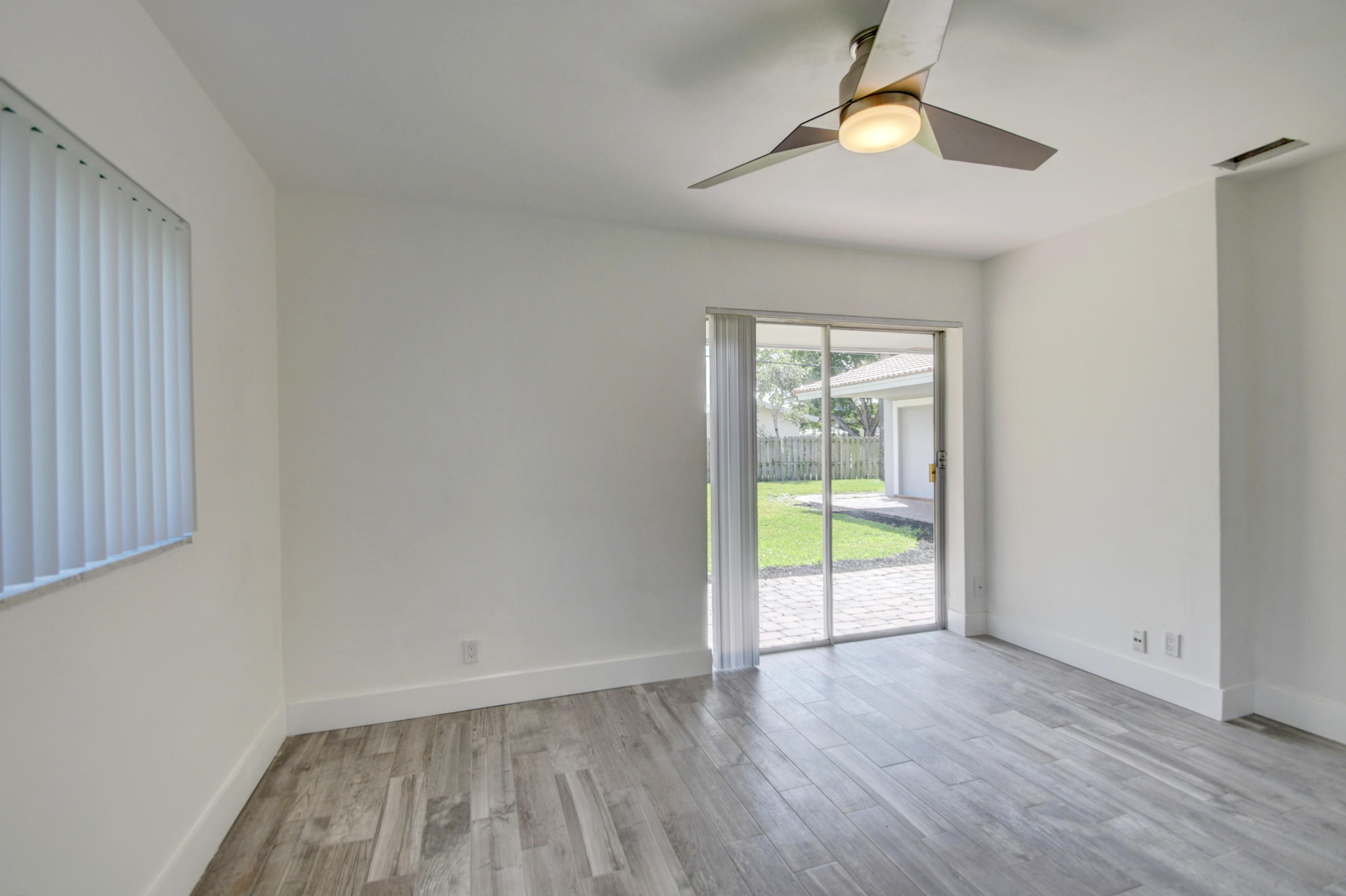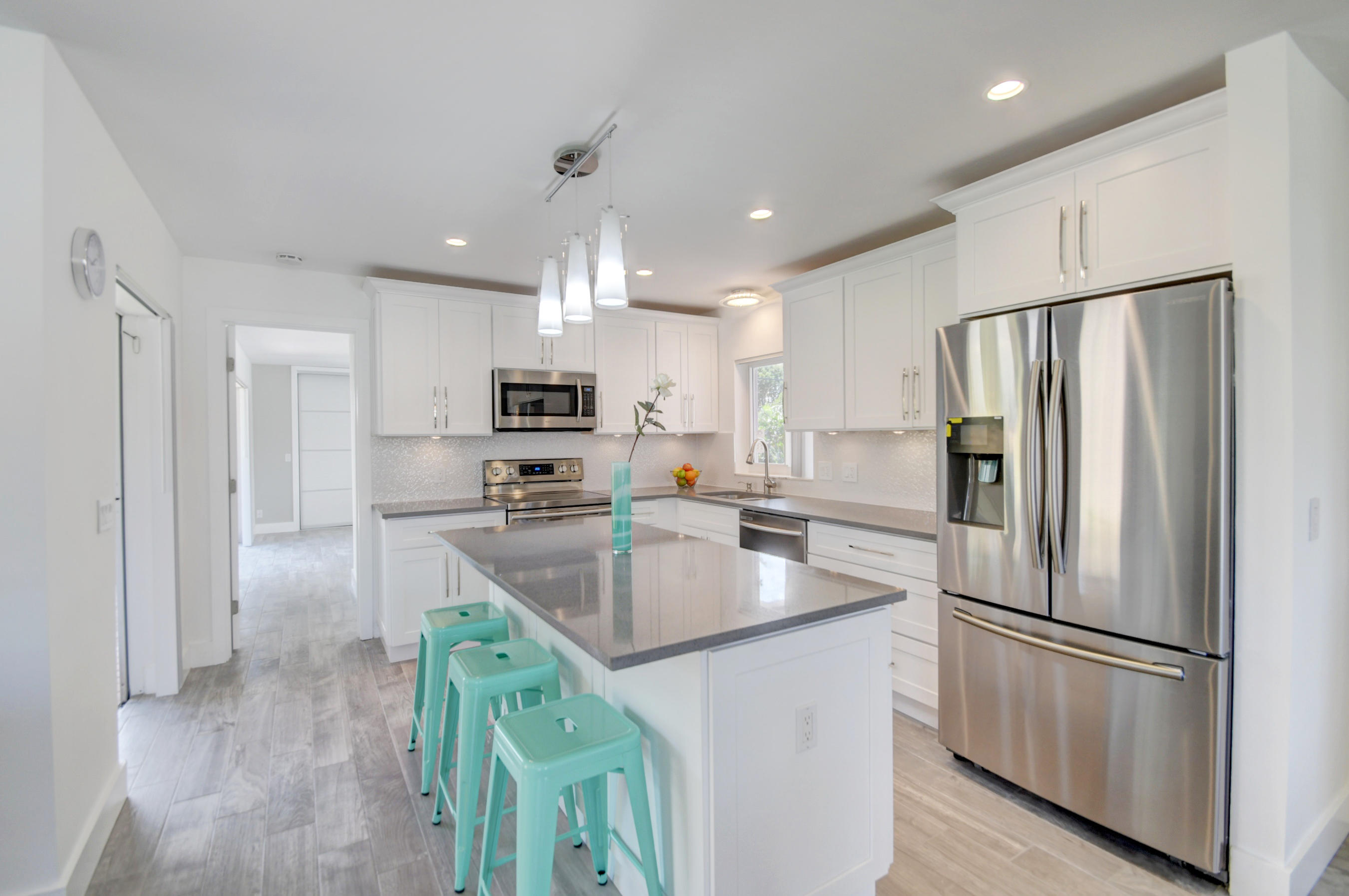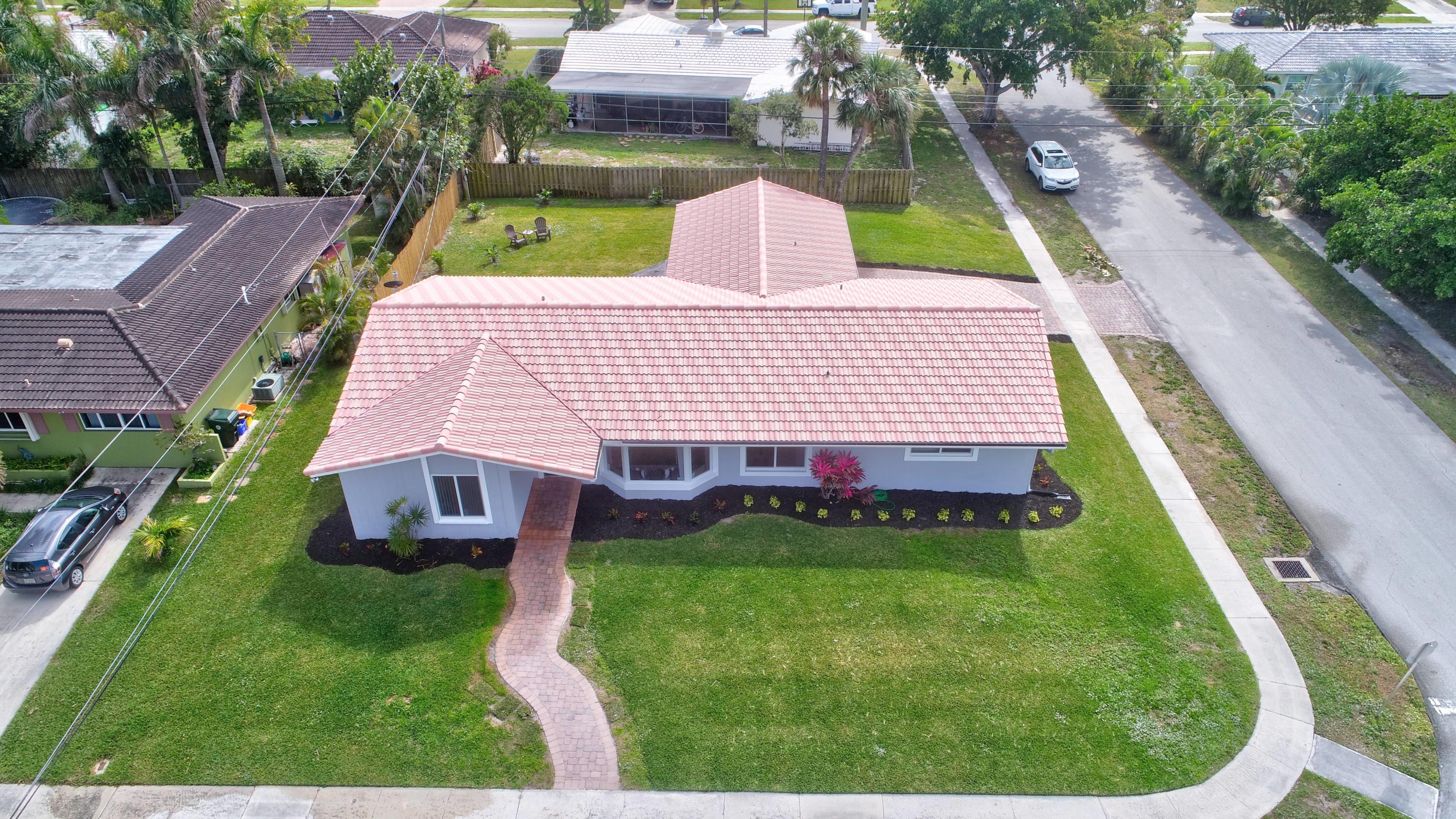 Great location on a corner lot! This 3 bedroom, 2 bath home has a 2 car side entry garage and has been remodeled with new floors, new kitchen with quartz counters, and new baths. New porcelain wood look tile through out and brick pavers outside. Enjoy the huge backyard with a covered patio for entertaining. Plenty of room for a pool and to park a boat on the side of the yard. Open floor plan with split bedrooms. New AC, new water heater, new outside electric panel, new PGT impact windows, new impact doors, impact garage door with wifi enabled opener. A-rated school district. Minutes from downtown shopping area and beaches. Just bring your toothbrush!