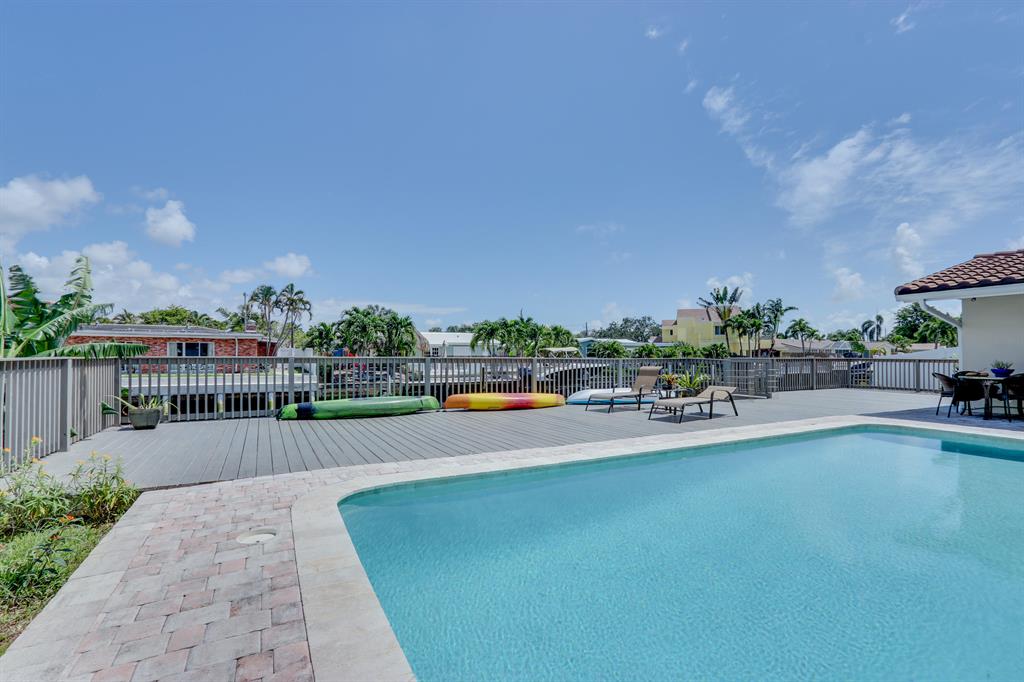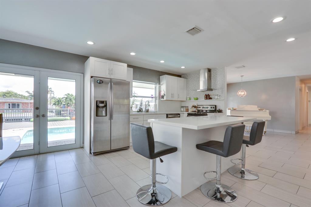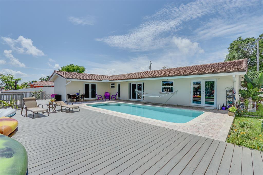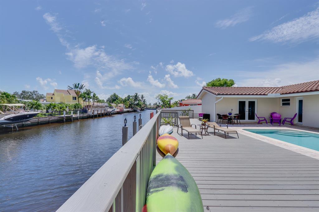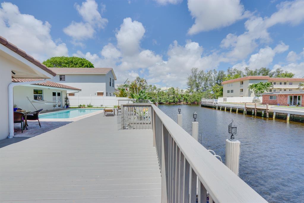 Rare opportunity to own a waterfront home in Coral Ridge Isles that has been fully upgraded and can be easily be converted to a four bedroom. New hurricane impact windows, new barrel tile roof in 2015, new gutters, new AC system and duct work in 2013,new outdoor lighting, security cameras, upgraded electric panel, new light fixtures, sealed and reinforced sea wall, completely remodeled pool with new salt chlorination and pump, all new pavers on patio deck, new 1400 sqft wood deck with brand new dock and exterior lighting, new kitchen cabinets, appliances and quartz counter tops, new tile floor throughout the entire house, newly renovated bathrooms, new walk in pantry, new hurricane garage door, new tank less water heater, new irrigation system with pump,and a new washer/dryer.