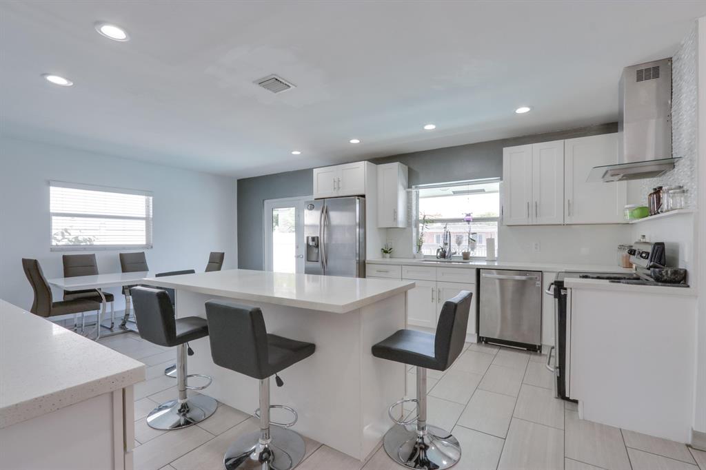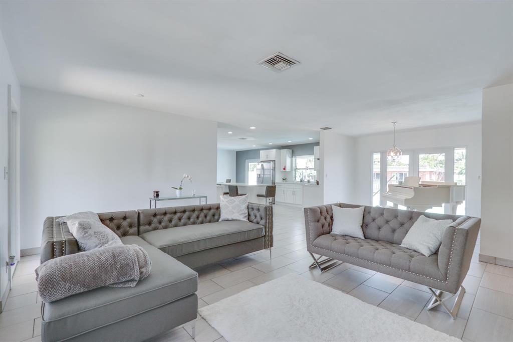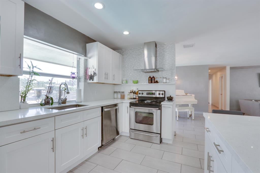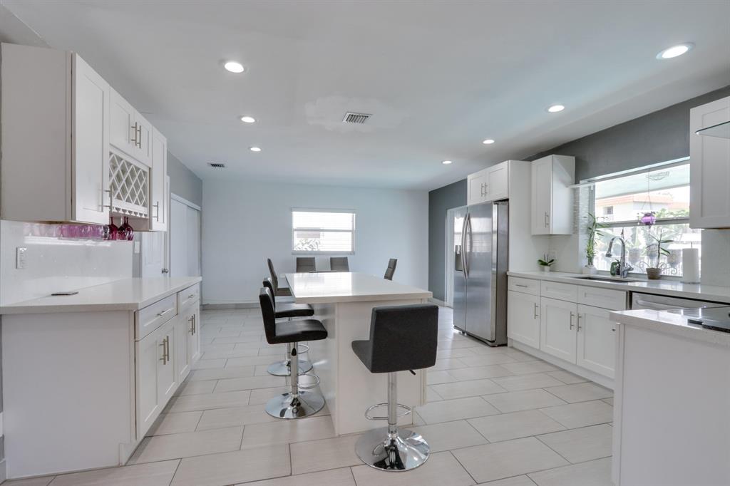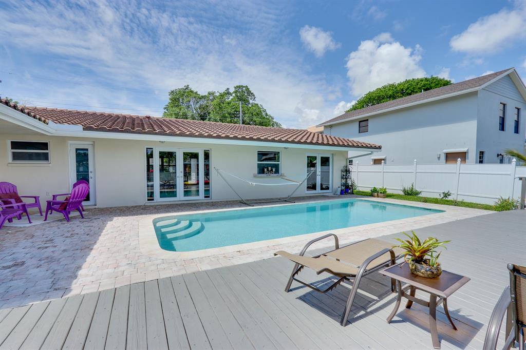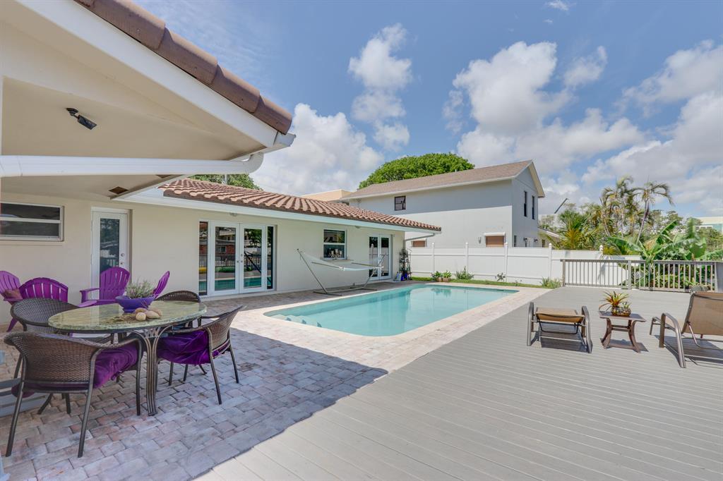 Rare opportunity to own a waterfront home in Coral Ridge Isles that has been fully upgraded and can be easily be converted to a four bedroom. New hurricane impact windows, new barrel tile roof in 2015, new gutters, new AC system and duct work in 2013,new outdoor lighting, security cameras, upgraded electric panel, new light fixtures, sealed and reinforced sea wall, completely remodeled pool with new salt chlorination and pump, all new pavers on patio deck, new 1400 sqft wood deck with brand new dock and exterior lighting, new kitchen cabinets, appliances and quartz counter tops, new tile floor throughout the entire house, newly renovated bathrooms, new walk in pantry, new hurricane garage door, new tank less water heater, new irrigation system with pump,and a new washer/dryer.