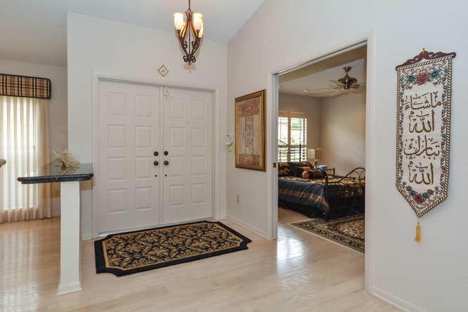 Beautifully renovated 2-bedroom 2-bath plus den single family home located in the all age community of Boca Woods. This home is move in ready and it is immaculate! There are wood floors through much of the house and laundry room is inside. Granite counters in the kitchen and bathrooms; stainless steel appliances are just a few years old; beautiful built-ins. Enclosed patio with golf and water views. High vaulted ceilings and split bedroom plan. Many upgrades - see attached document for a full list. A full country club membership is required; $30,000 equity which is refundable when the home is sold and $30,000 non-refundable initiation fee. The dues are currently
