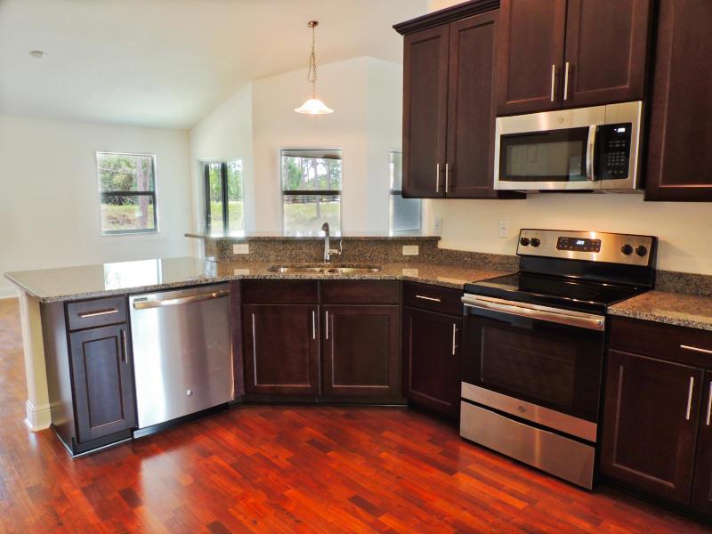 BRAND NEW CONSTRUCTION!! THIS GORGEOUS 3/2 WITH A DEN SITS ON 1.48 ACRES ON A CORNER LOT. THIS OPEN FLOOR PLAN HOME HAS IT ALL, CATHEDRAL CEILINGS, IMPACT INSULATED WINDOWS, 36 IN WOOD KITCHEN CABINETS, GRANITE COUNTER TOPS, STAINLESS STEEL APPLIANCES, SPLIT BEDROOMS, SPORT SHOWER, UPGRADED MOEN FIXTURES, LAMINATE WOOD FLOORS, PORCELAIN FLOORS IN BATHROOMS, WATER SOFTENER SYSTEM & MORE, A MUST SEE!