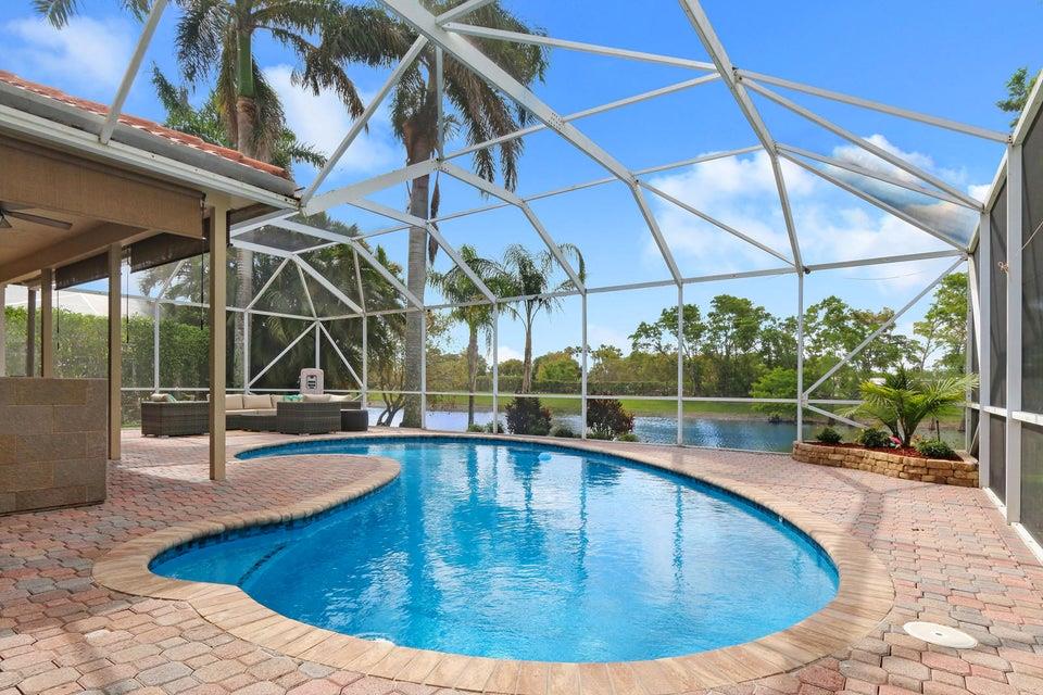 The Trifecta! Five Bedrooms + Loft/3 Car Garage/Private Lakefront location !! Updated 2 story home w/Master bedroom Downstairs - Open kitchen plan with granite, stainless appliances, large island with seating, excellent cabinet and counter space. Open Kitchen/Breakfast Room/Family Room overlook pool/patio/lake. Dramatic Living and Dining Room area is flooded with natural light and are rooms you and your family will actually use! Upstairs areas center around a huge loft, 4 bedrooms and 2 bathrooms (one is ensuite). House has curb appeal deluxe with newly updated landscaping, paver driveway and patio and a most appealing pool and patio made for Florida living. Covered patio area complete with BBQ nook and outdoor fridge, screened pool and lots of room for sunning! For all details see..