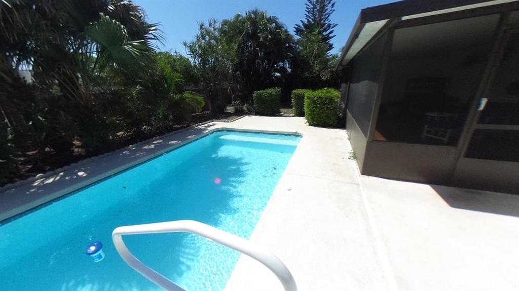 3 Bedrooms, 2 Full baths with an inground pool! Screened and covered back patio plus a fenced yard! Soaring ceilings and a nice open floorplan. Newer appliances. Newer Filter and newer Pool Pump! Home faces a Beautiful lake! Low HOA dues of $37/monthly.