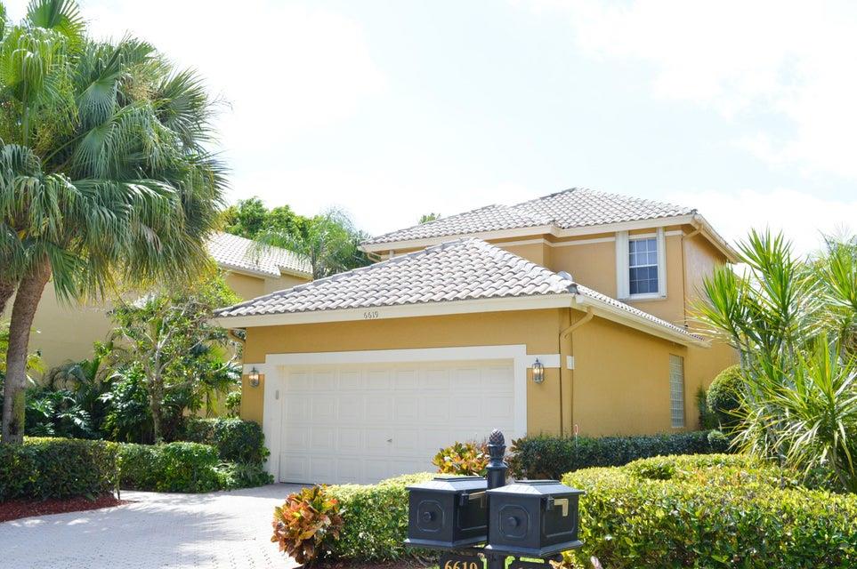 HUGE PRICE REDUCTION! Beautiful gated Boca residence in lush tropical garden setting, complete with hot tub & magnificent landscaping! This 3-bedroom, 2 1/2-bath home is meticulously maintained & has open floor plan with vaulted ceilings, upgraded appliances, new a/c units, & so much more! Roman Jacuzzi tub, dual sinks, separate shower in Master, beautiful screened patio overlooking lush garden setting and spa, hurricane shutters, new carpeting & tumbled marble tile on kitchen counters. Banyans of Broken Sound Mandatory Membership $60k.