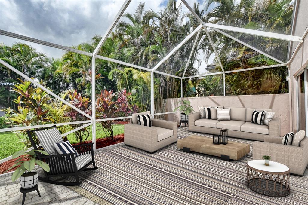 GREAT OPPORTUNITY!!! Enjoy grilling in your own spacious and private back yard! This light and bright 3 bedroom, 2 full bath single family home is ready to be enjoyed by a new owner! Screened in patio with large yard with room for a pool! Upgrades include brand new stainless steel appliances, fresh paint, fans in every room, plush landscaping, keypad entry, and BRAND NEW ROOF!! Association dues includes cable, paint exterior of home and pressure wash every 5 years. Fantastic home under $350k in the beautiful 24/7 guard gated community of Palms at Boca Pointe. A+ schools. Five minutes away from the Village Pointe Shopping Mall!