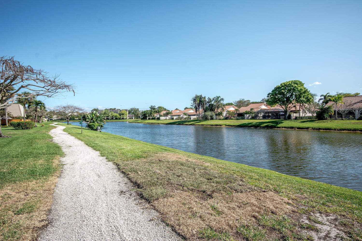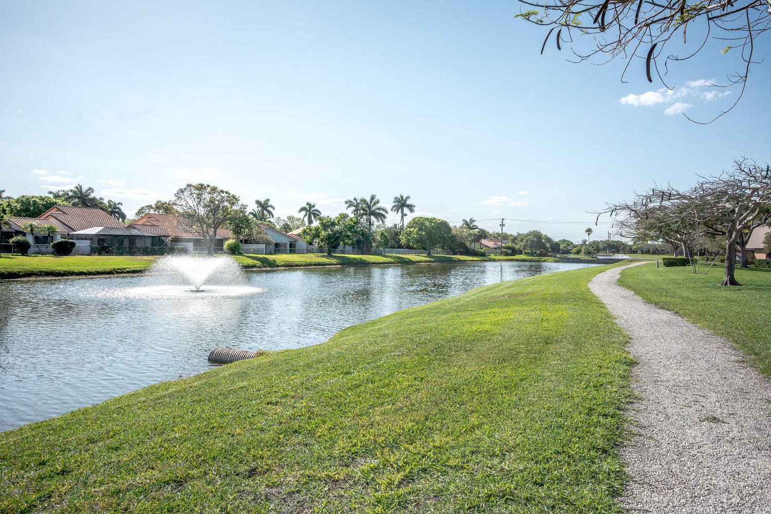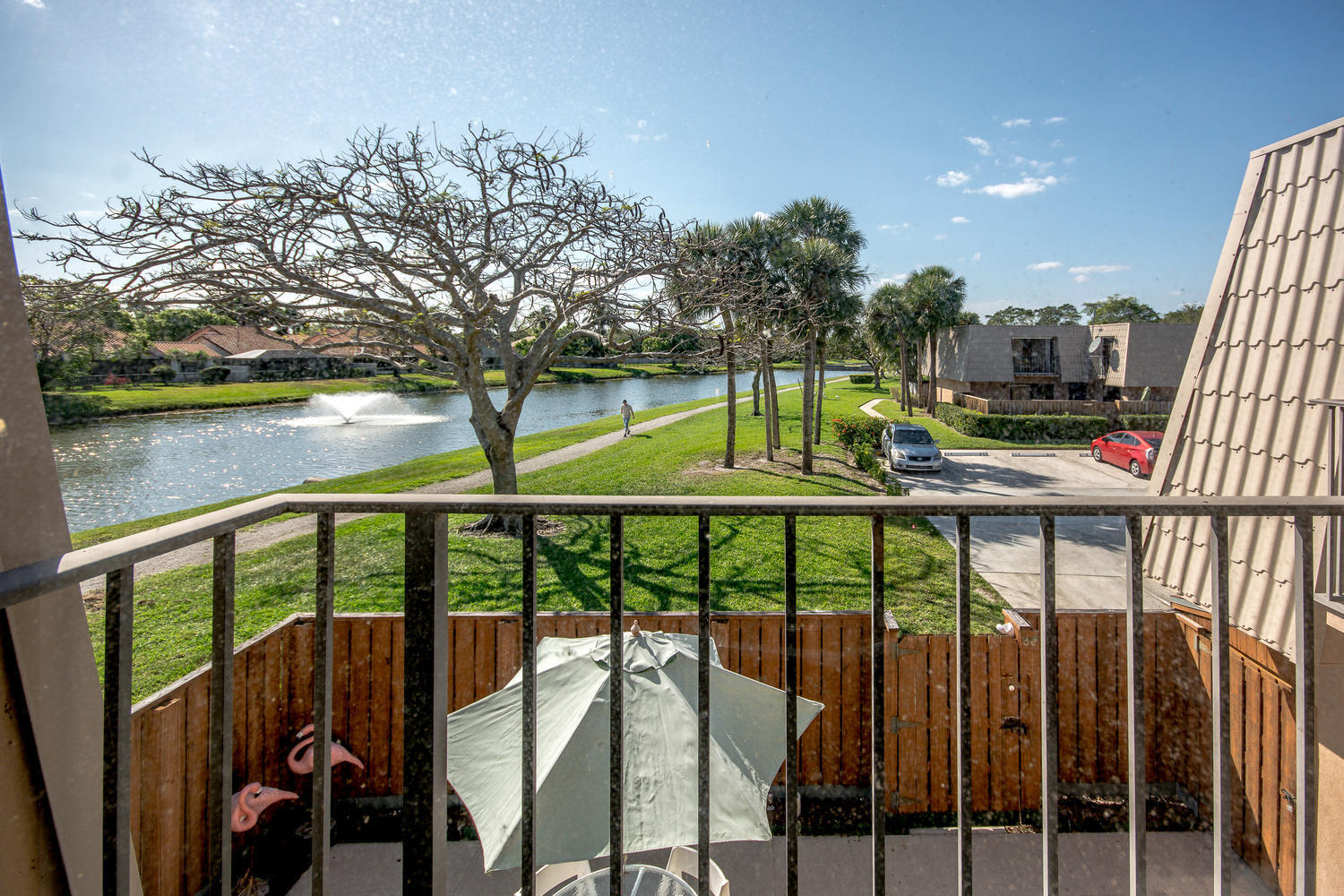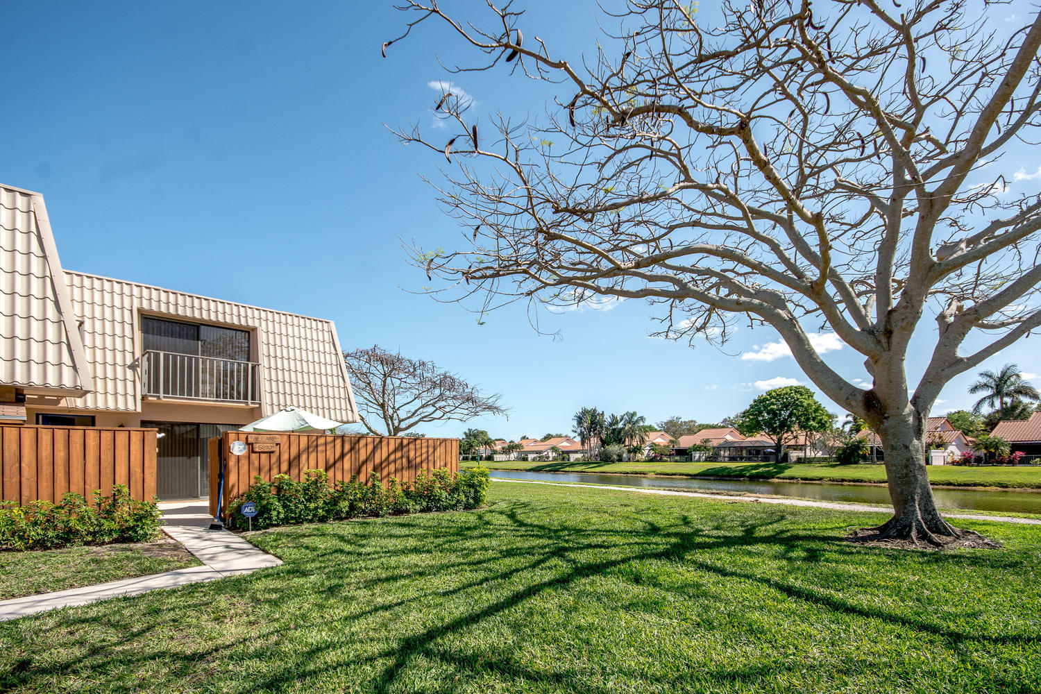 Impeccably clean, updated, fully furnished townhouse with water views. (Also available Unfurnished.) Roof is 2 years new! Water views from both upstairs bedrooms. Huge Private Patio. Tiled floors downstairs for easy care. Carpet upstairs & on stairs. Kitchen Re-modeled with white Quaker Style Bead Board & Glass Cabinets. Counters are Solid Surface Easy Care Corian. Air Conditioner - 2014. Newer Stainless Steel Appliances Ref., DW, Elec. Stove - 2015. Microwave - 2017. Brand New Water Heater & Washer/Dryer - 2018. Open grassy area is great for picnics or playing with your dog! Walking path right outside your door! Two Olympic Style Pools, Tennis, Basketball, Jogging/Biking paths in the development. 10 mins. to PB Airport and Beaches! World Class Dining & Shopping.