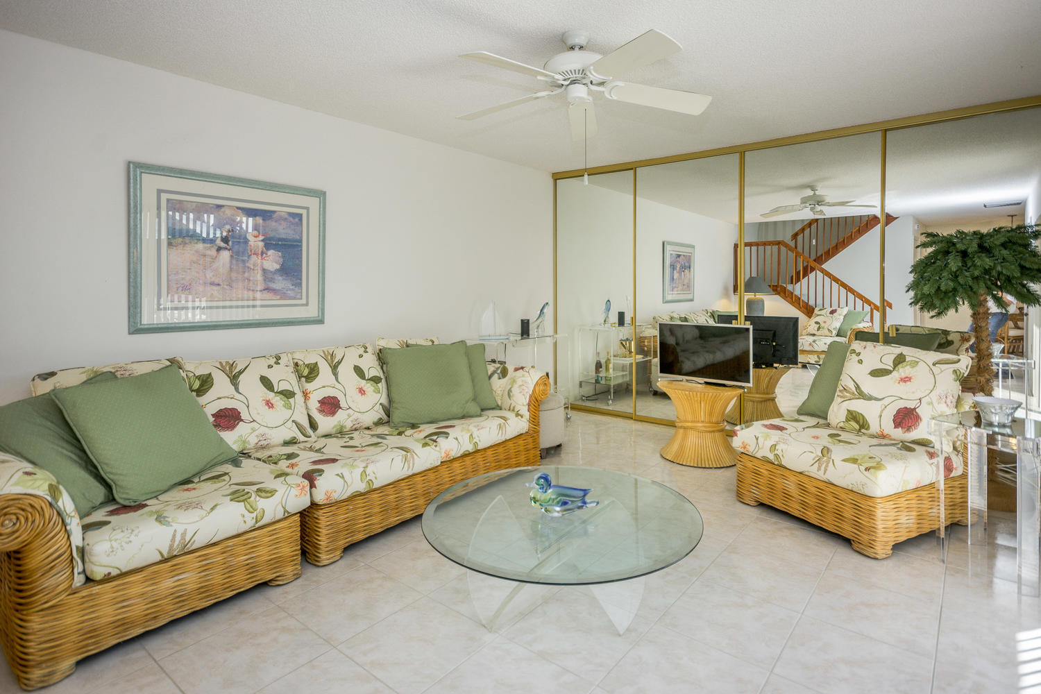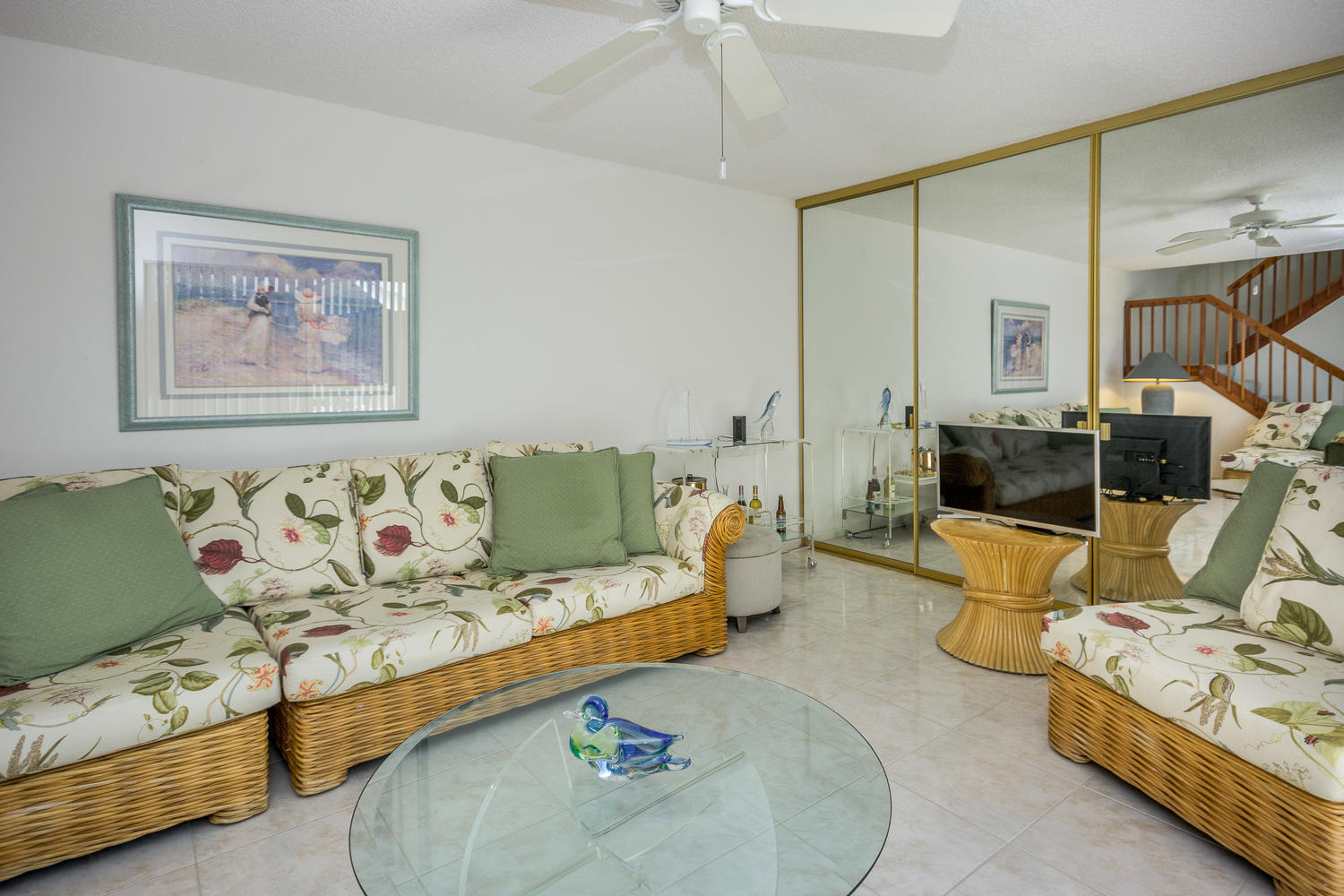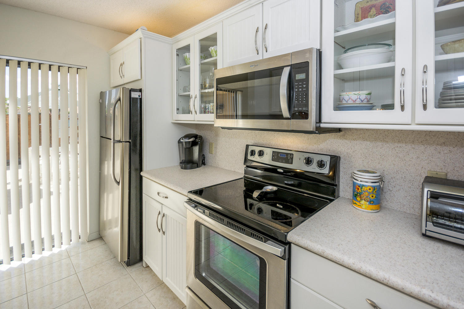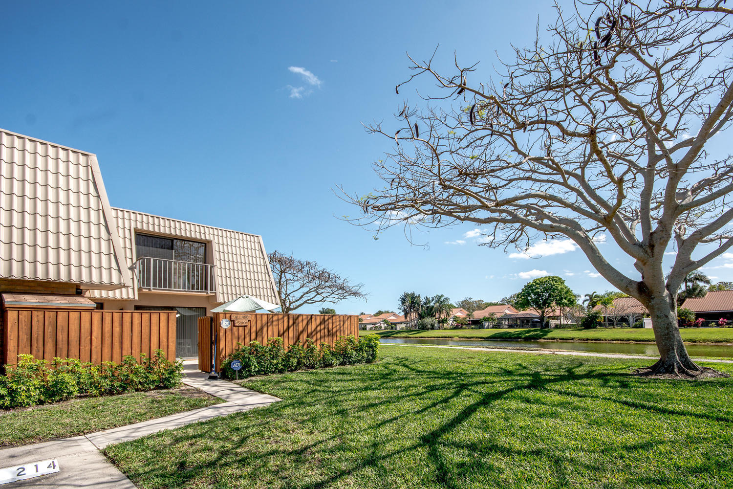 Impeccably clean, updated, fully furnished townhouse with water views. (Also available Unfurnished.) Roof is 2 years new! Water views from both upstairs bedrooms. Huge Private Patio. Tiled floors downstairs for easy care. Carpet upstairs & on stairs. Kitchen Re-modeled with white Quaker Style Bead Board & Glass Cabinets. Counters are Solid Surface Easy Care Corian. Air Conditioner - 2014. Newer Stainless Steel Appliances Ref., DW, Elec. Stove - 2015. Microwave - 2017. Brand New Water Heater & Washer/Dryer - 2018. Open grassy area is great for picnics or playing with your dog! Walking path right outside your door! Two Olympic Style Pools, Tennis, Basketball, Jogging/Biking paths in the development. 10 mins. to PB Airport and Beaches! World Class Dining & Shopping.