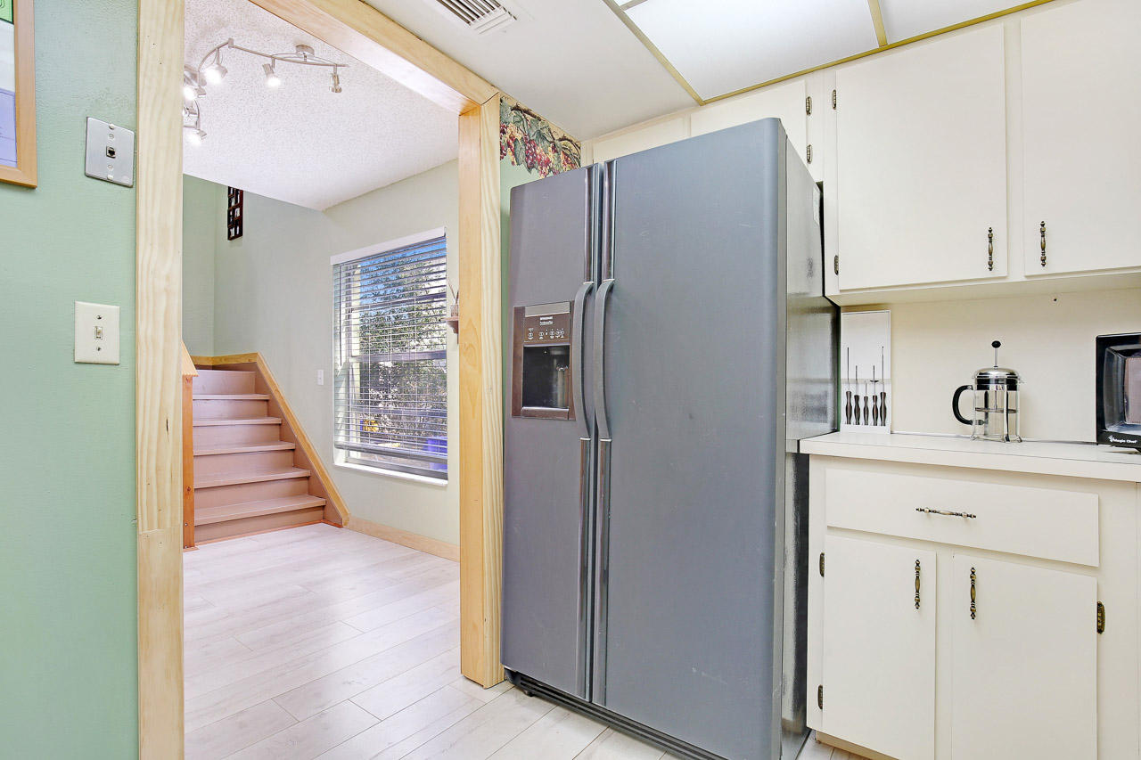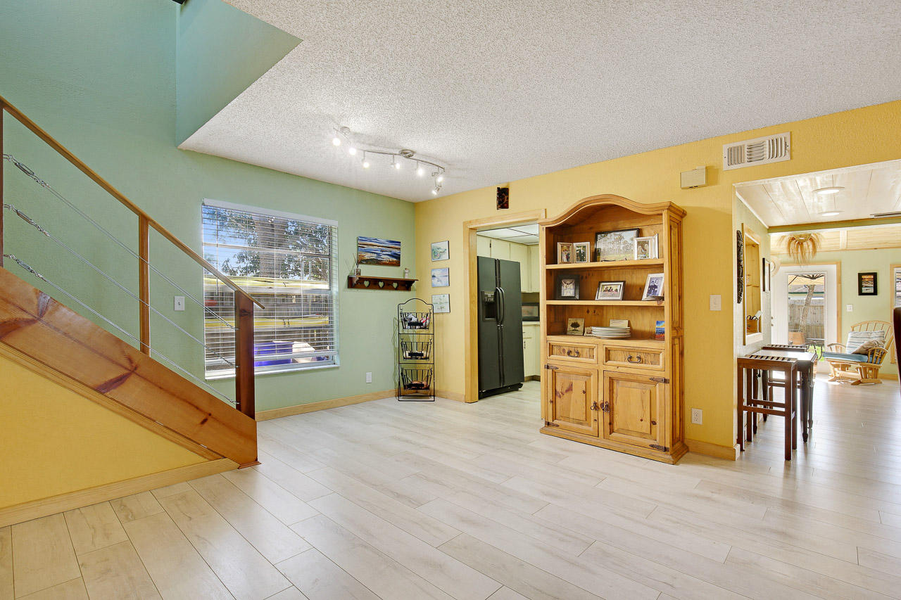 Fabulous opportunity to get an affordable clean move-in ready home at the end of a cul-de-sac and conveniently located to shopping restaurants and I-95. Large privately fenced backyard with storage shed and plenty of room for your toys, RV and boat. This 3/2 has a bedroom and full bath downstairs and large walk-in closet in the master. You'll have peace of mind and reduced insurance with impact glass and hurricane shutters. These owners have loved on this home for you with an updated AC inside and outside (1 year), and updated flooring (2 years) and a beautifully remodeled bathroom.