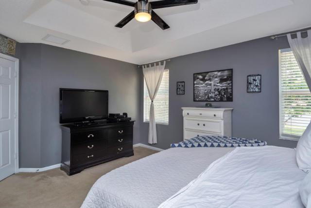 HUGE PRICE REDUCTION! Sellers are Highly Motivated!! This beautiful 3 bed, 2.5 bath, on an oversized lot is the perfect for the most discerning home buyers. The light, bright, and airy floor plan makes this home perfect for entertaining. White kitchen cabinetry and new black appliances highlight the kitchen. The master suite offers lake views, tray ceiling, and a gorgeous ensuite bathroom. The AC was fully replaced in 2018, all light fixtures and ceiling fans replaced & the home was recently painted. The community offers Gym, Pool, Tennis, Splash Pad and much more. The low monthly HOA fee ($218) takes care of the lawn, security, and 24hr manned guard gate. Bring any and all offers!!