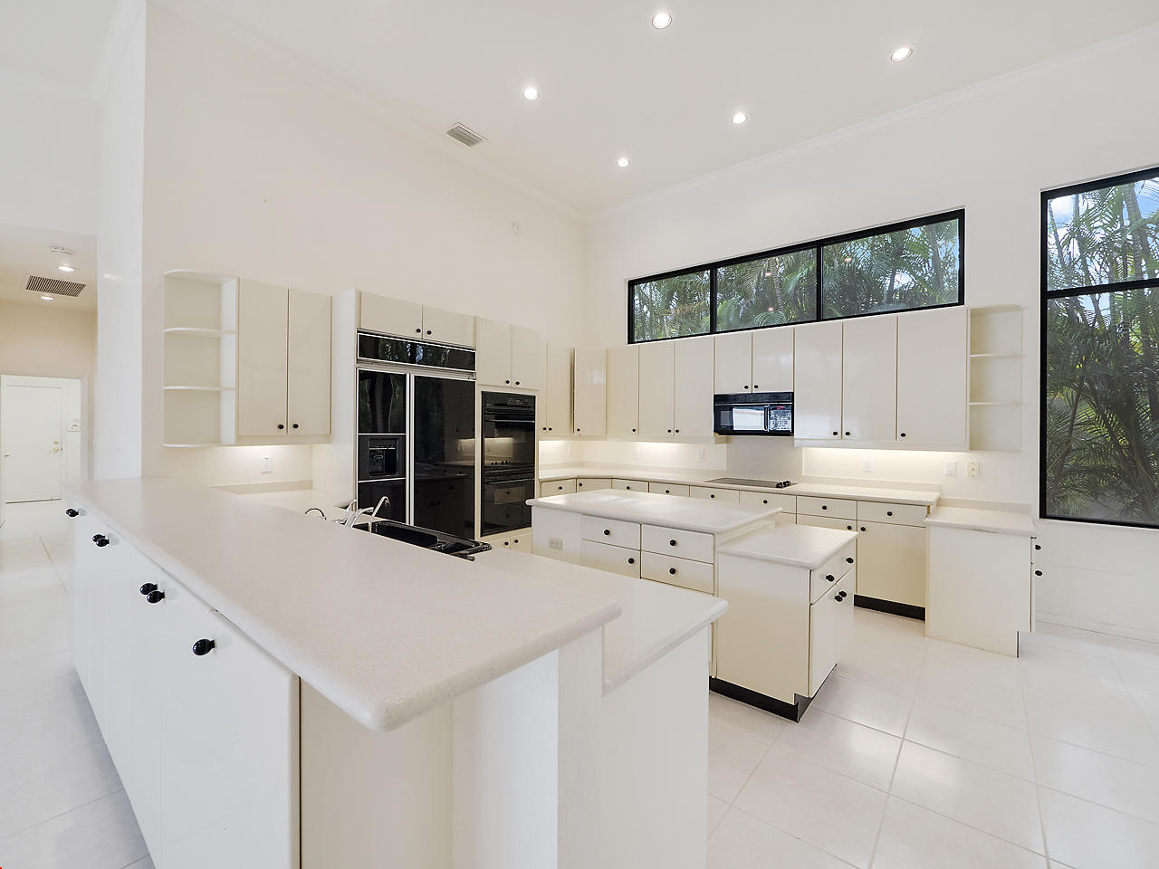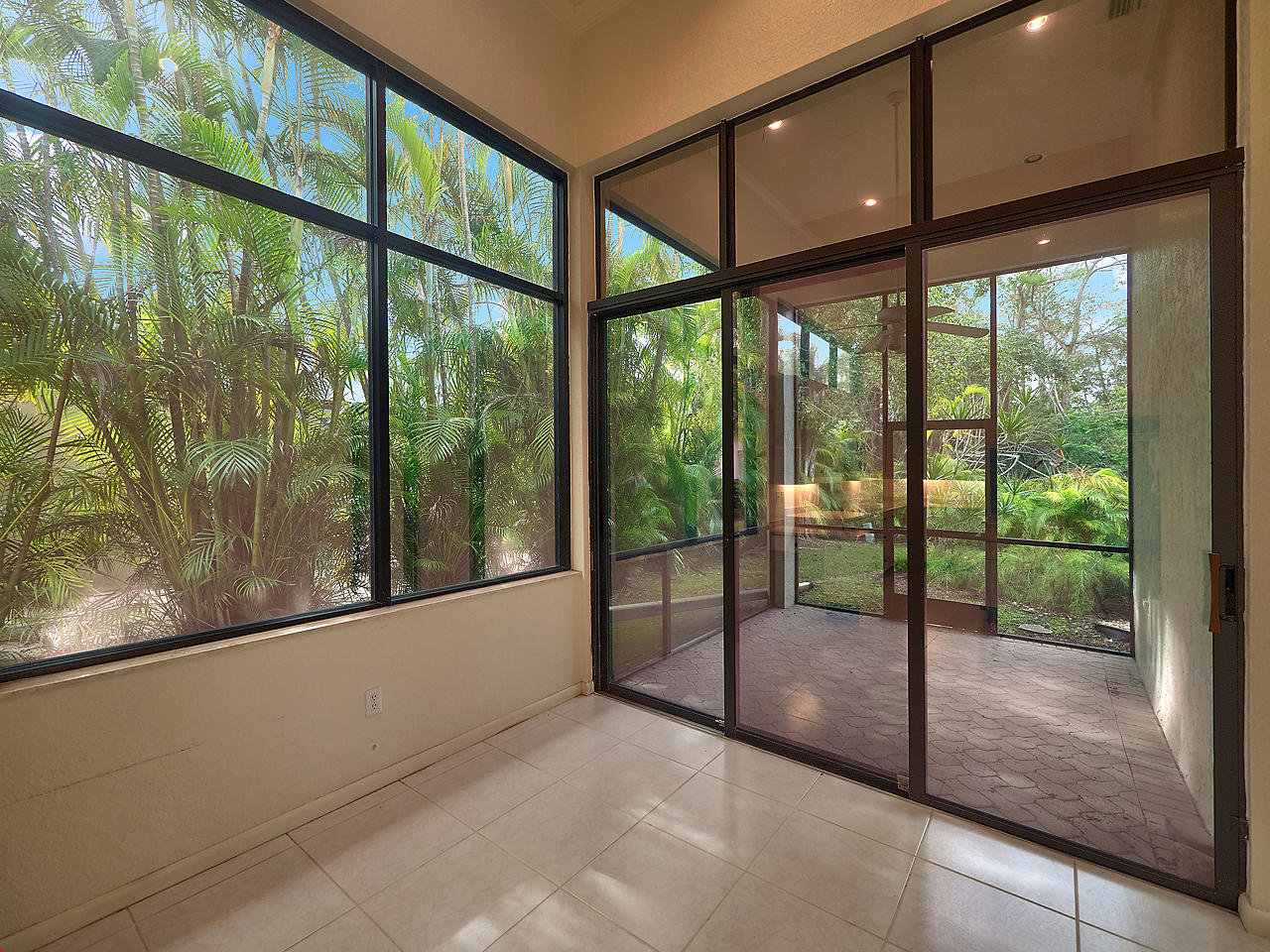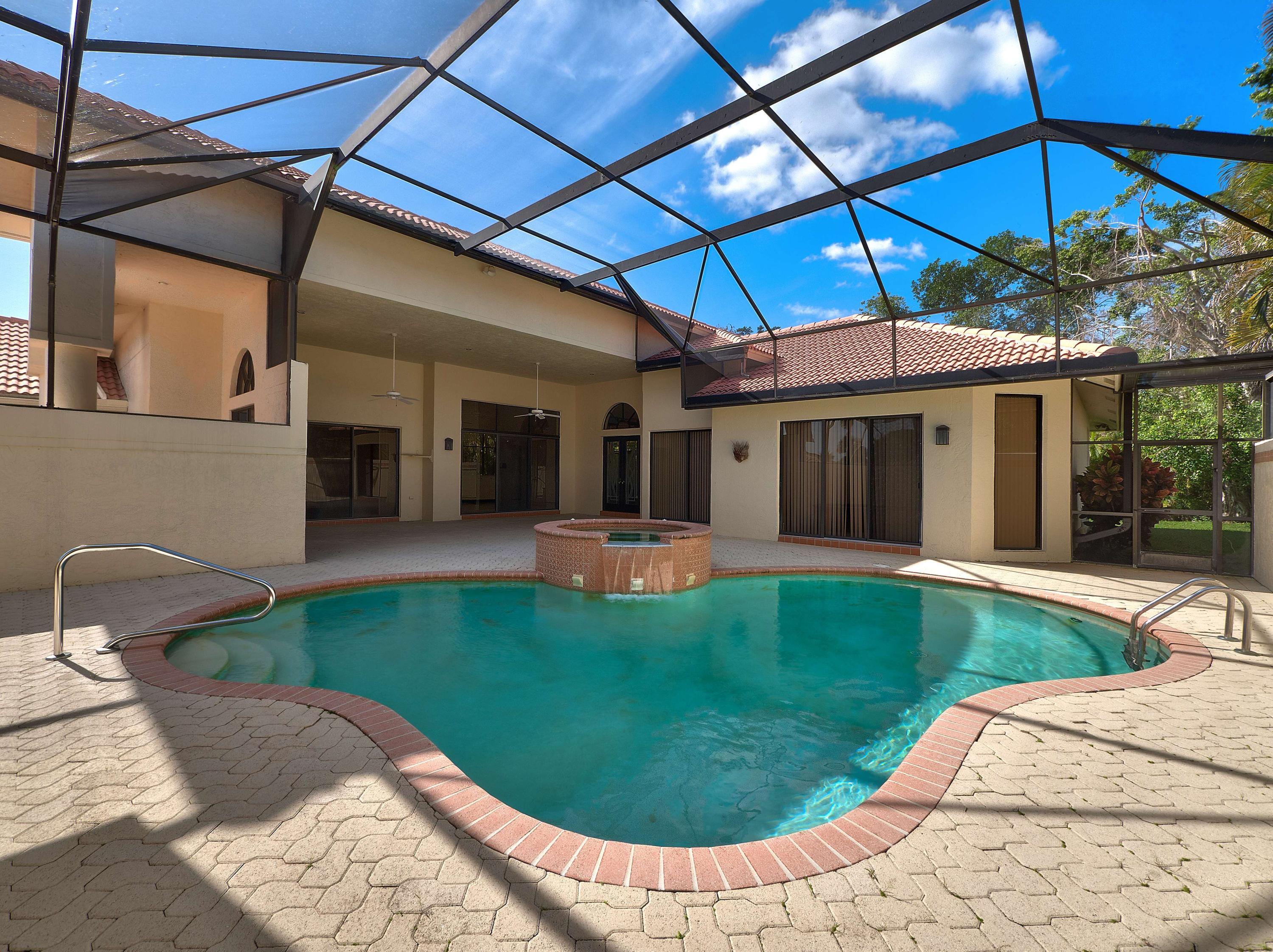 EXCELLENT FLOOR PLAN ON THIS NEWLY LISTED COURTYARD HOME WITH SEPARATE GUEST HOUSE. TRULY A ''COMPOUND''. MAIN HOUSE HAS 3 B/R'S + AN OFFICE/5TH (no closet). THERE IS A LARGE OPEN KITCHEN WITH A BREAKFAST NOOK & BUTLER'S PANTRY WHICH CONNECTS TO THE FORMAL DINING & FAMILY ROOM. ALL WITH 14' CEILINGS. THE MASTER BEDROOM HAS A TREMENDOUS WALK-IN CLOSET & DIRECT ACCESS TO THE POOL. JUST ACROSS THE COURTYARD IS THE COMPLETELY SEPARATE 400 SF GUEST HOUSE WITH IT'S OWN BATH & A/C. COURTYARD IS SCREENED/WALLED & THE MAIN HOME'S REAR YARD BACKS UP TO AN ALL NATURAL WOODED PRESERVE AFFORDING 100% PRIVACY. 1/3 ACRE LOT. EXC. HOME FOR ENTERTAINING/RELAXING/PLAY. CLUB MEMBERSHIP REQUIRED. AC'S 2010/2012. SIZES/AGES SUBJ TO VERIF. HOA INC. CABLE/INTERNET/24HR MANNED GATE/ALARM