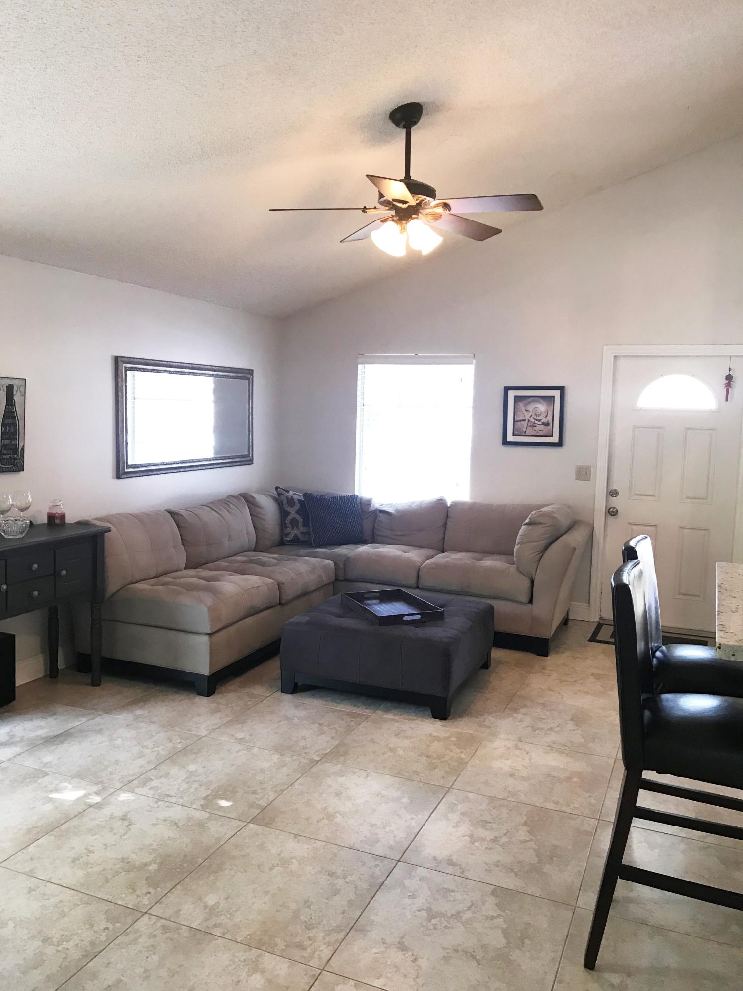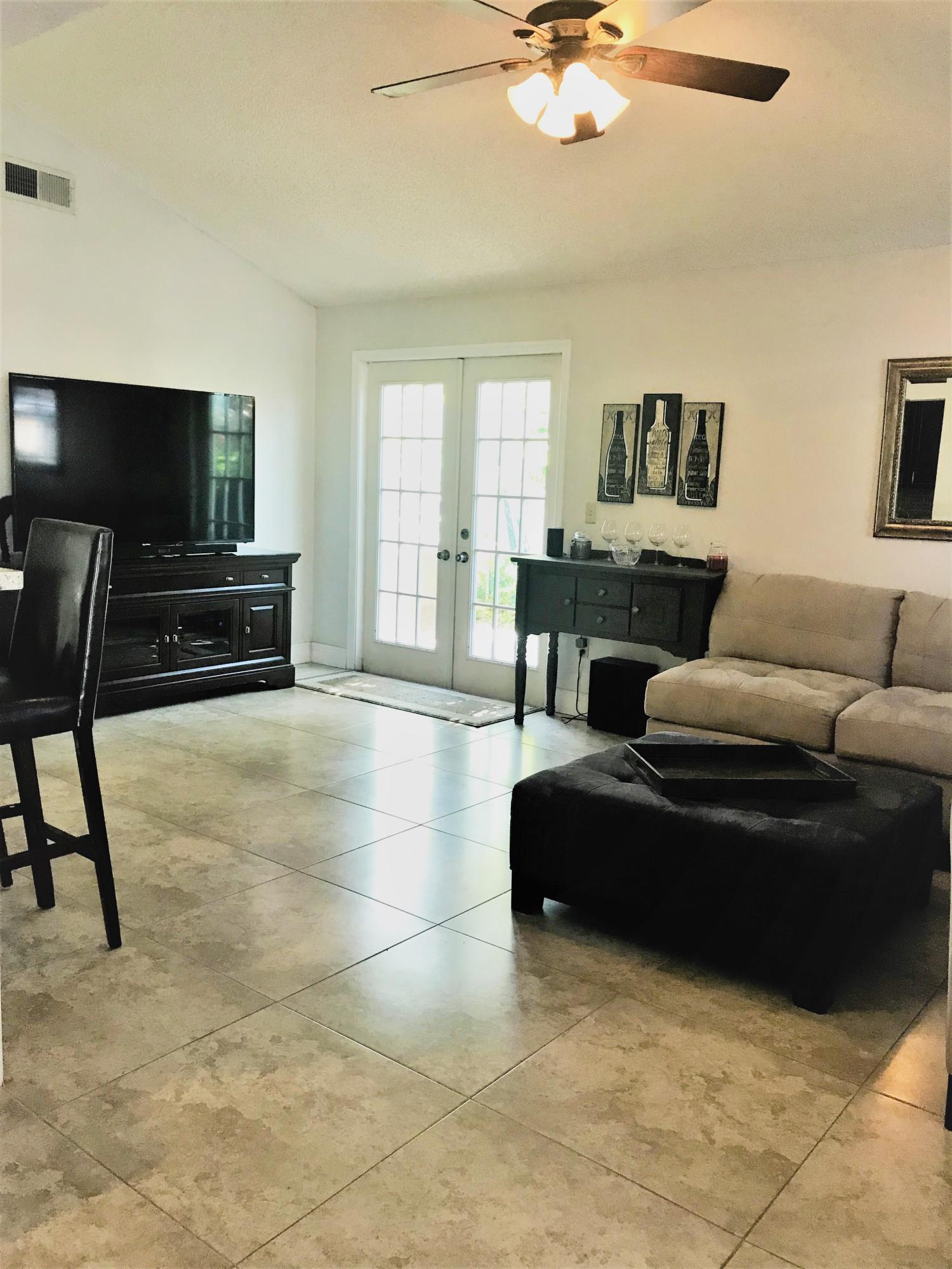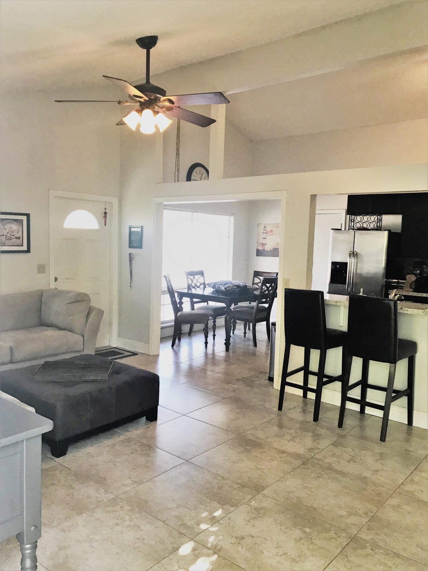 Beautifully renovated home in desirable neighborhood of Country Park features 3 bedrooms, 2 baths, with 24-inch ceramic tile throughout, renovated kitchen with espresso cabinetry, granite counters, glass tile backsplash, and stainless appliances...A spacious living area with vaulted ceilings and french doors lead to a private side patio for great entertaining options, while the fully fenced back yard provides great views of the lake and east exposure to enjoy the ocean breezes...Other features include a 1-car garage and double driveway for extra parking while a lovely front porch welcomes guests...Residents enjoy a low monthly HOA fee with great amenities such as a community pool, tennis, racquetball, & basketball court...Shopping, dining, & all major highways just minutes away!